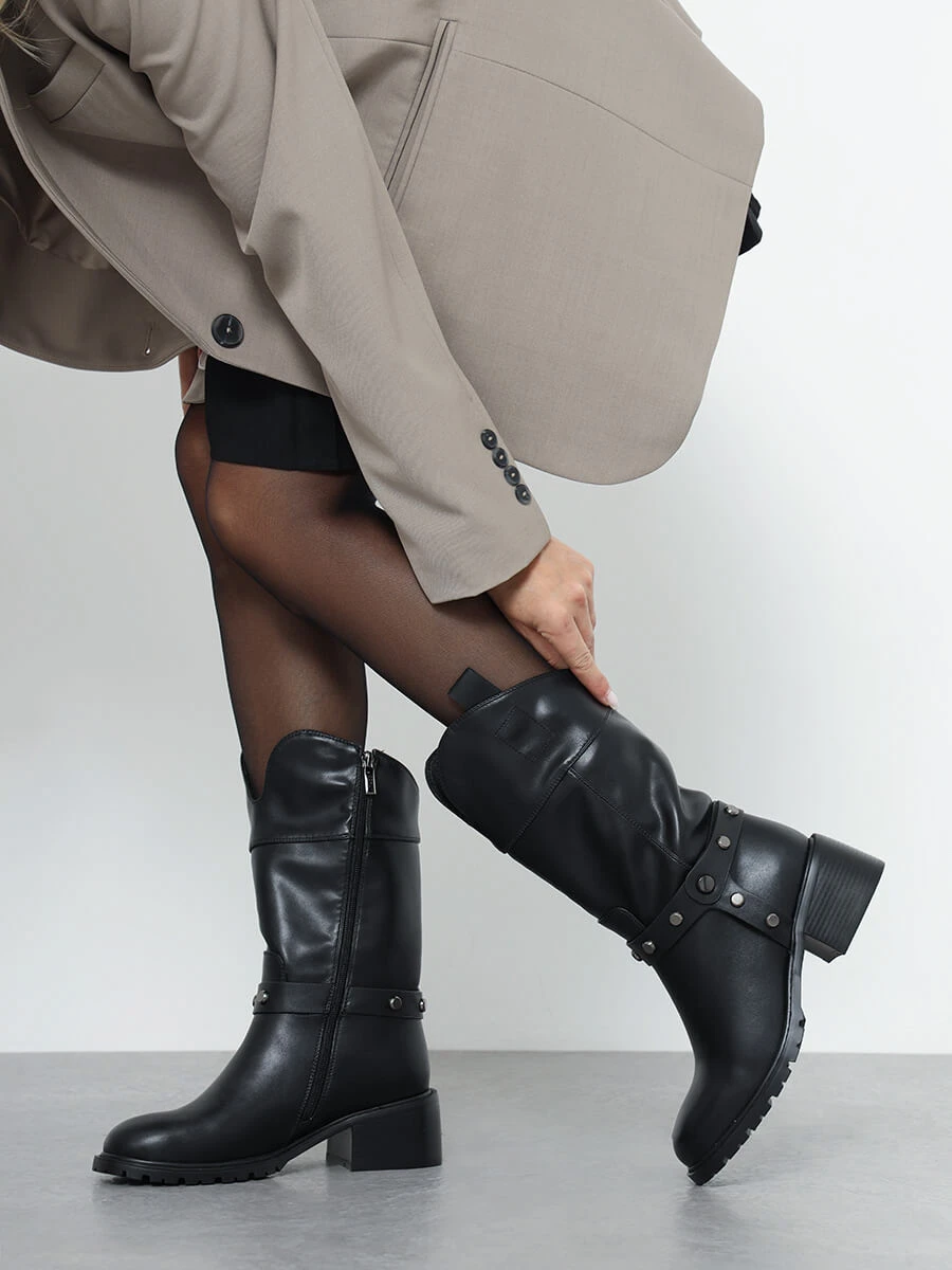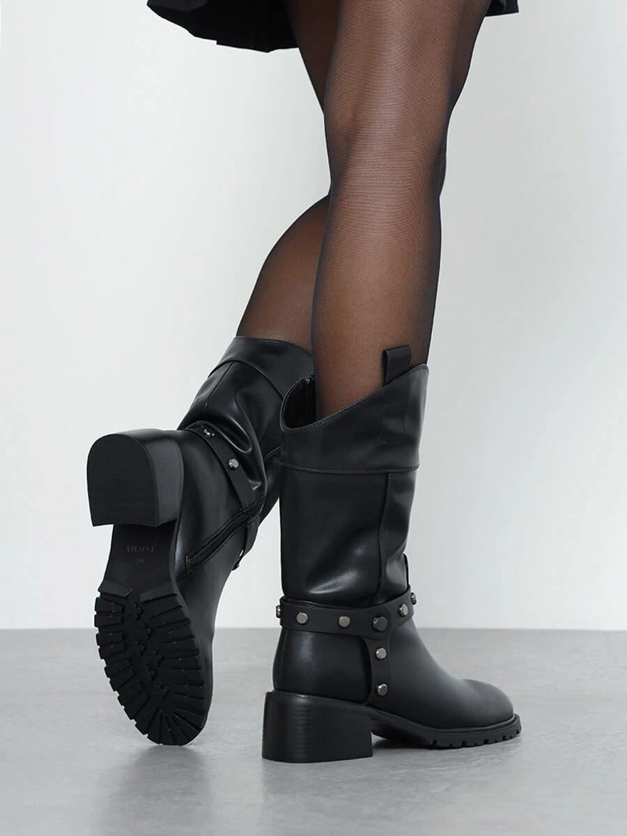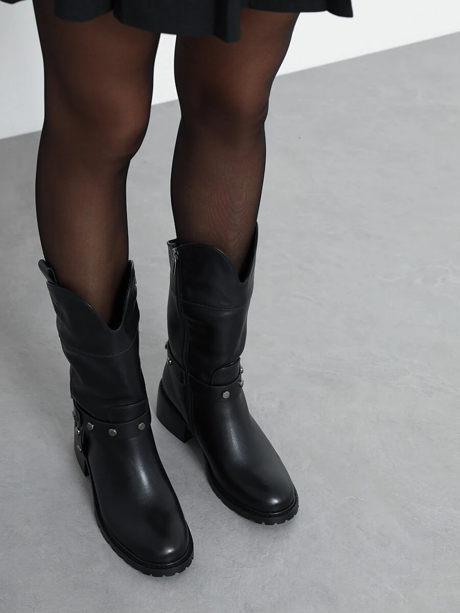 Полусапоги женские зимние, цвет черный, искусственная кожа