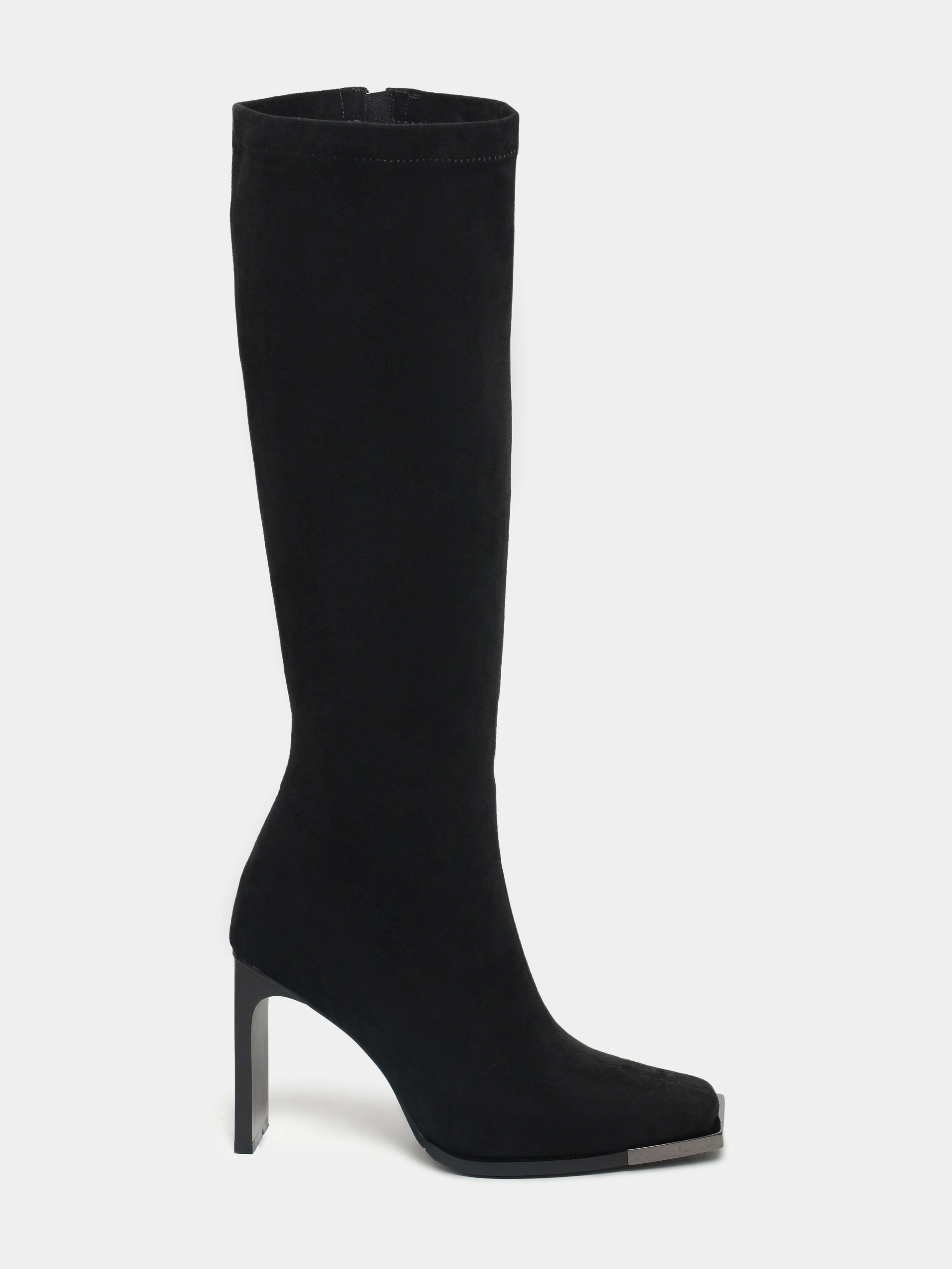 Сапоги женские демисезонные, цвет черный, искусственный велюр