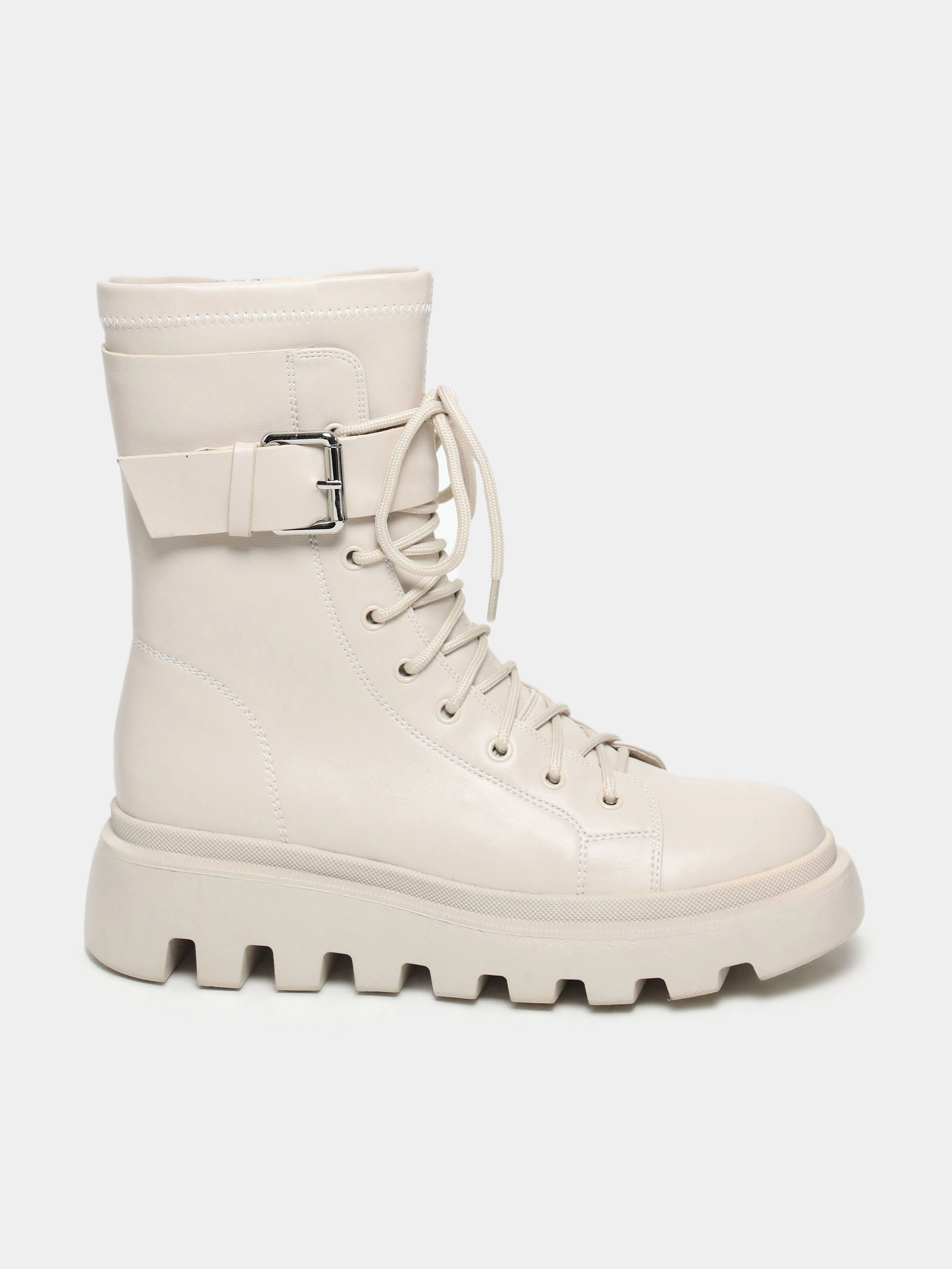 Полусапоги женские демисезонные, цвет молочный, искусственная кожа