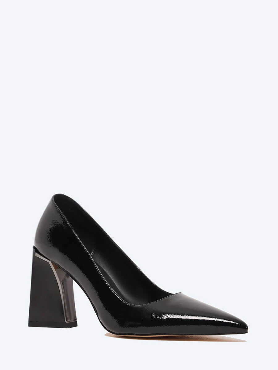 Туфли женские всесезонные, цвет черный, искусственная лаковая кожа