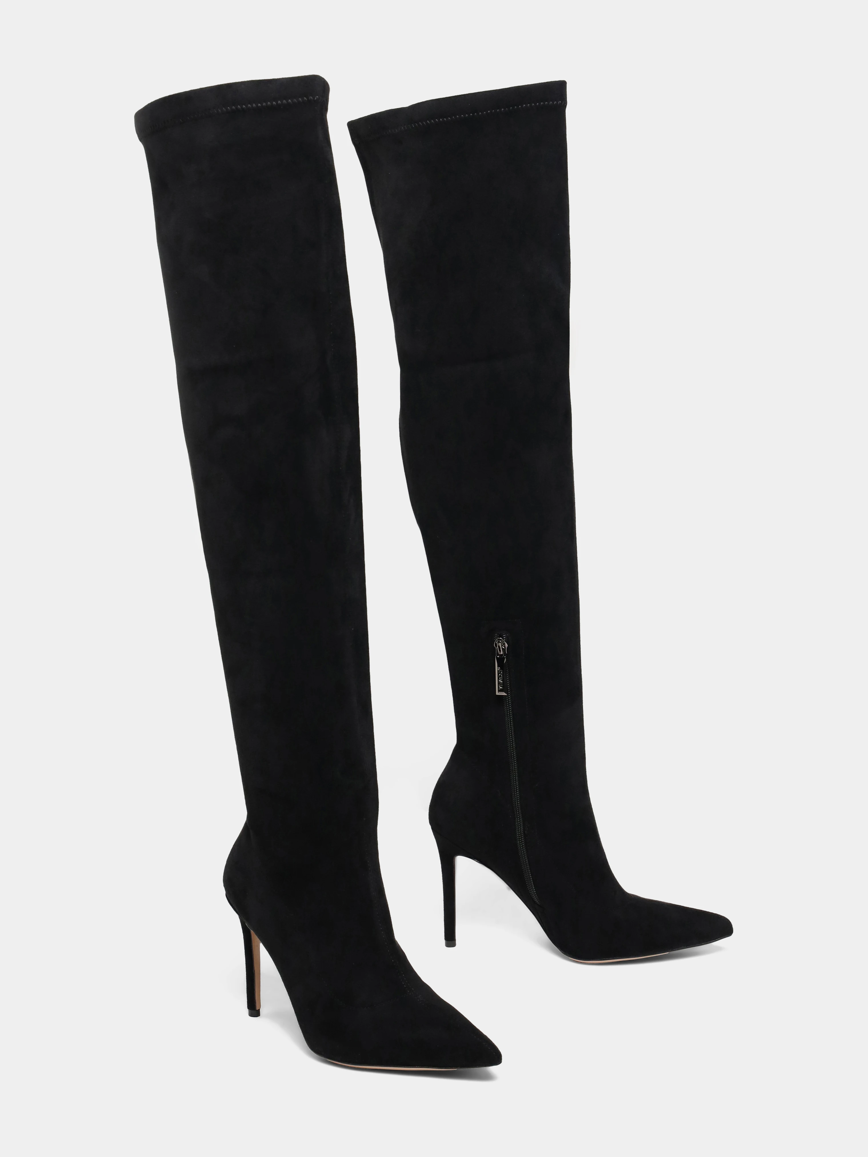 Ботфорты женские демисезонные, цвет черный, искусственный велюр