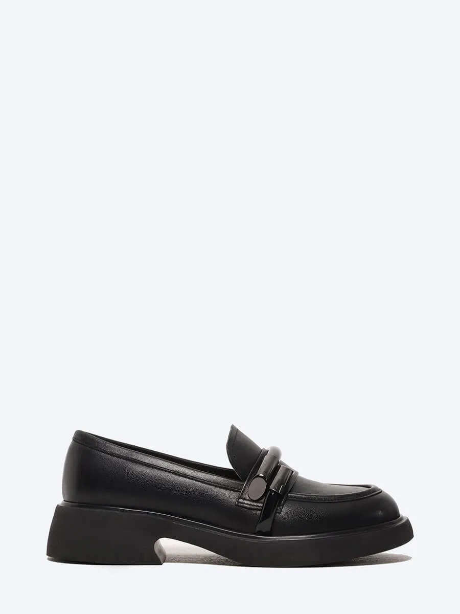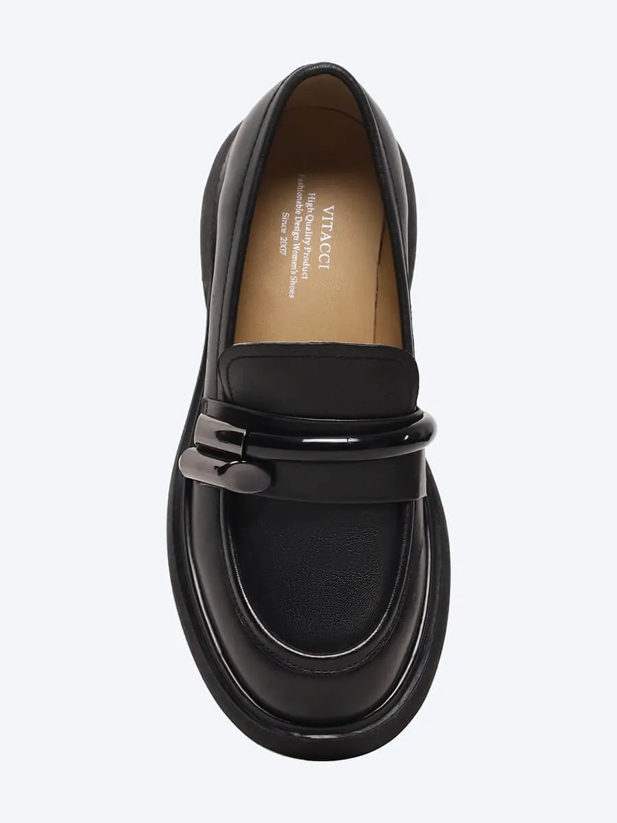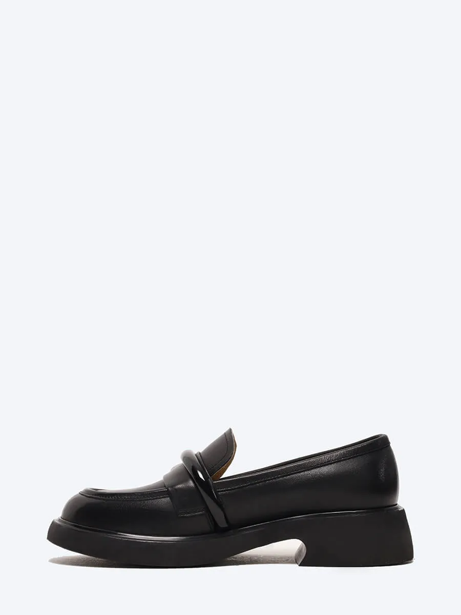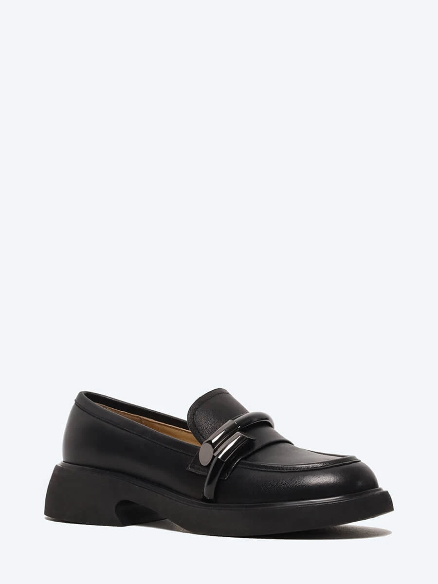 Лоферы женские всесезонные, цвет черный, натуральная кожа