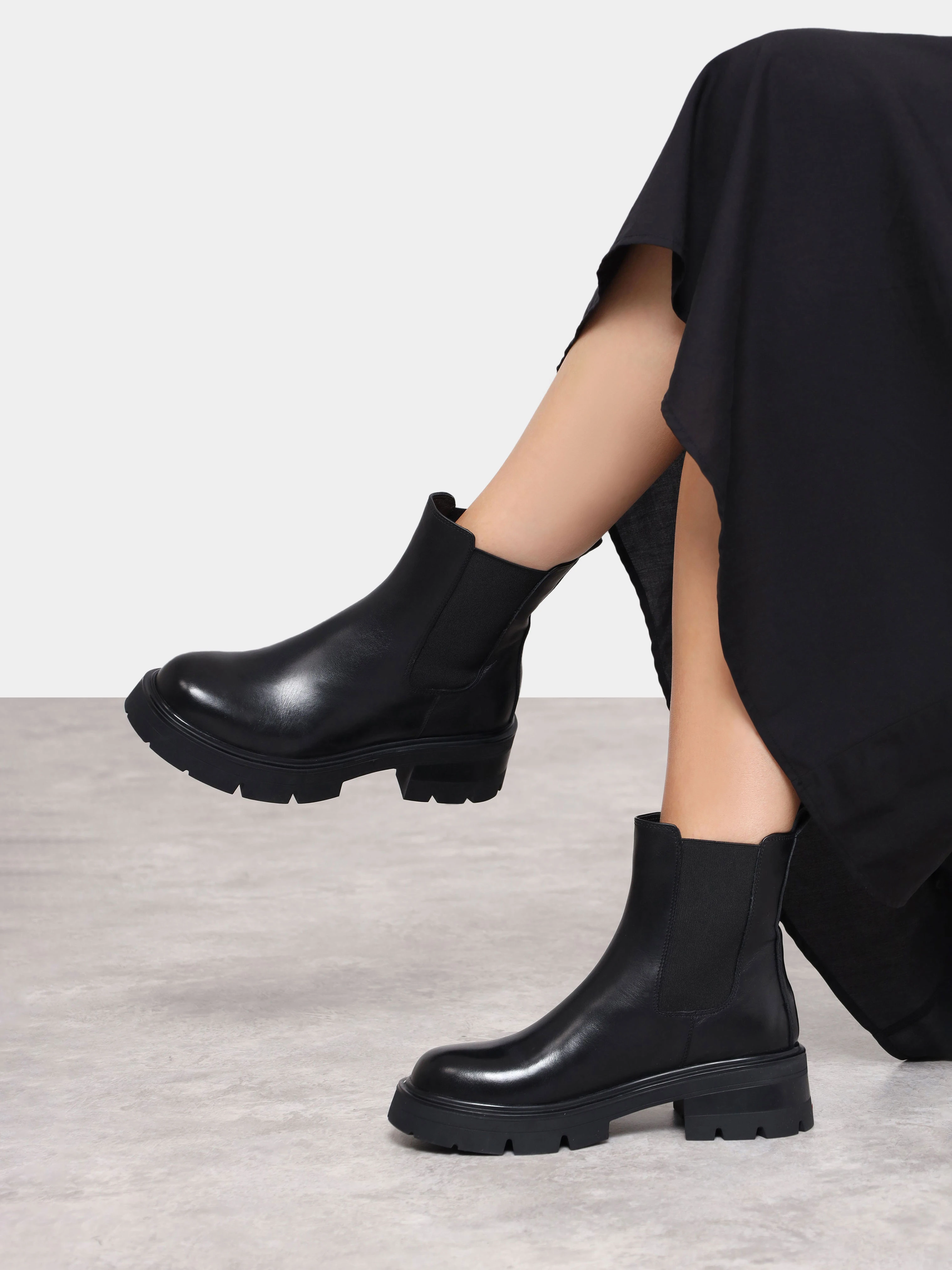 Ботинки женские демисезонные, цвет черный, натуральная кожа