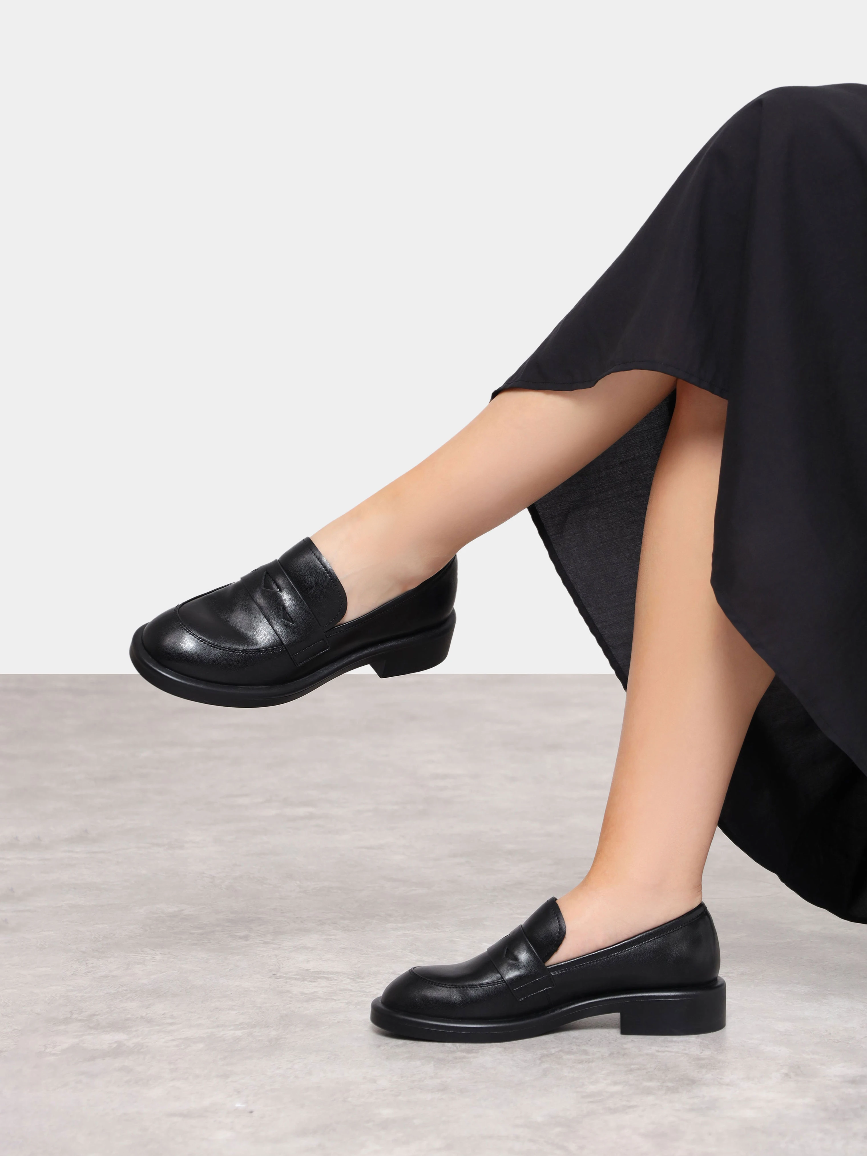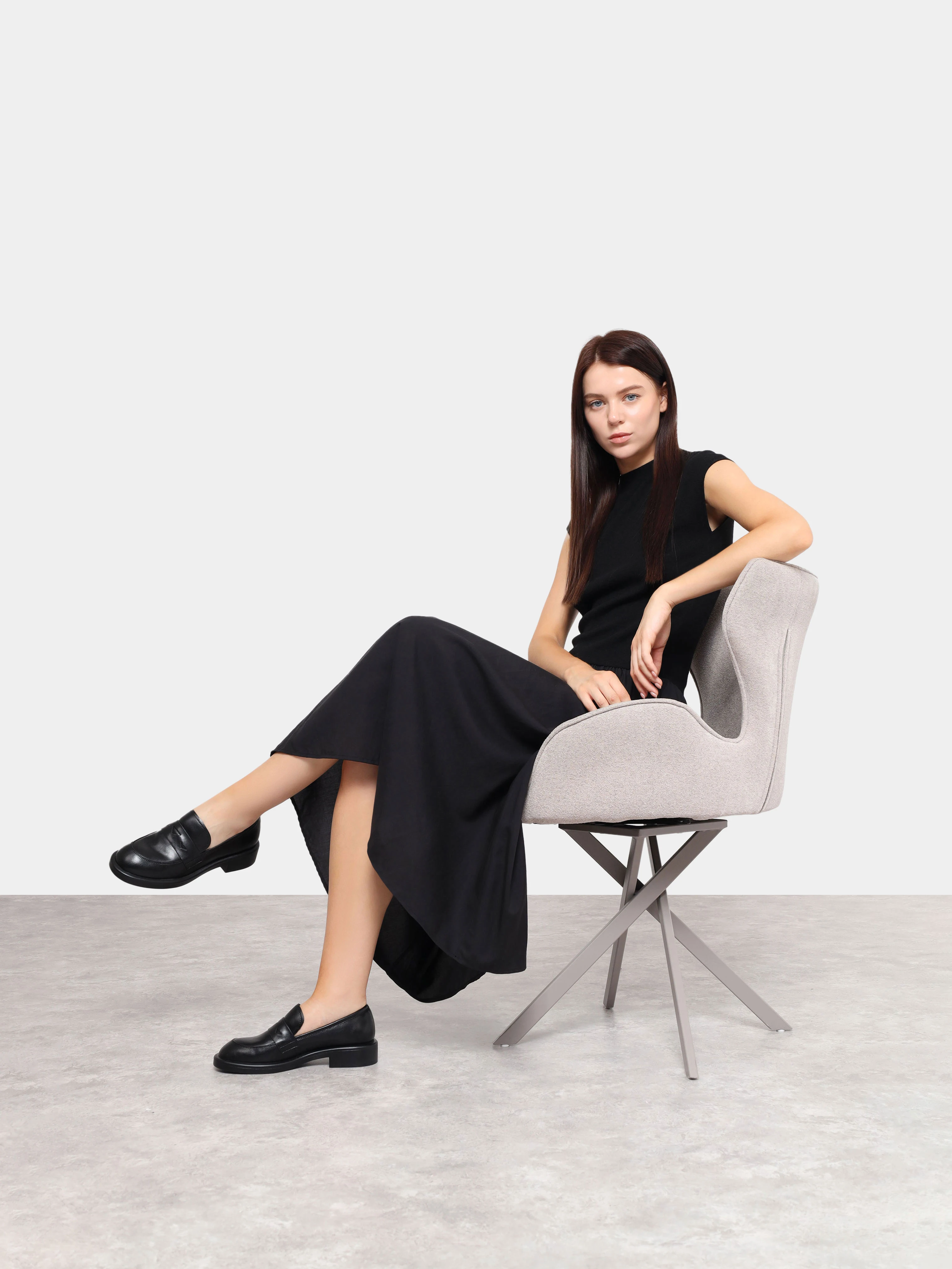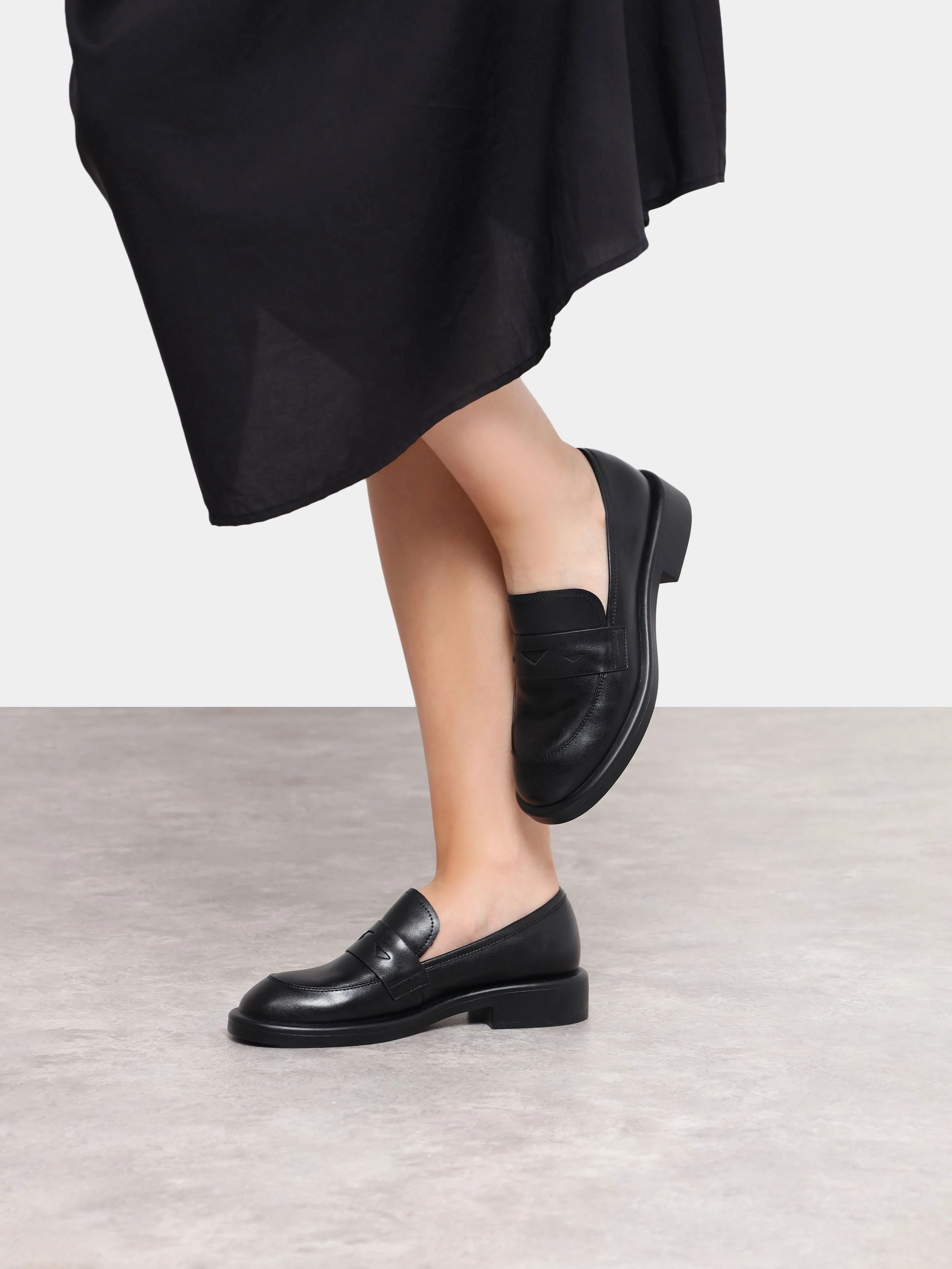 Лоферы женские всесезонные, цвет черный, натуральная кожа и полимерные материалы