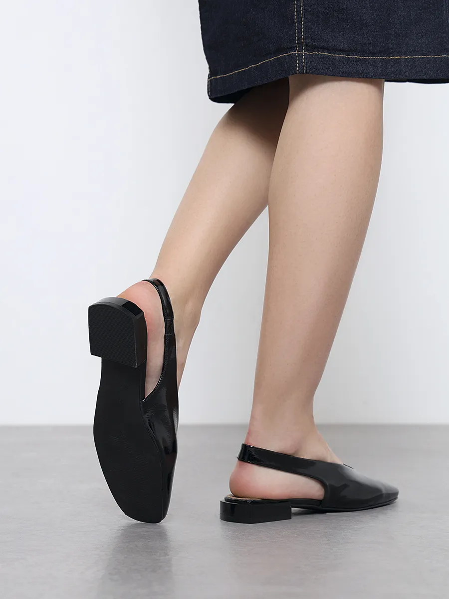 Туфли женские летние, цвет черный, натуральная кожа и полимерные материалы