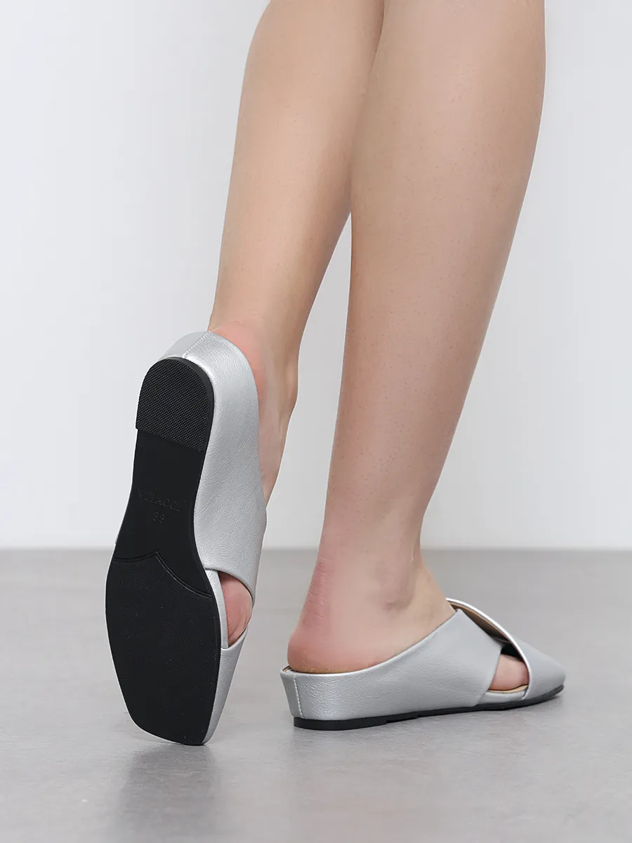 Сабо женские летние, цвет серебряный, искусственная кожа