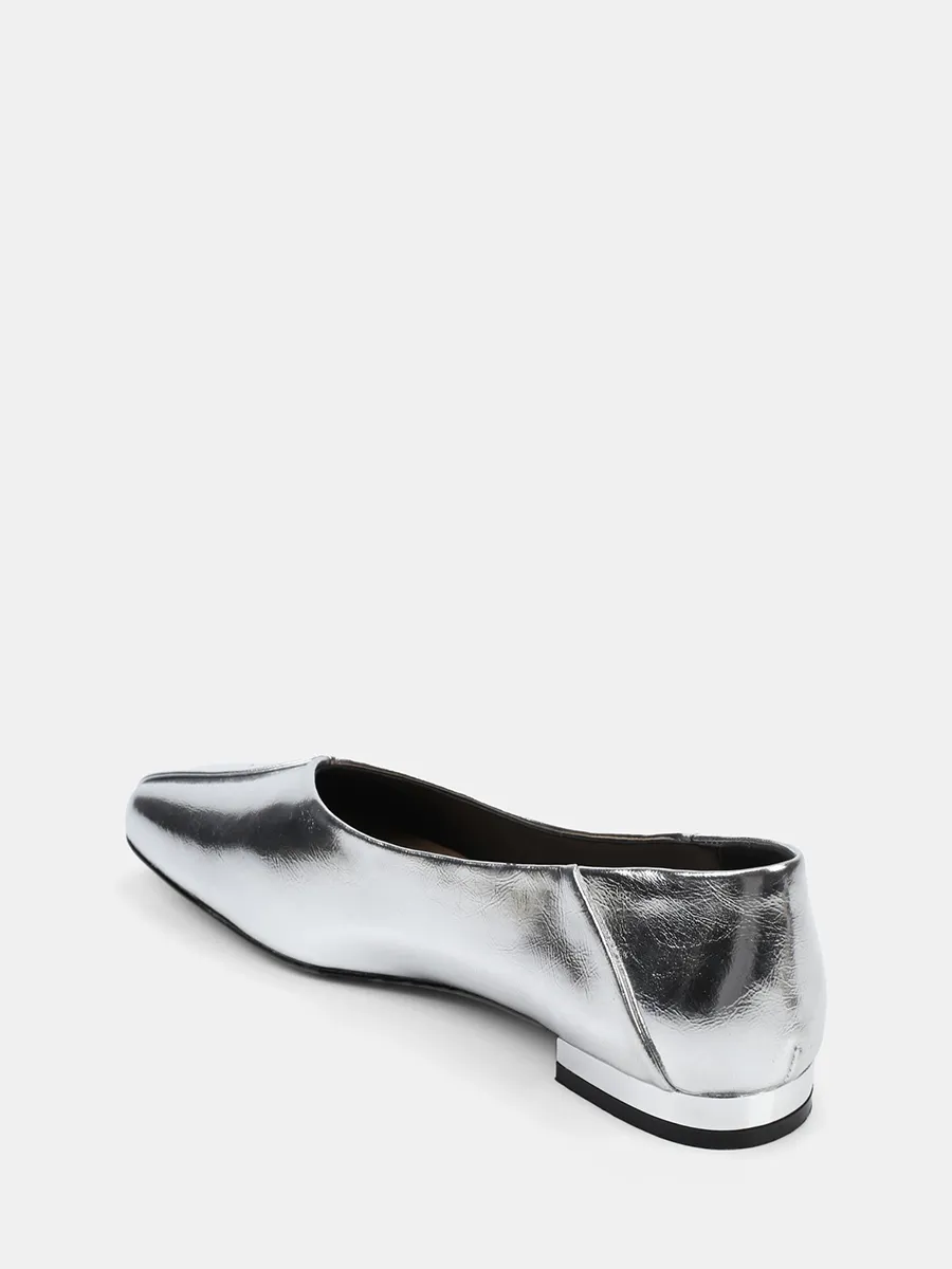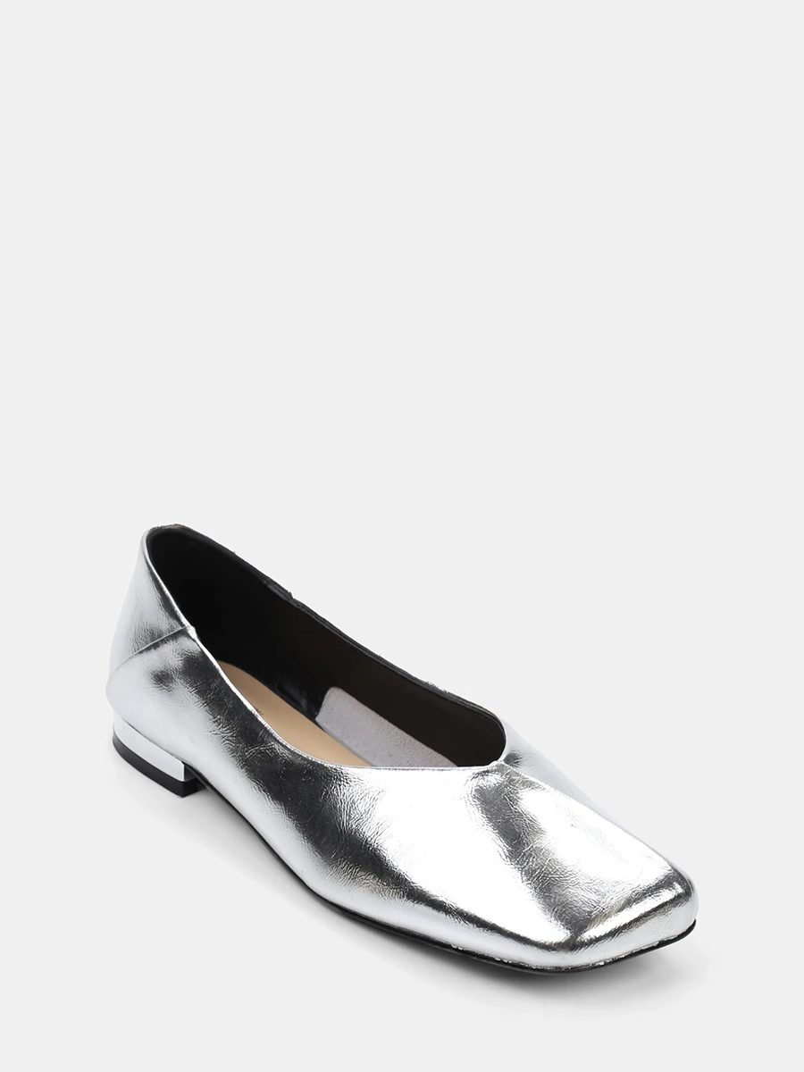 Балетки женские всесезонные, цвет серебряный, натуральная кожа и полимерные материалы