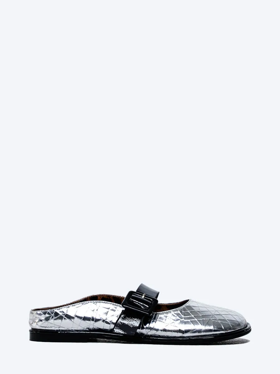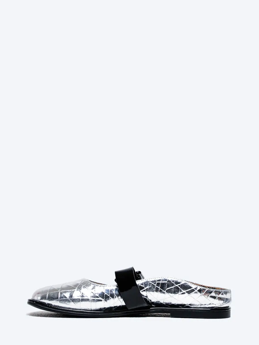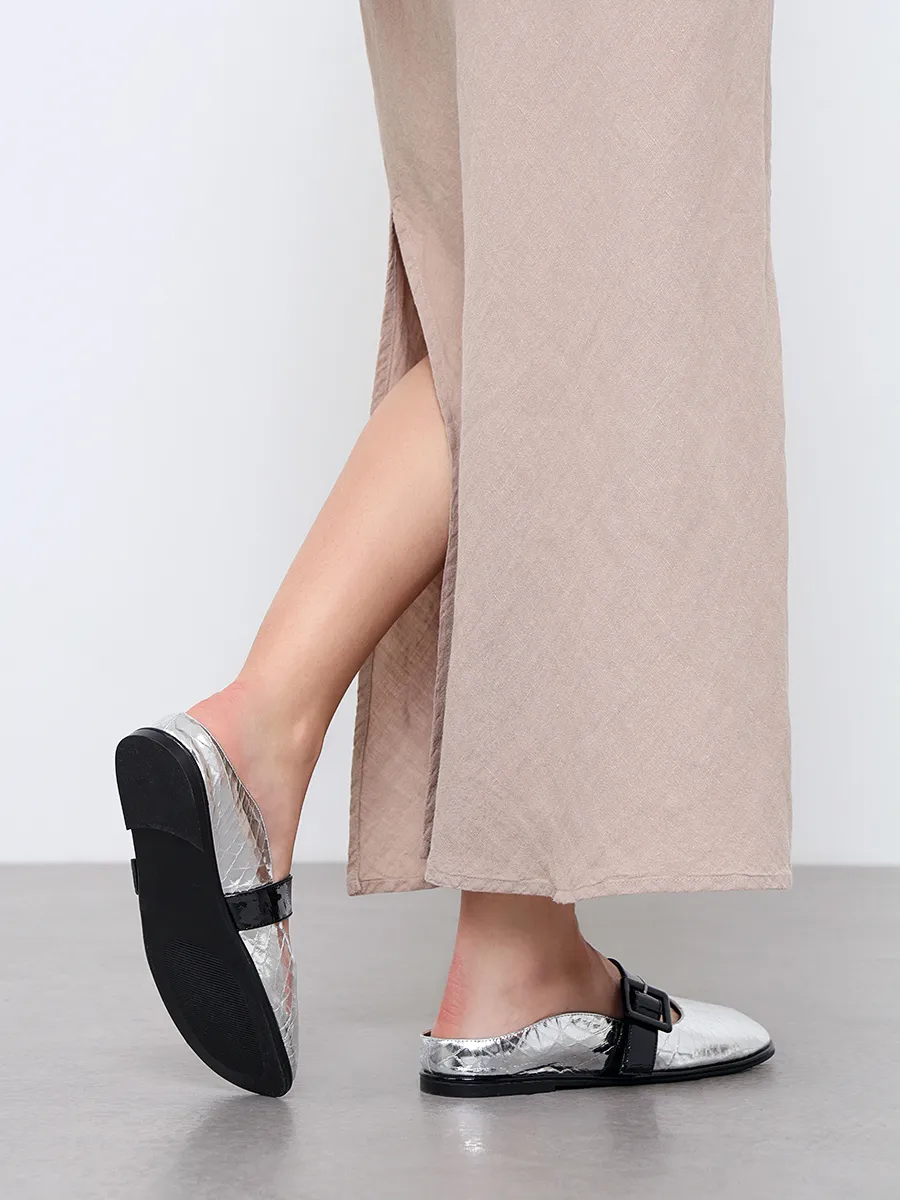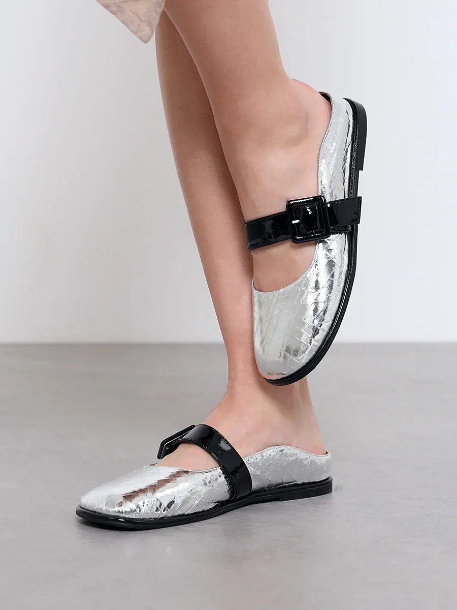 Балетки женские всесезонные, цвет серебряный, натуральная кожа/натуральная лаковая кожа