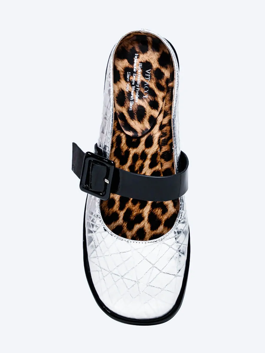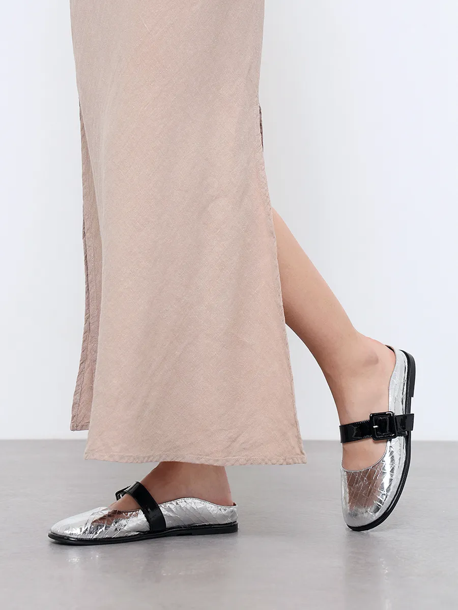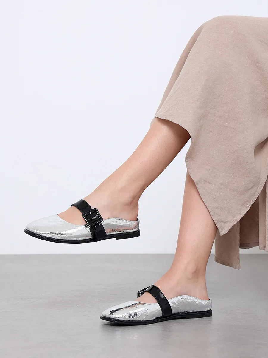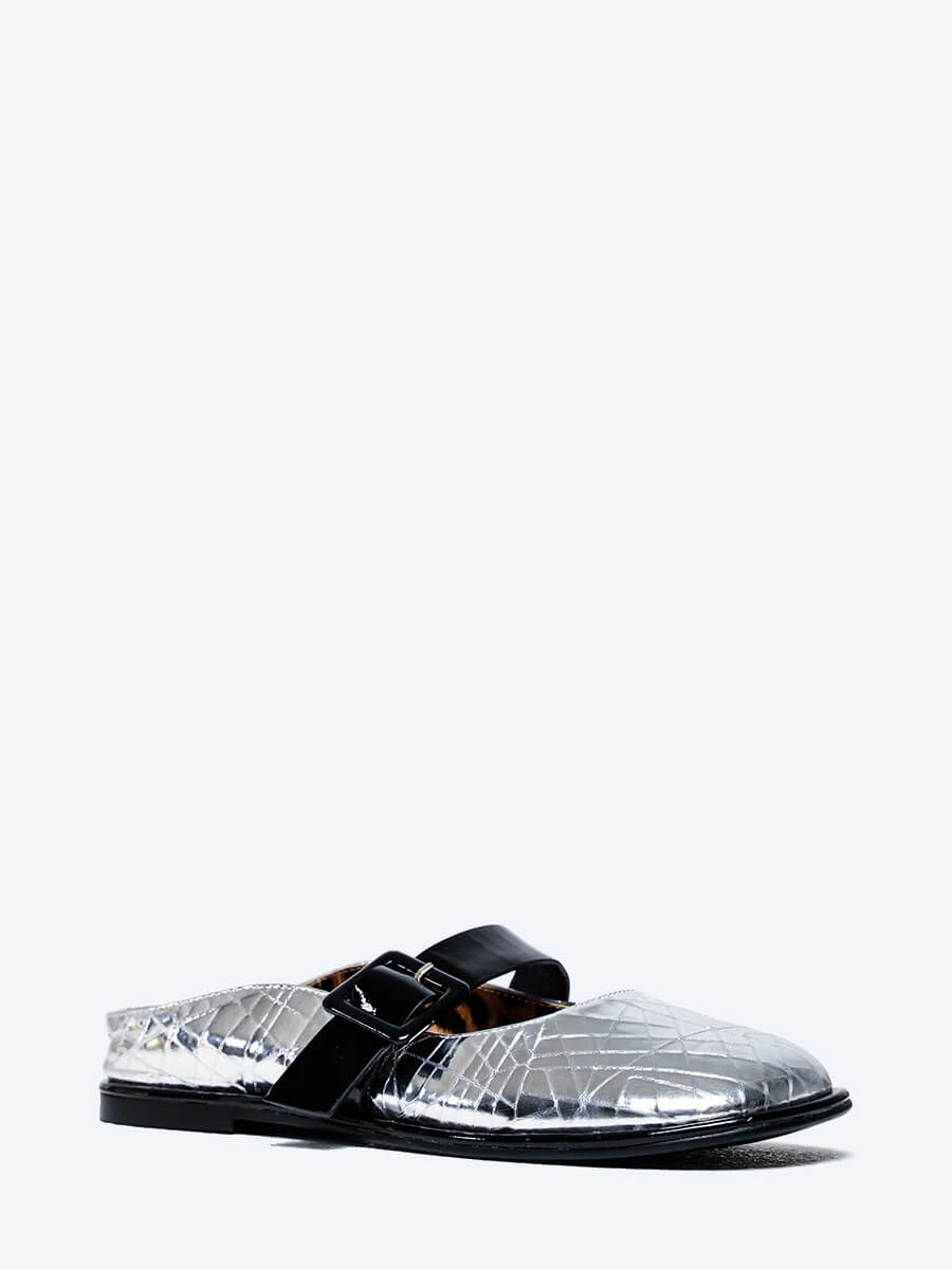 Балетки женские всесезонные, цвет серебряный, натуральная кожа/натуральная лаковая кожа