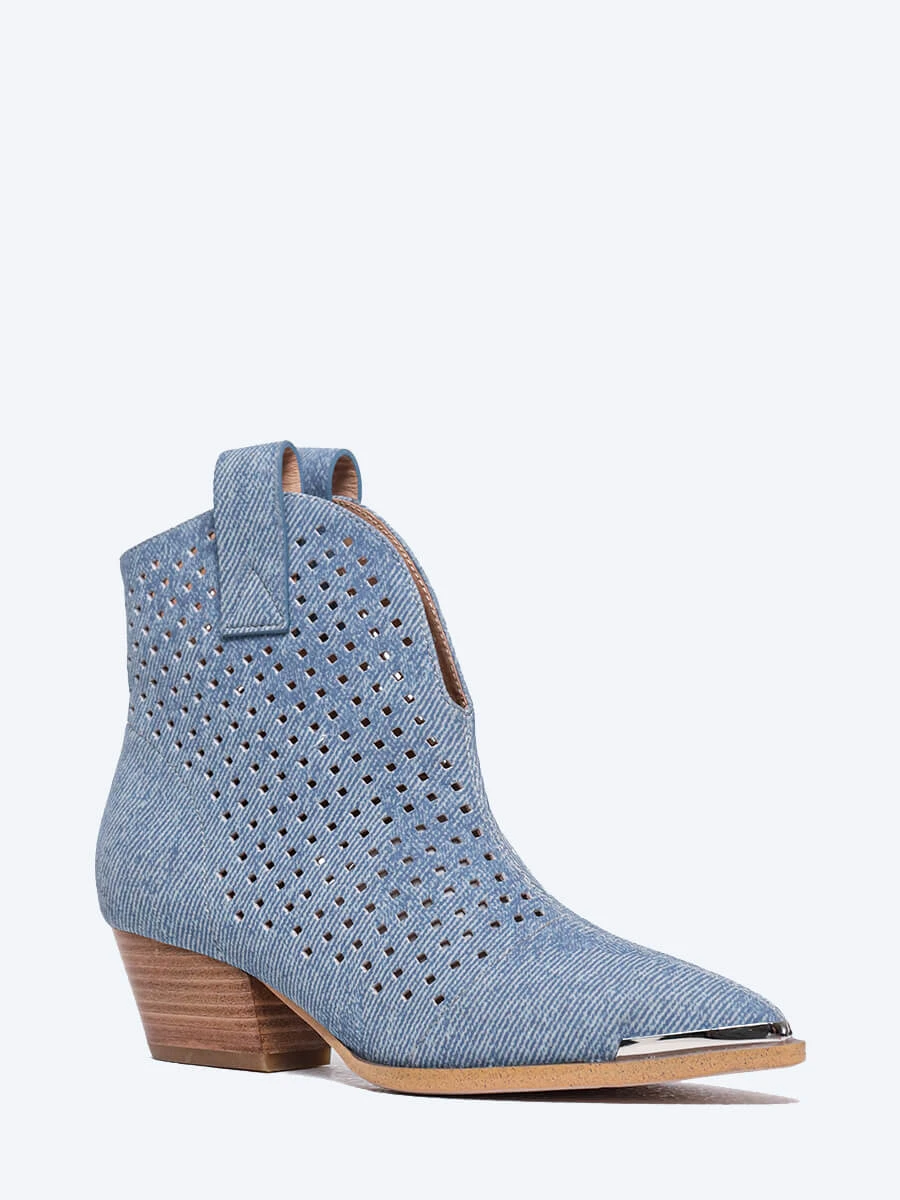 Ботильоны женские летние, цвет голубой, натуральная кожа