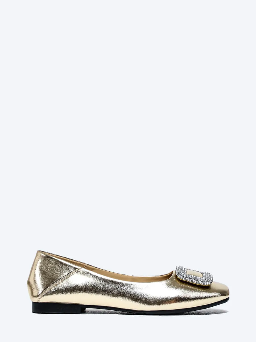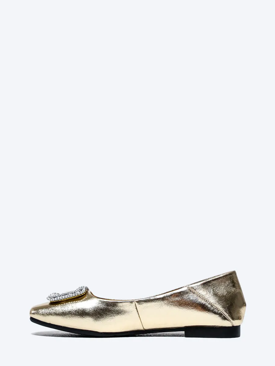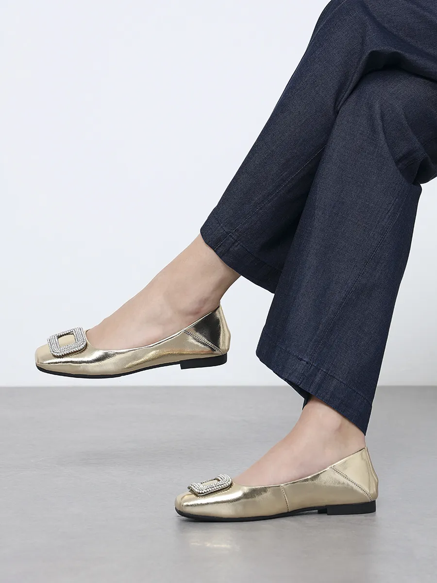 Балетки женские всесезонные, цвет золотой, натуральная кожа и полимерные материалы