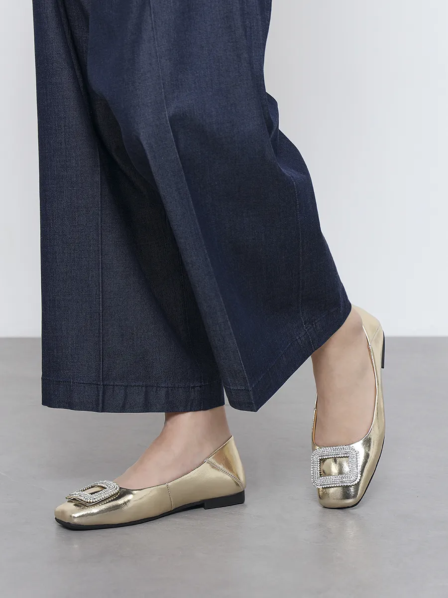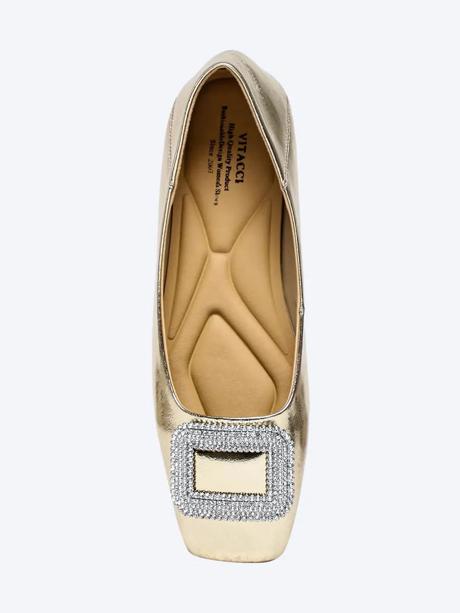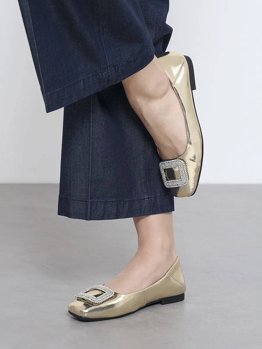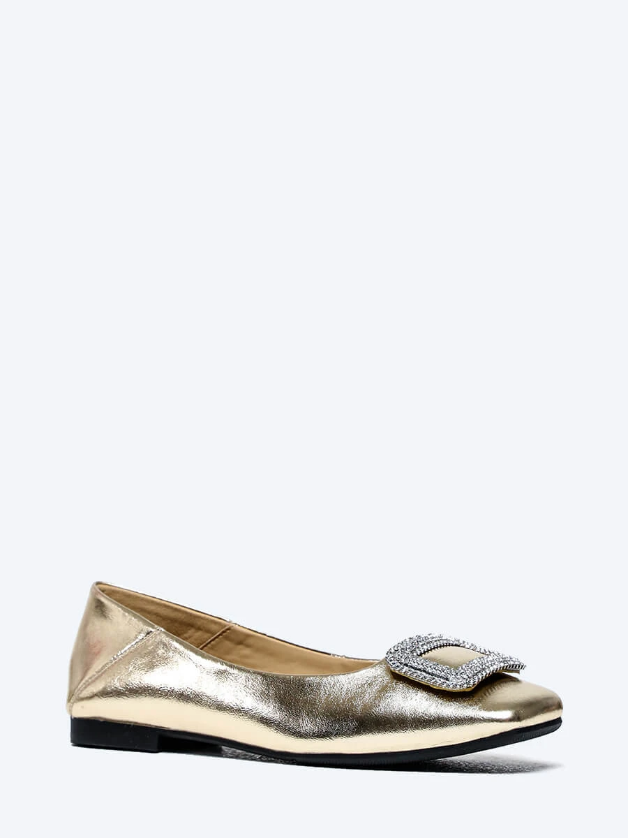 Балетки женские всесезонные, цвет золотой, натуральная кожа и полимерные материалы