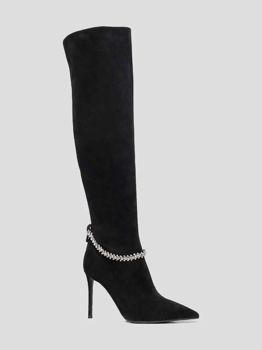 Ботфорты женские демисезонные, цвет черный, натуральный велюр