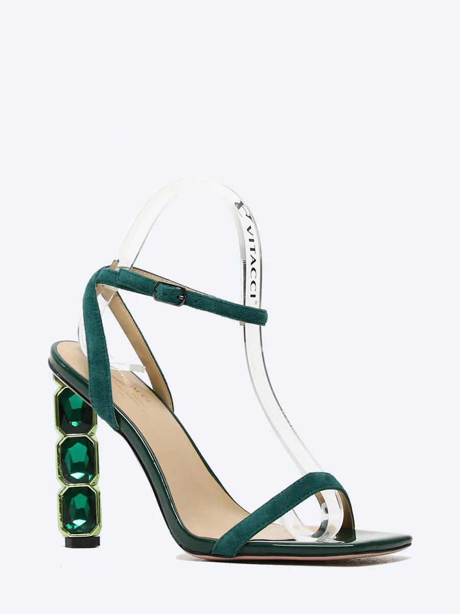 Босоножки женские летние, цвет изумрудный, натуральный велюр