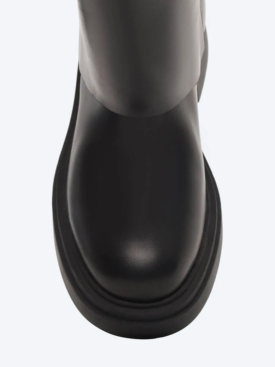 Сапоги женские демисезонные, цвет черный, натуральная кожа/микрофибра