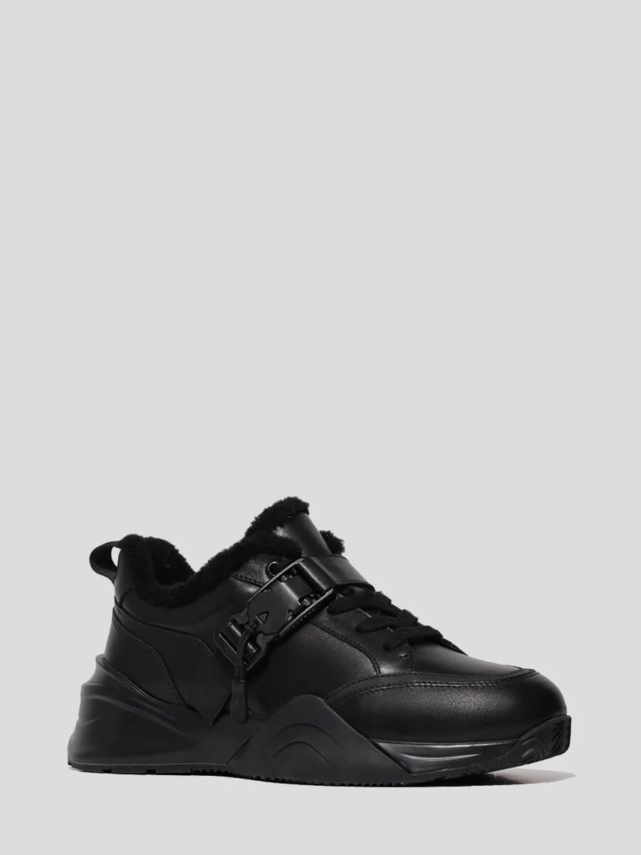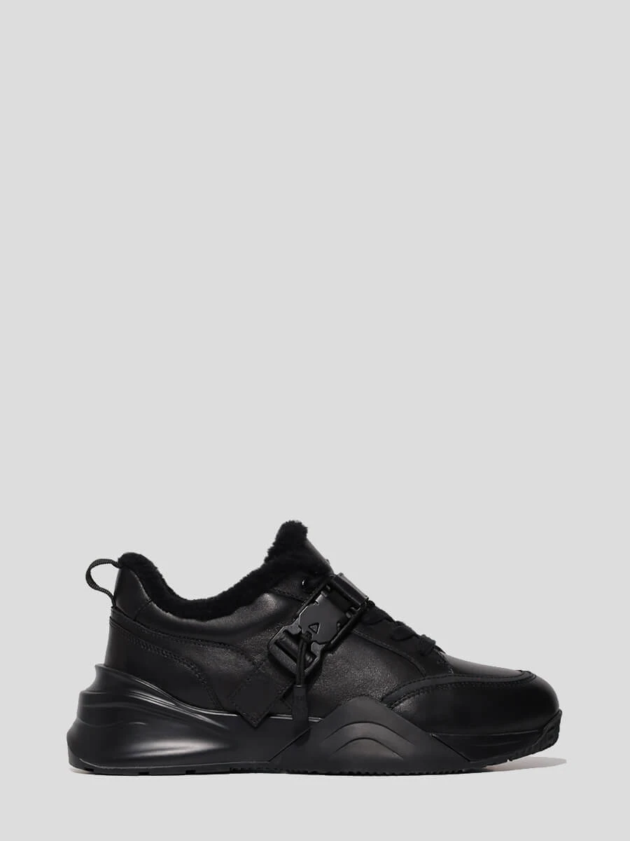 Кроссовки женские зимние, цвет черный, натуральная кожа