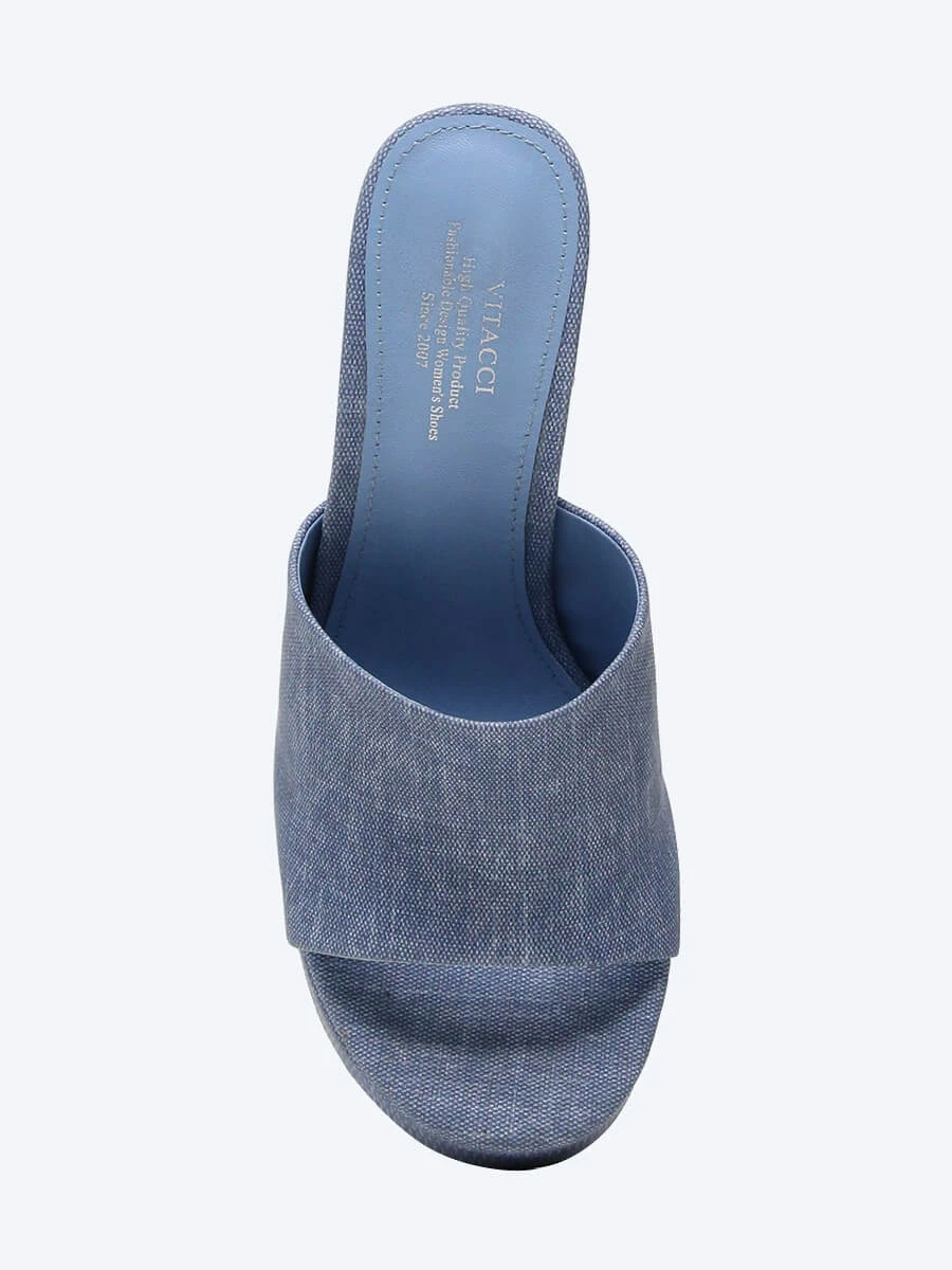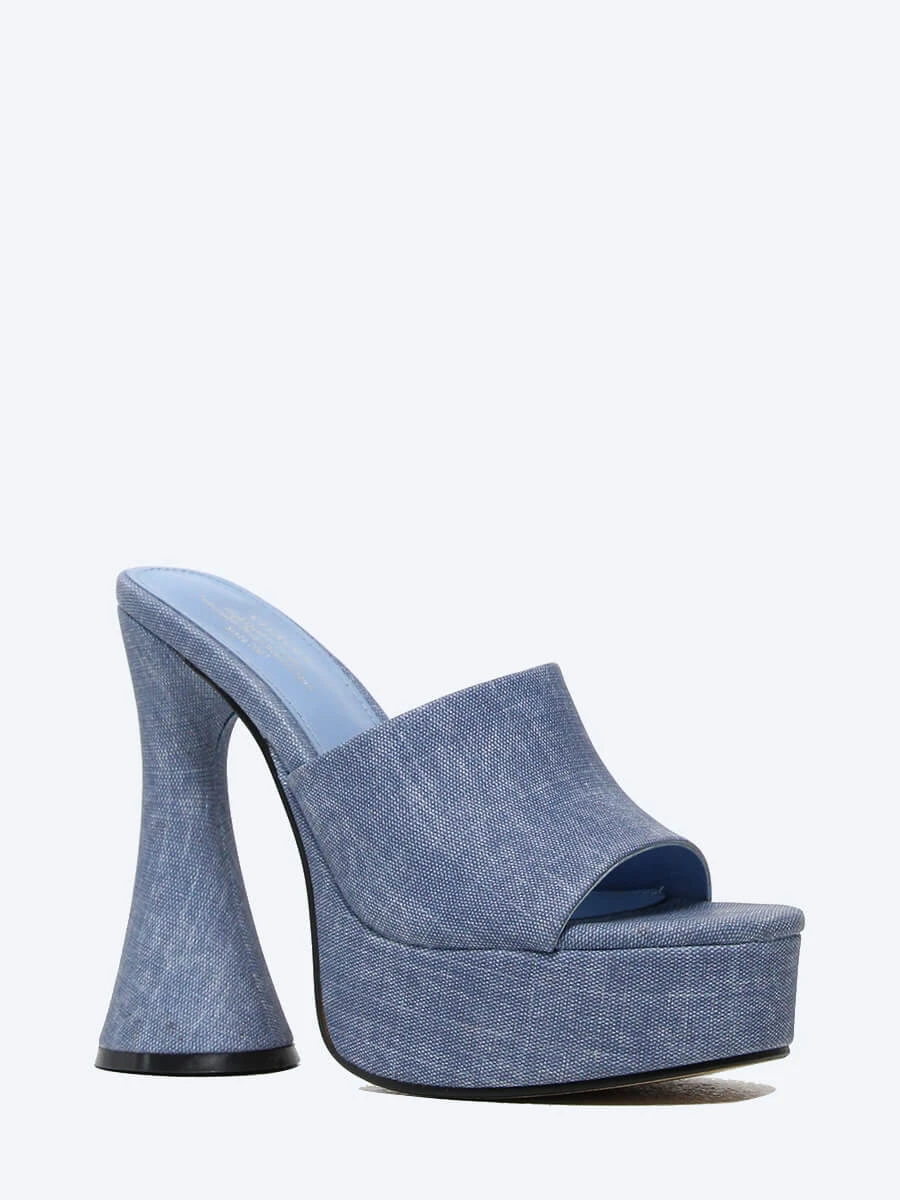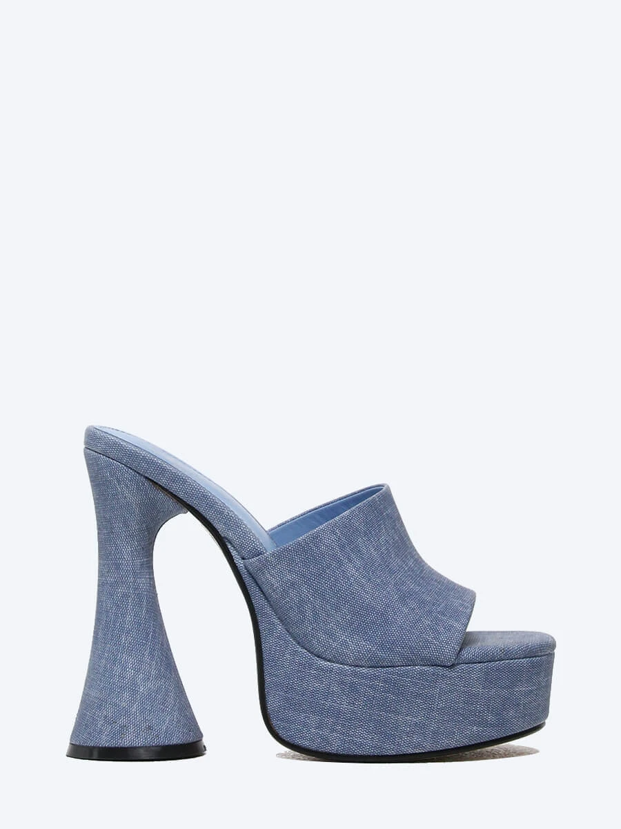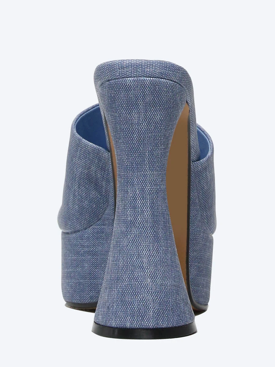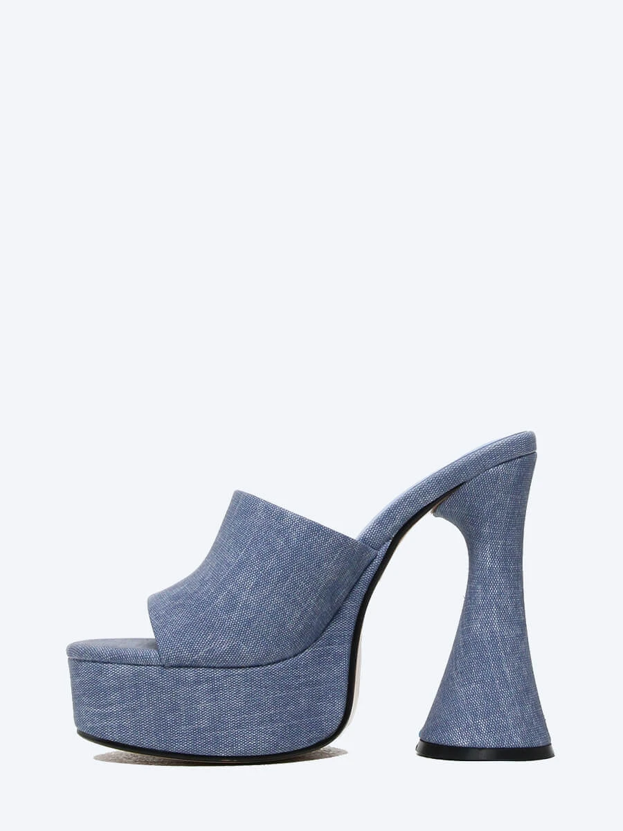Сабо выполнены из текстиля "джинса", который популярен в этом сезоне. Также данную модель отличают: платформа и фигурный каблук, стелька из натуральной кожи.