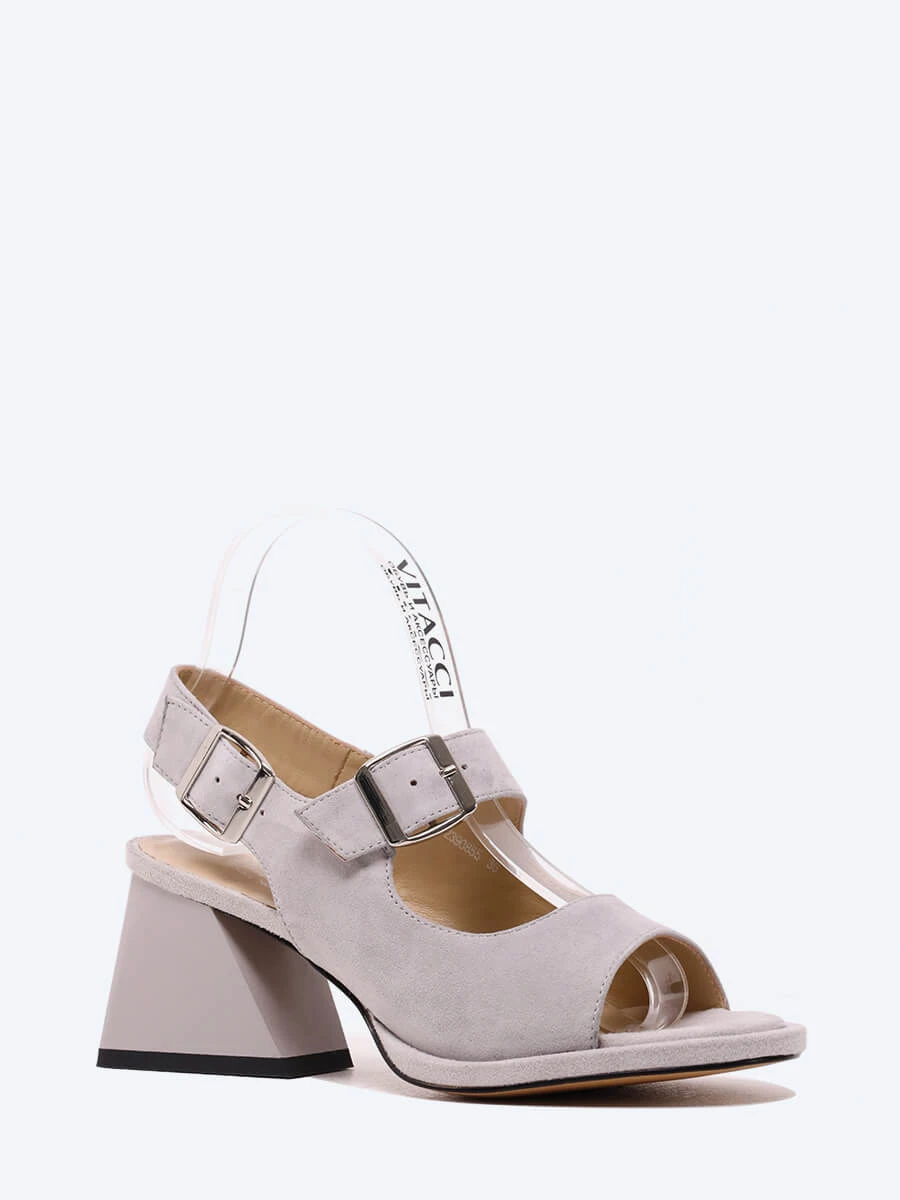 Босоножки выполнены из натурального велюра, внутри подкладка и стелька из натуральной кожи. Данная модель будет идеальной обувью для лета благодаря открытому носку и пятке, широкому устойчивому каблуку.