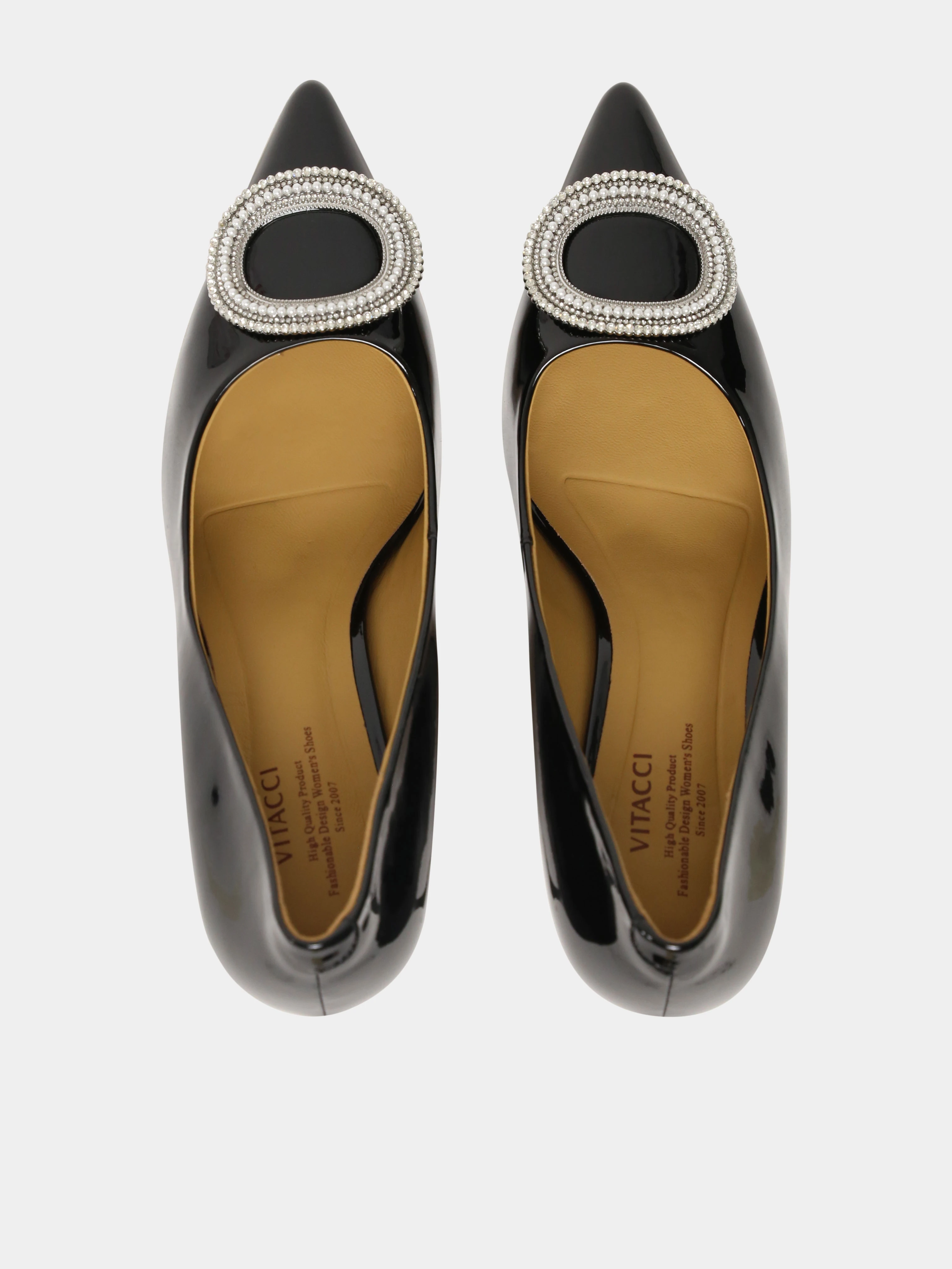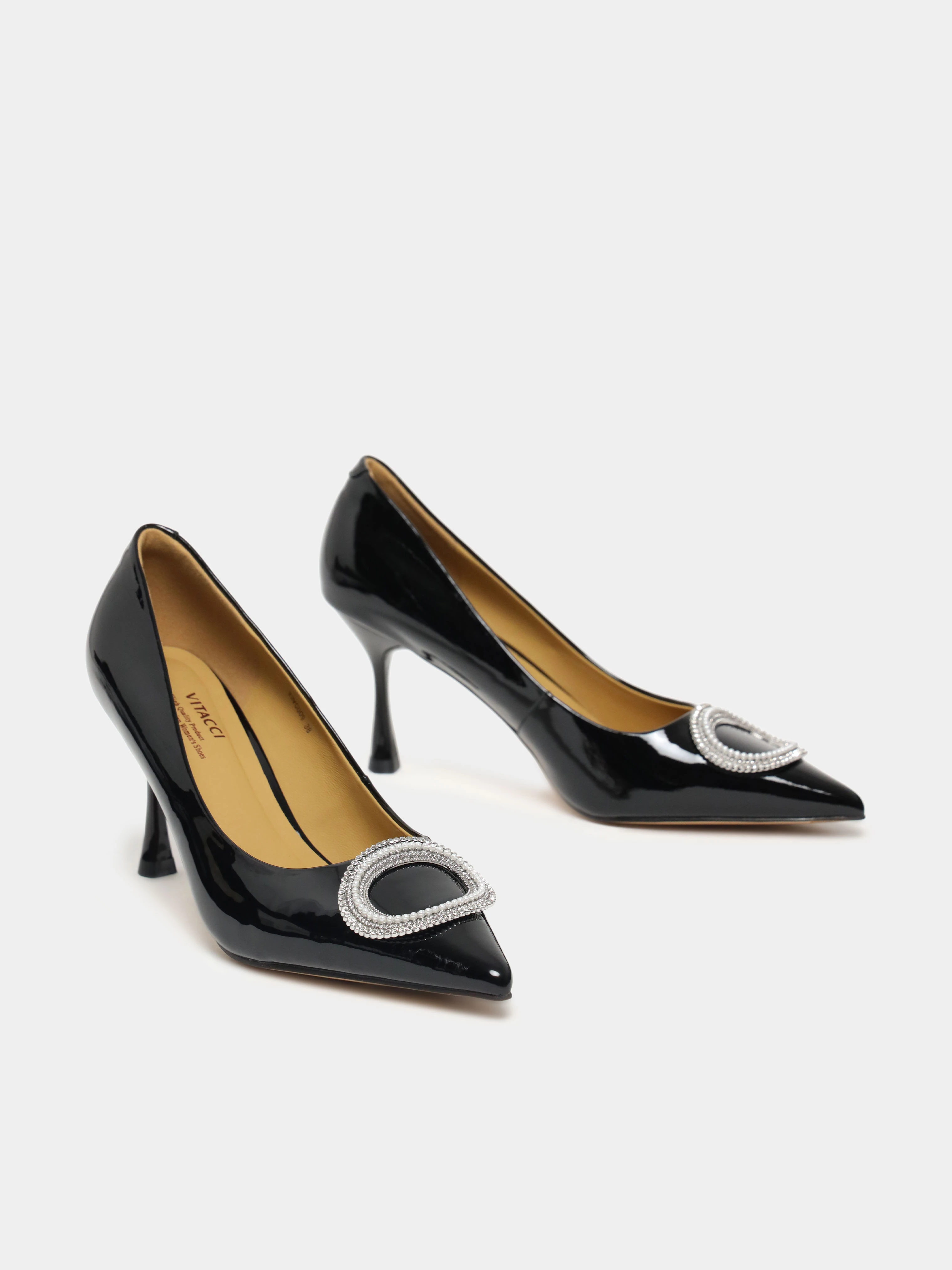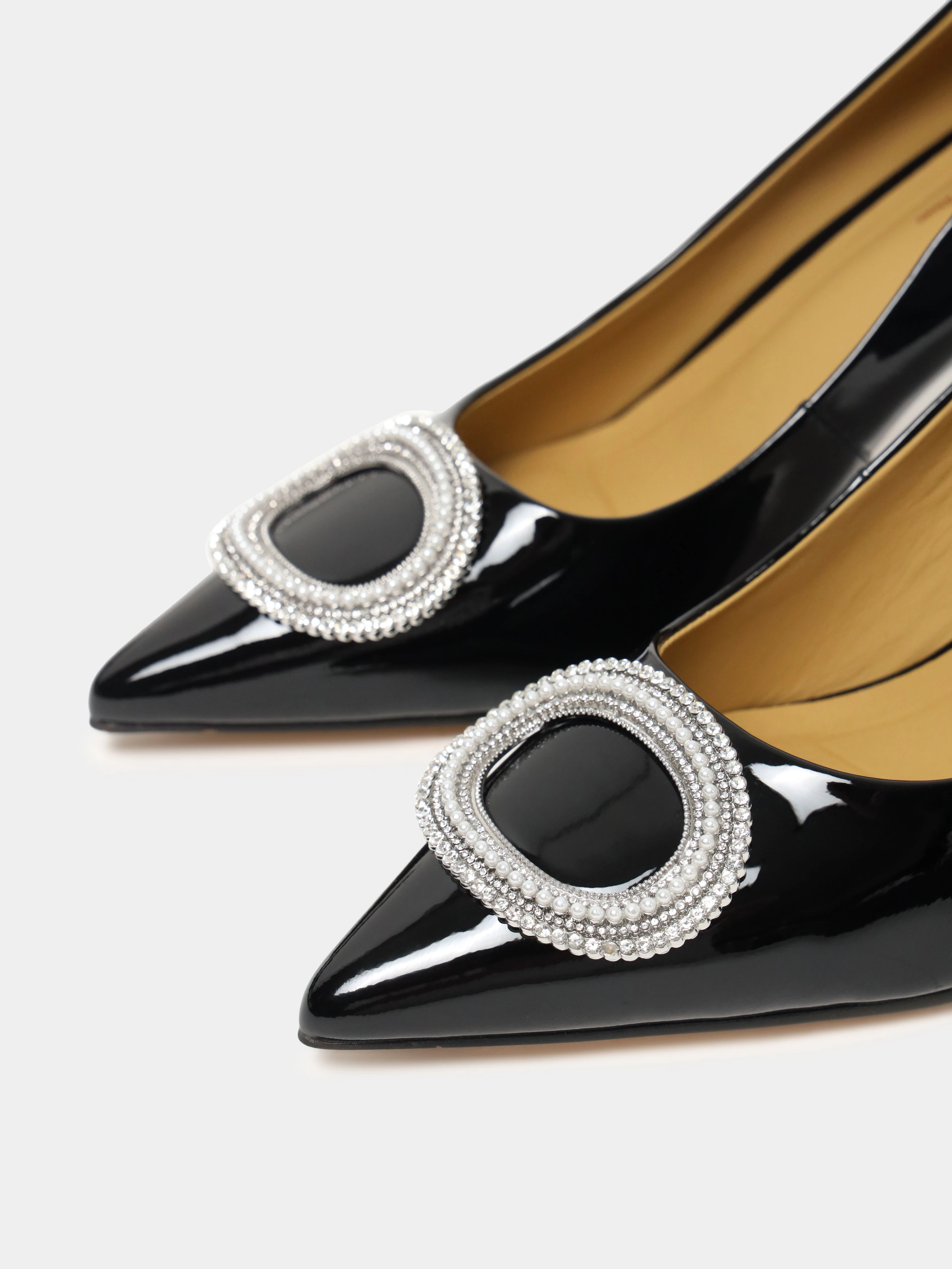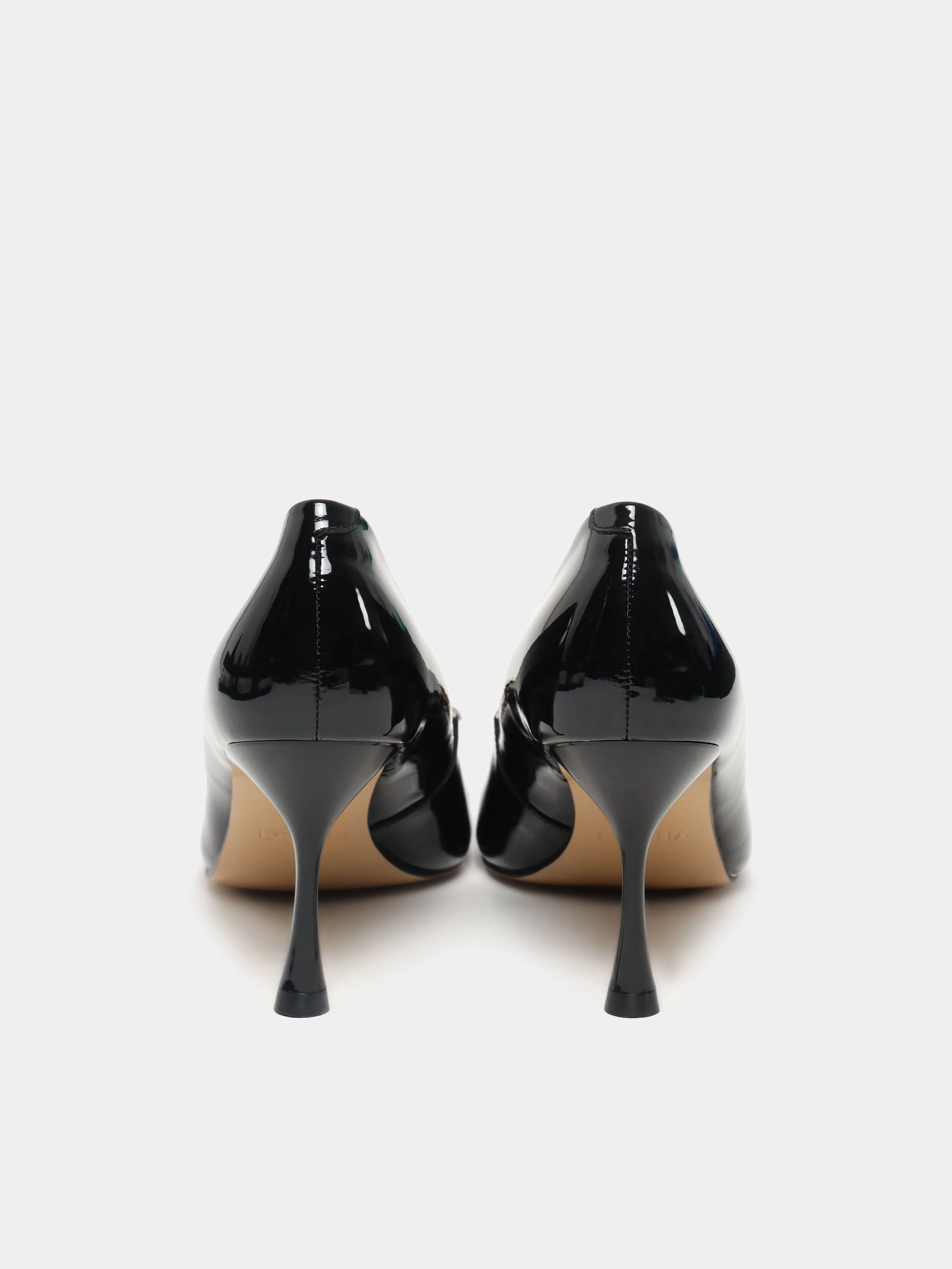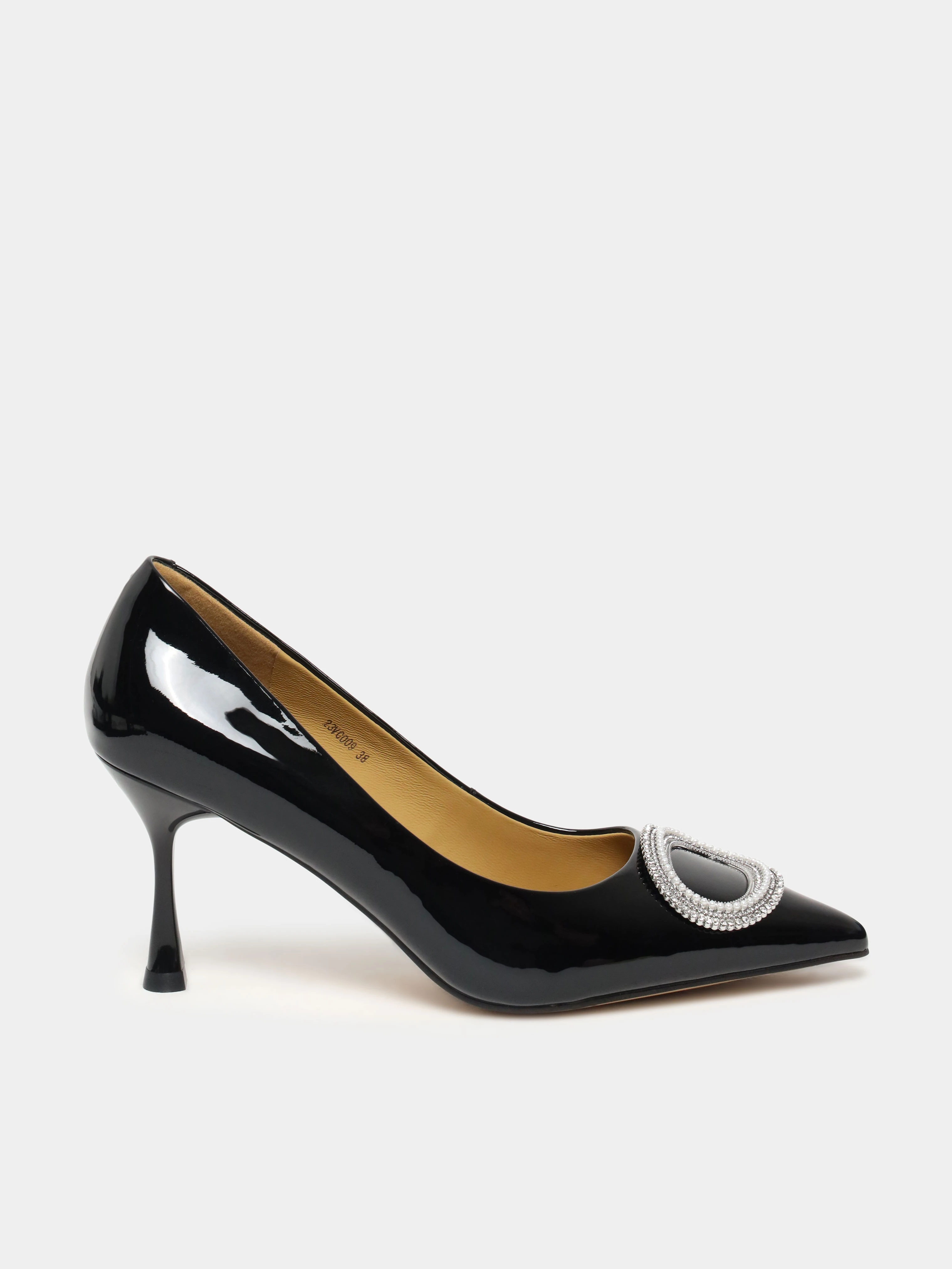 Туфли женские всесезонные, цвет черный, натуральная лаковая кожа