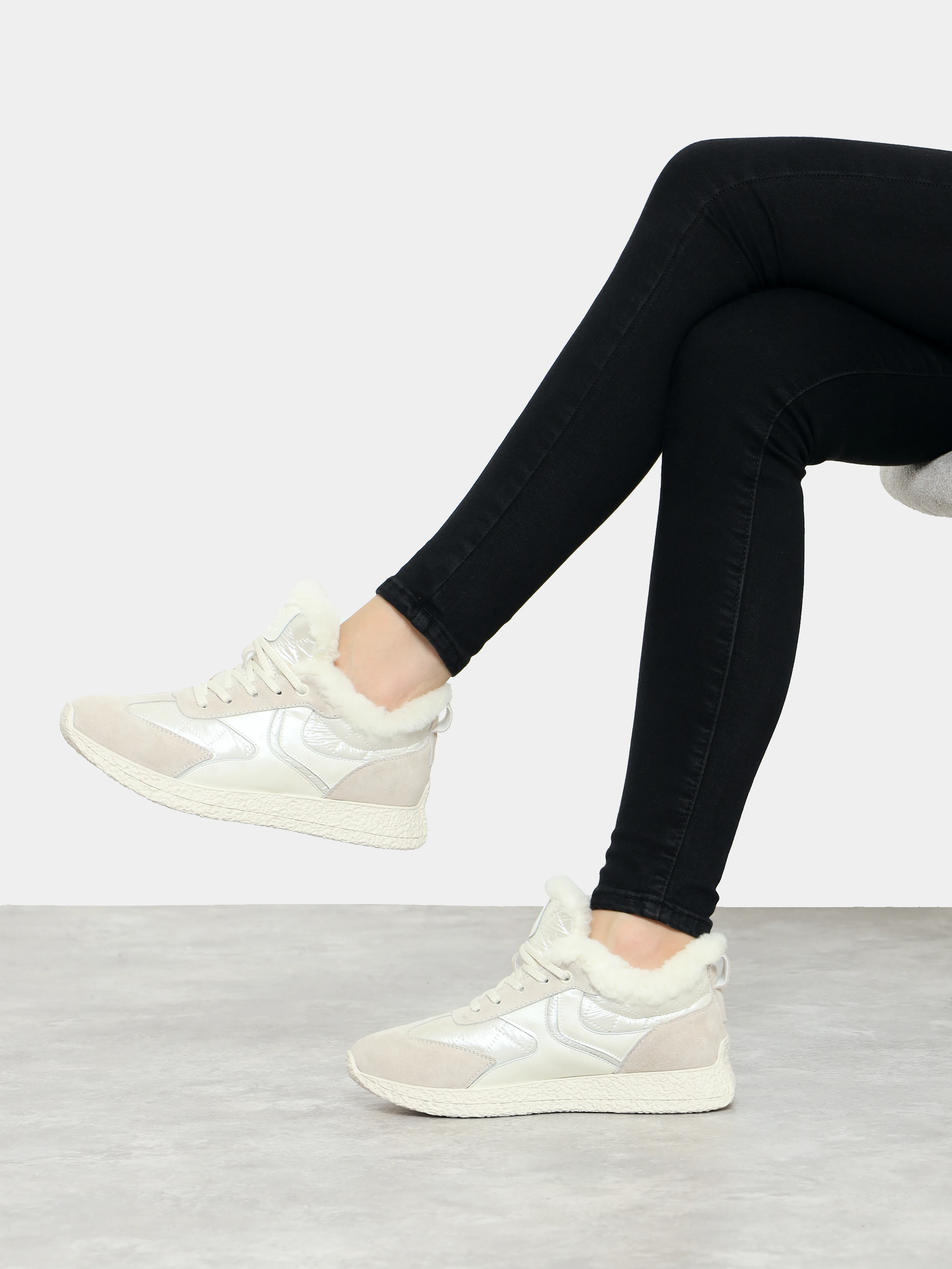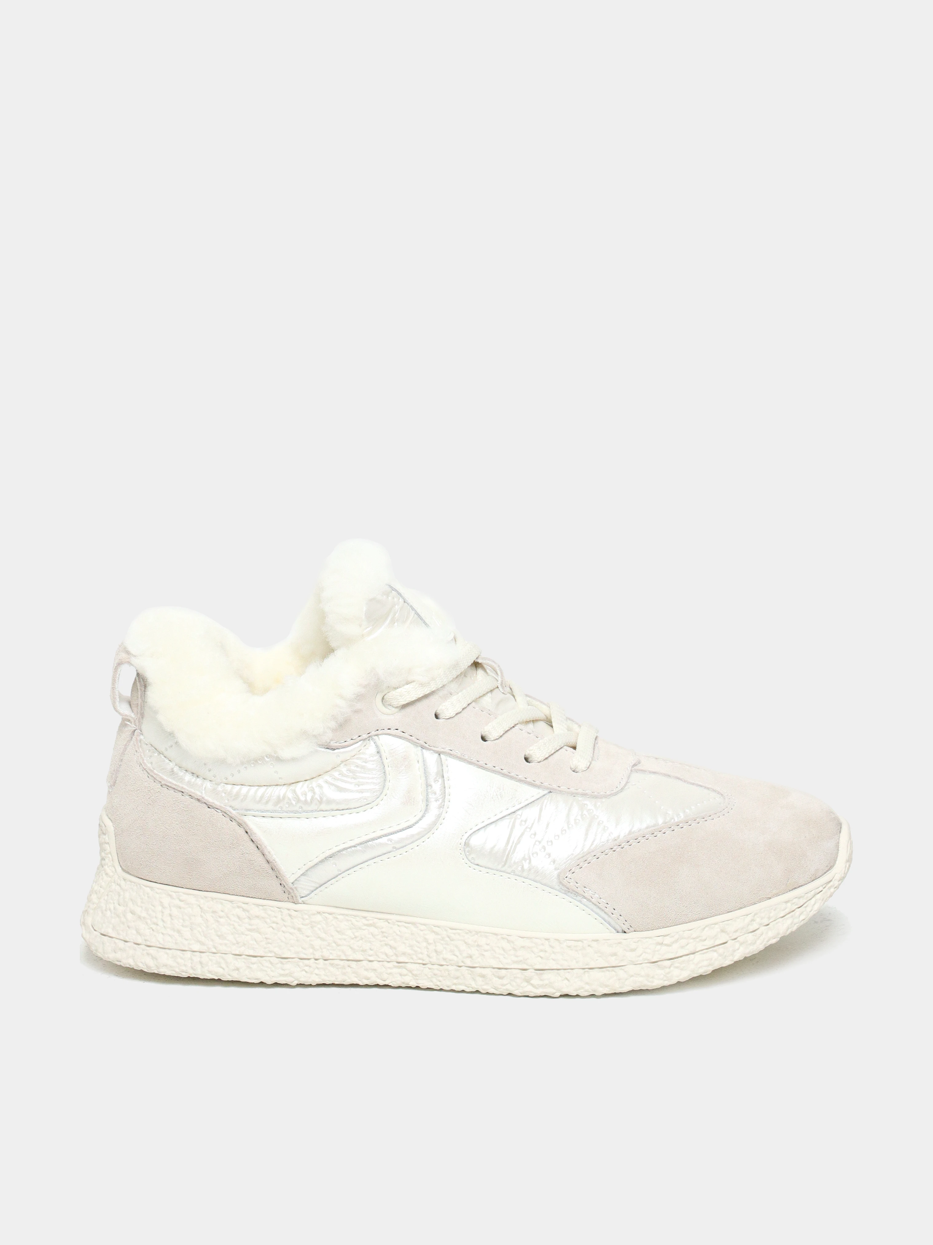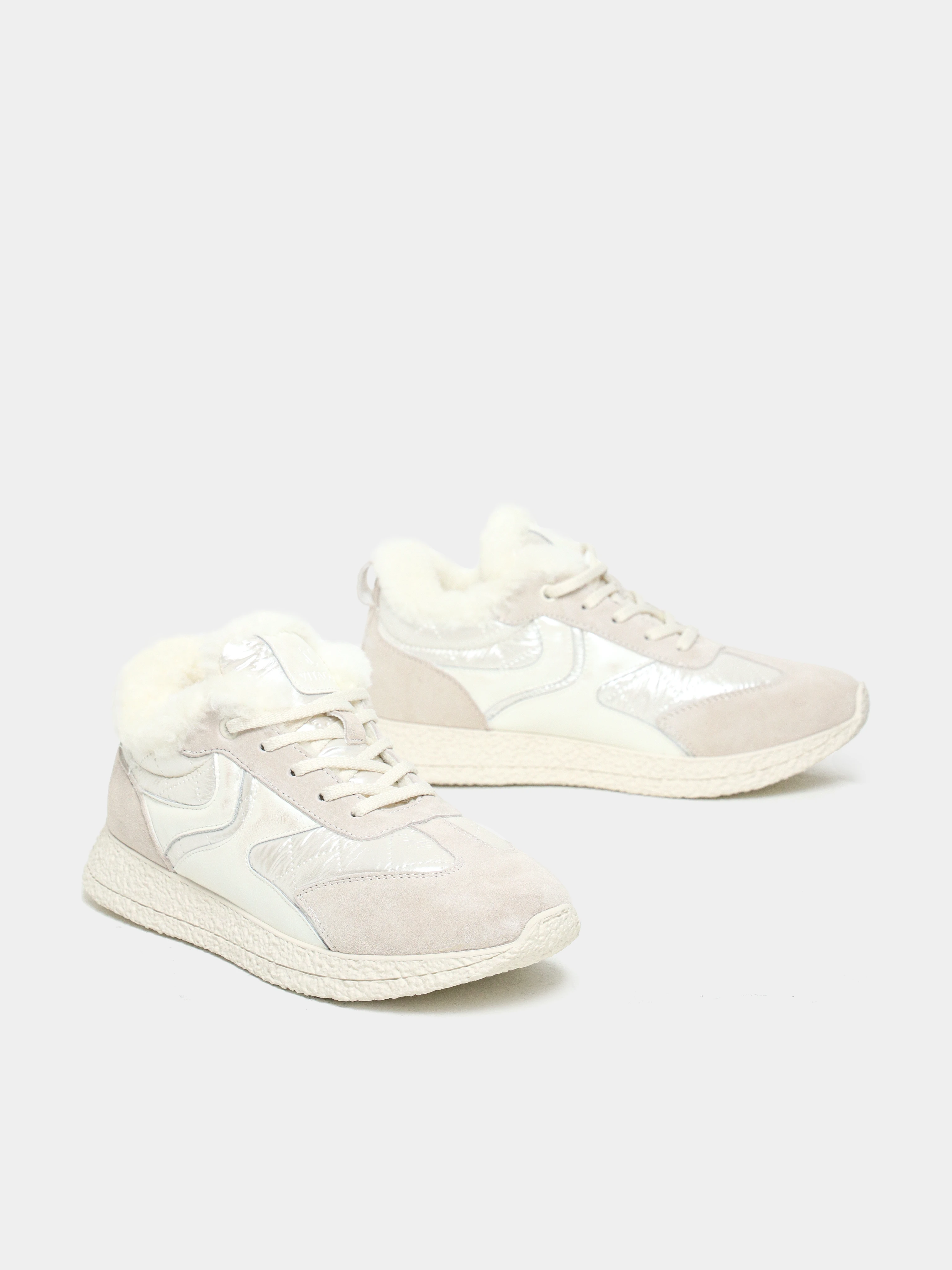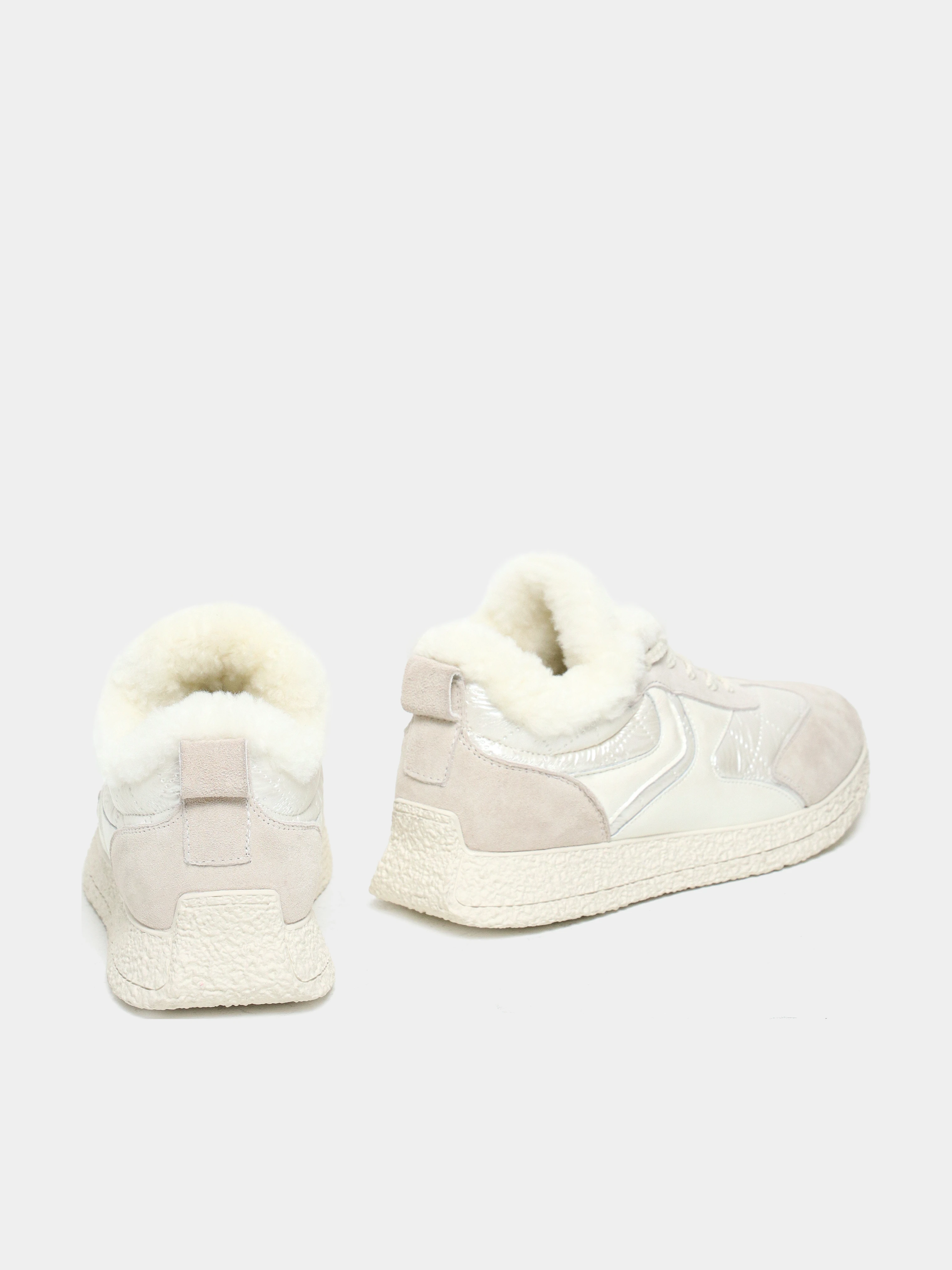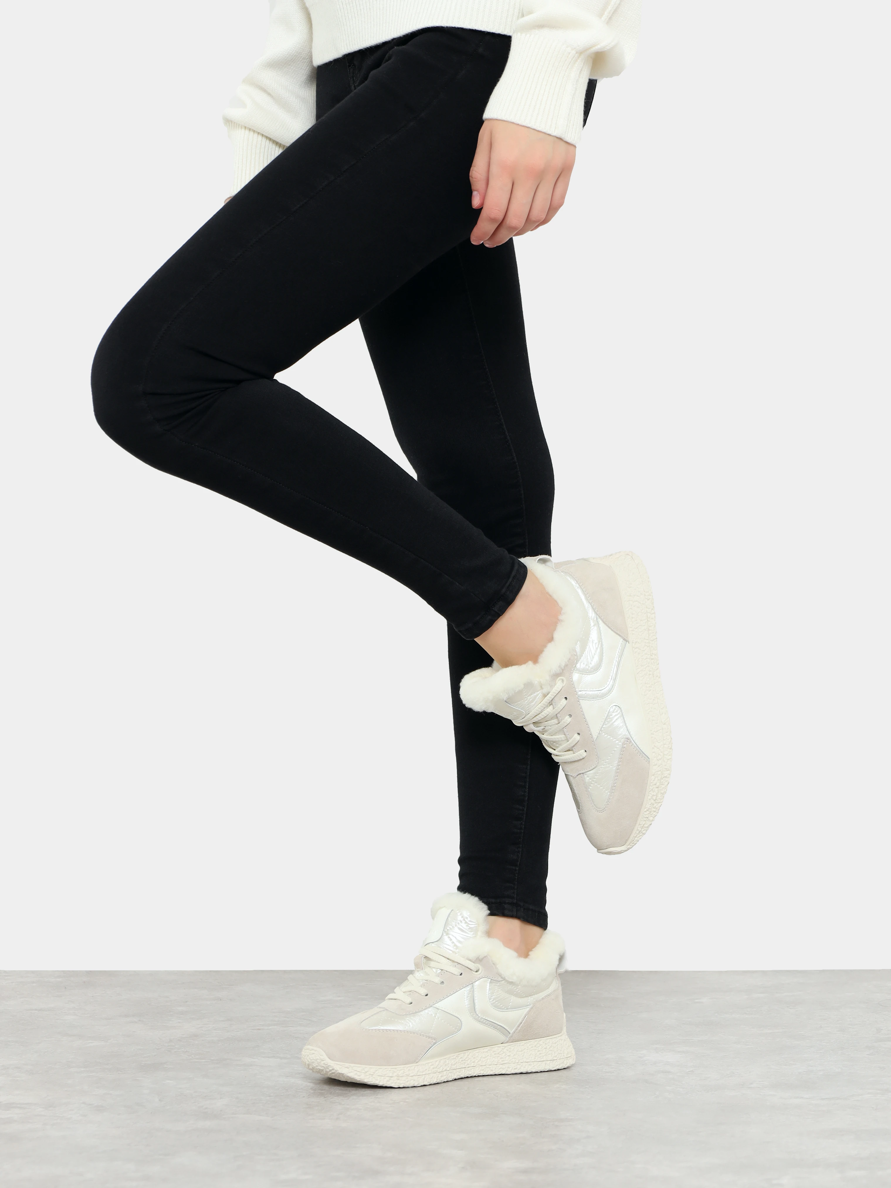 Кроссовки женские зимние, цвет молочный, натуральный нубук/текстиль