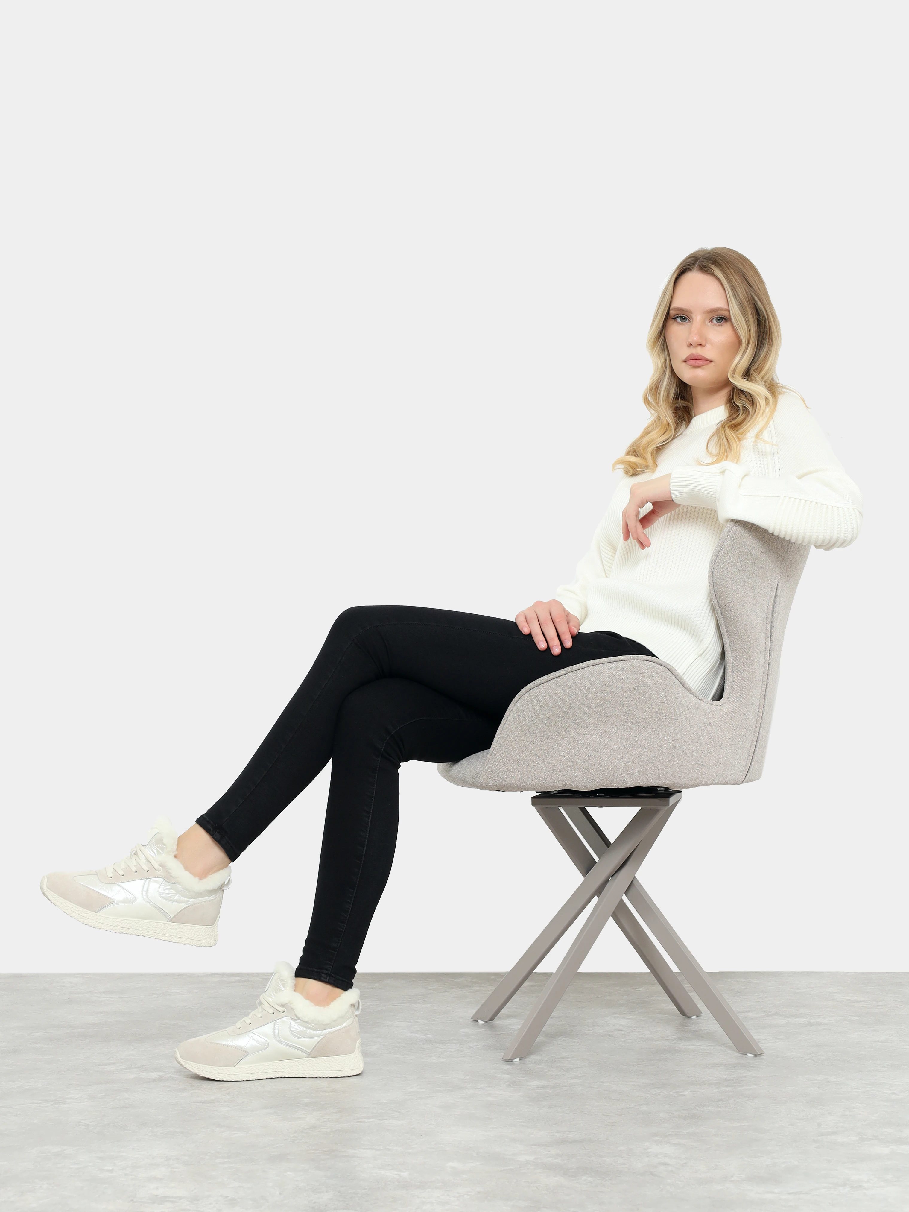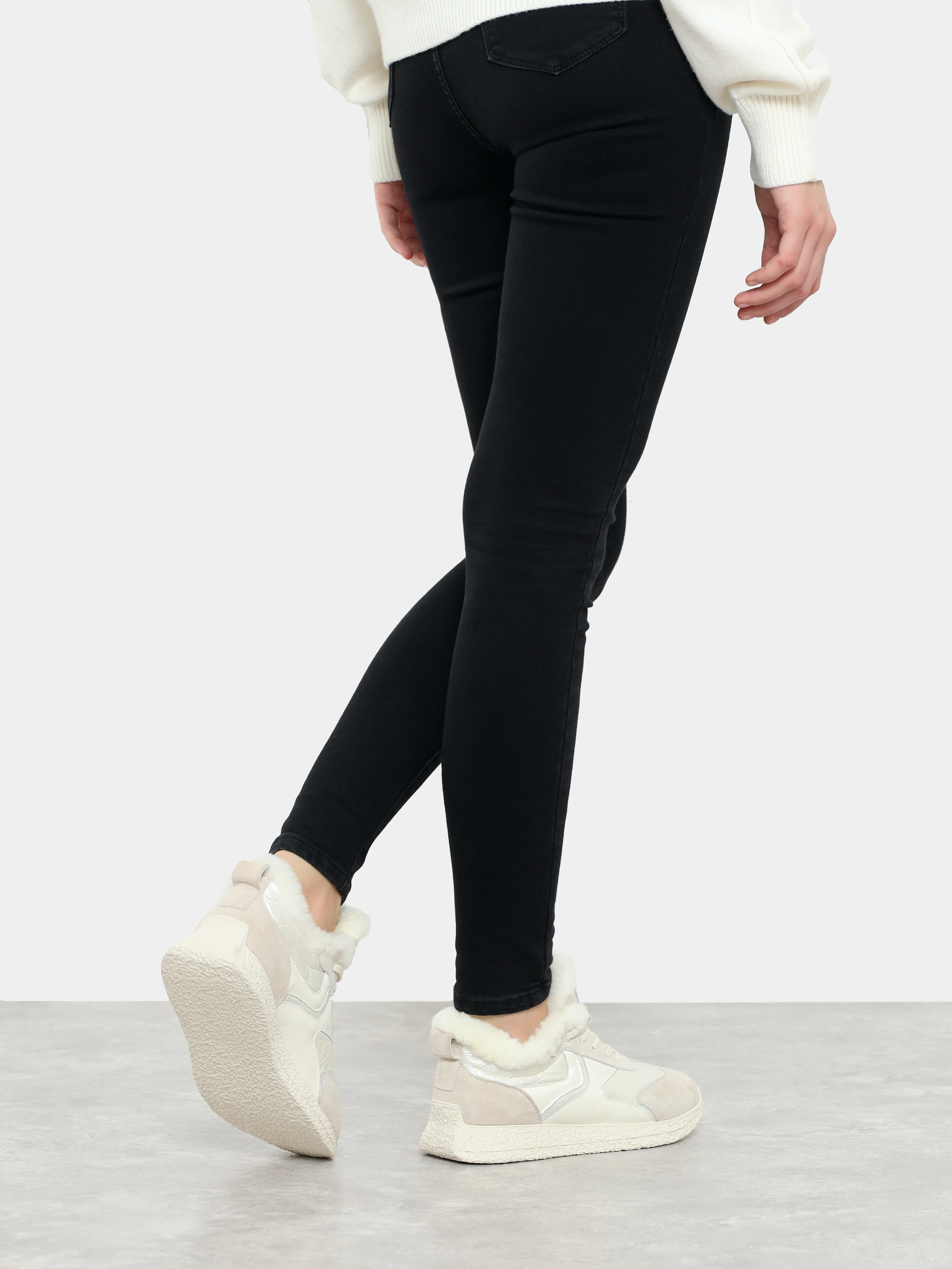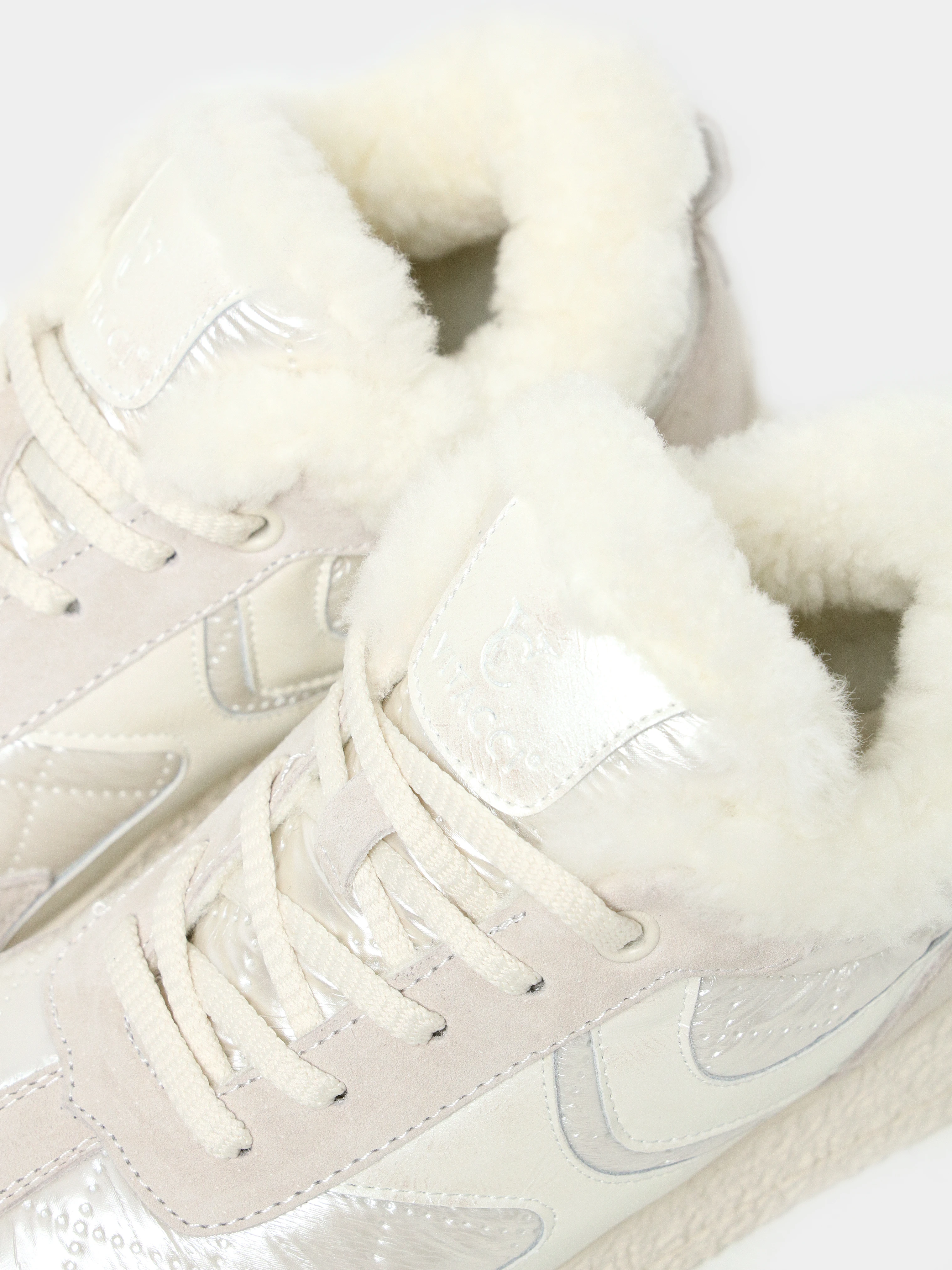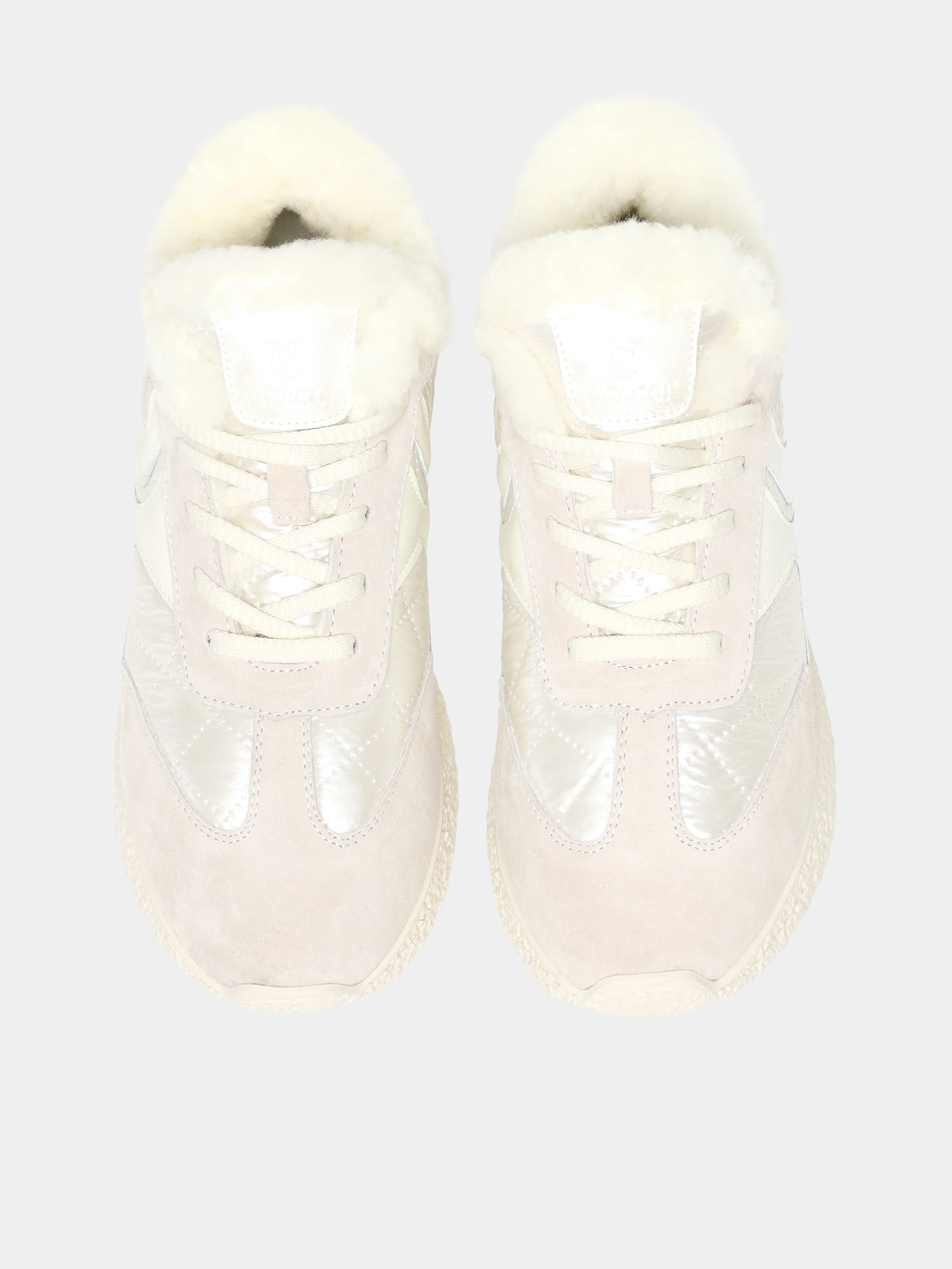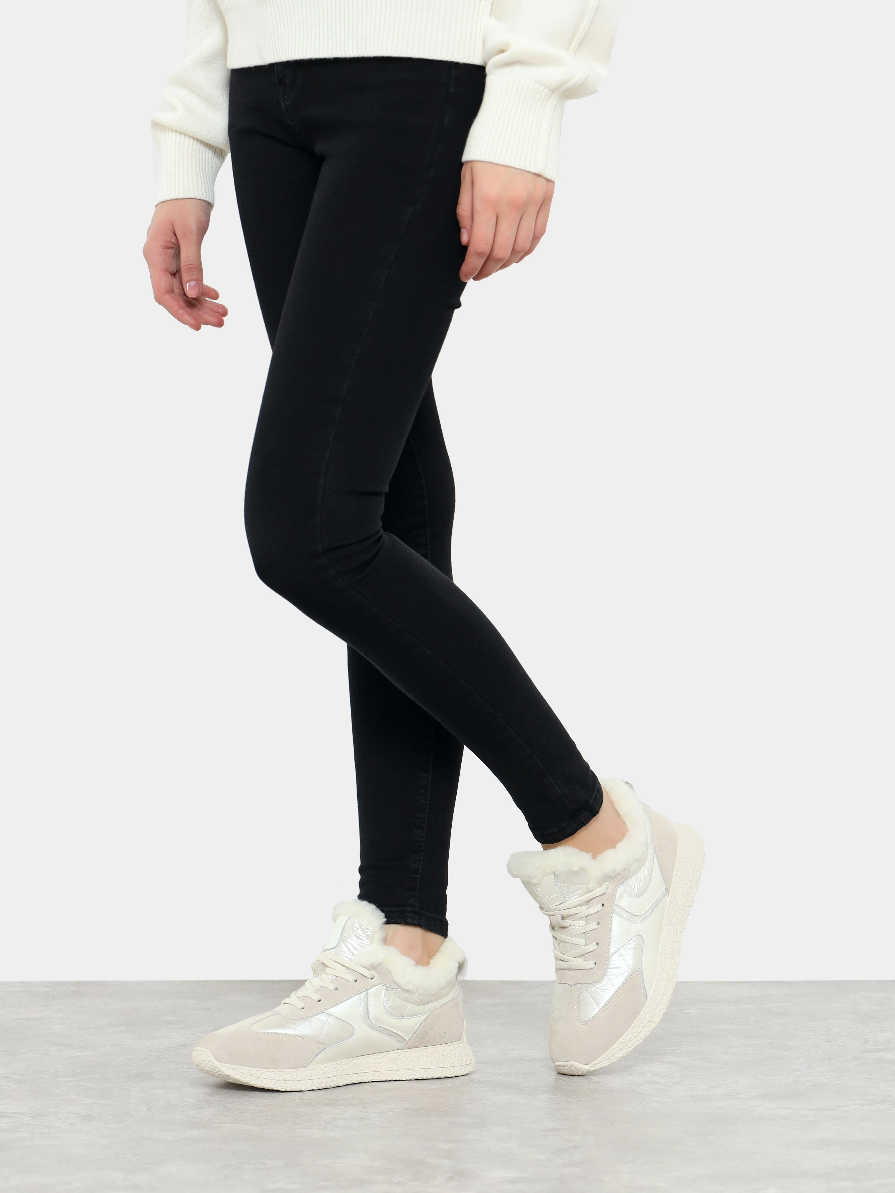 Кроссовки женские зимние, цвет молочный, натуральный нубук/текстиль