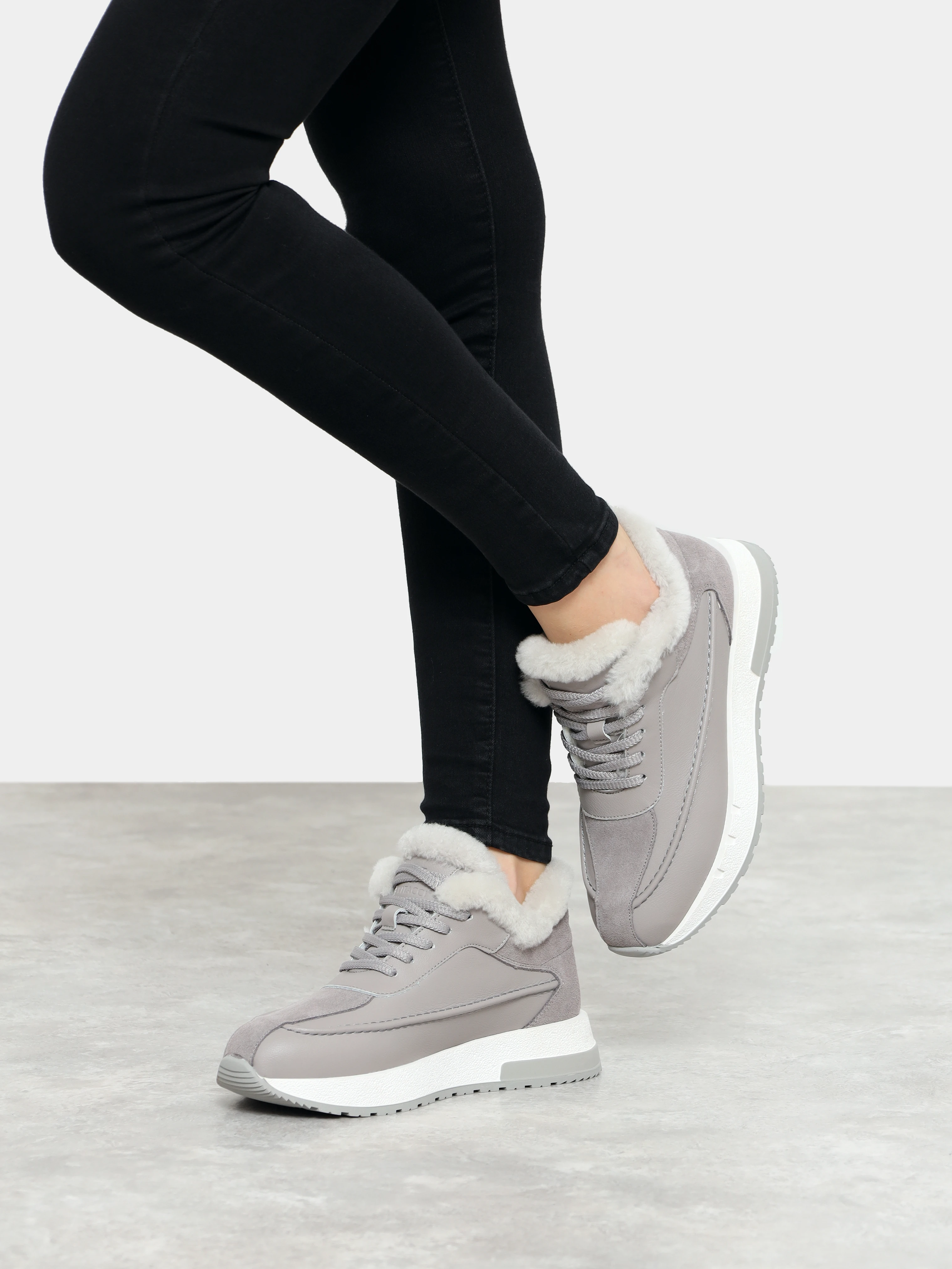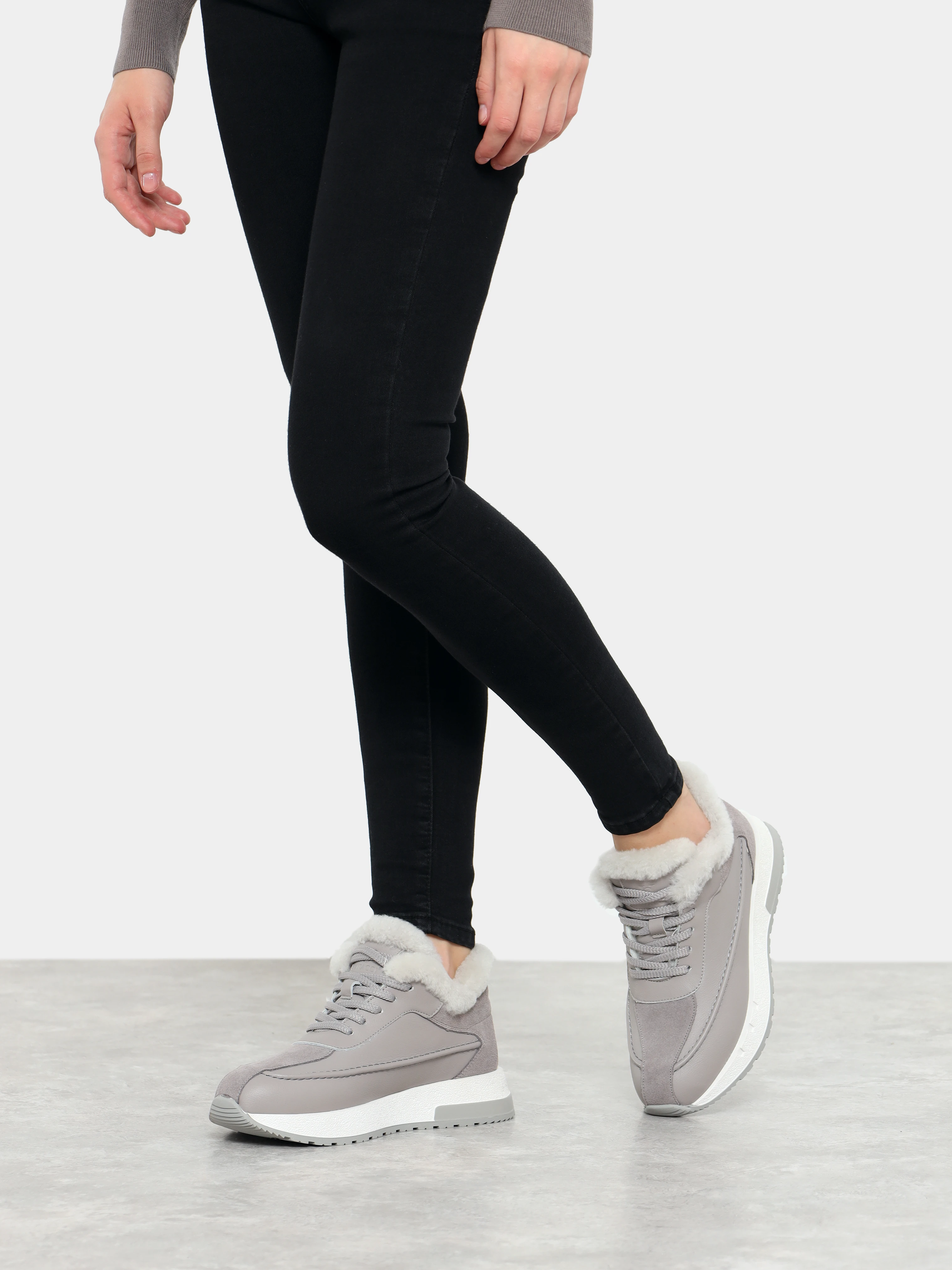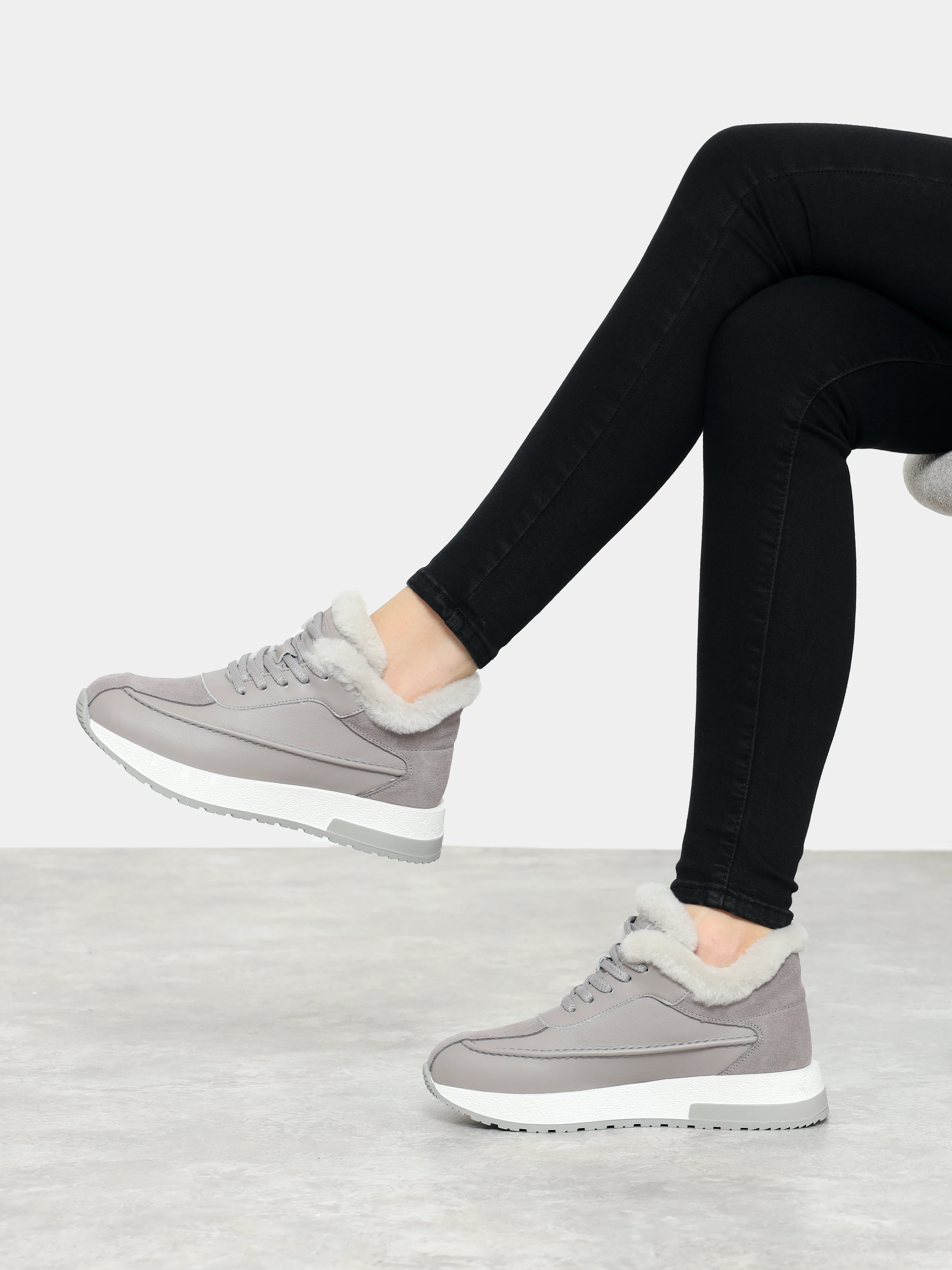 Кроссовки женские зимние, цвет серый, натуральная кожа и полимерные материалы/натуральный спилок