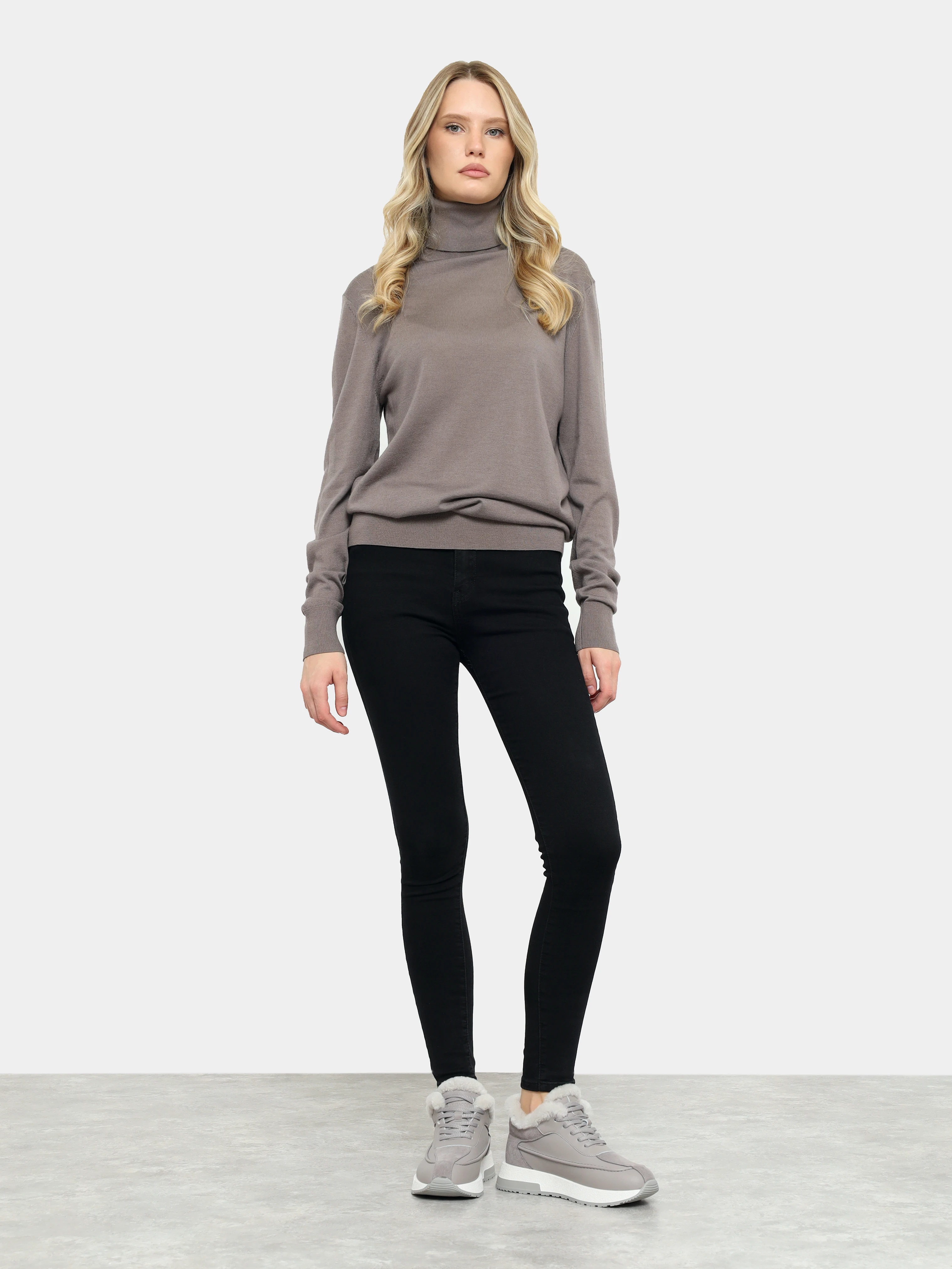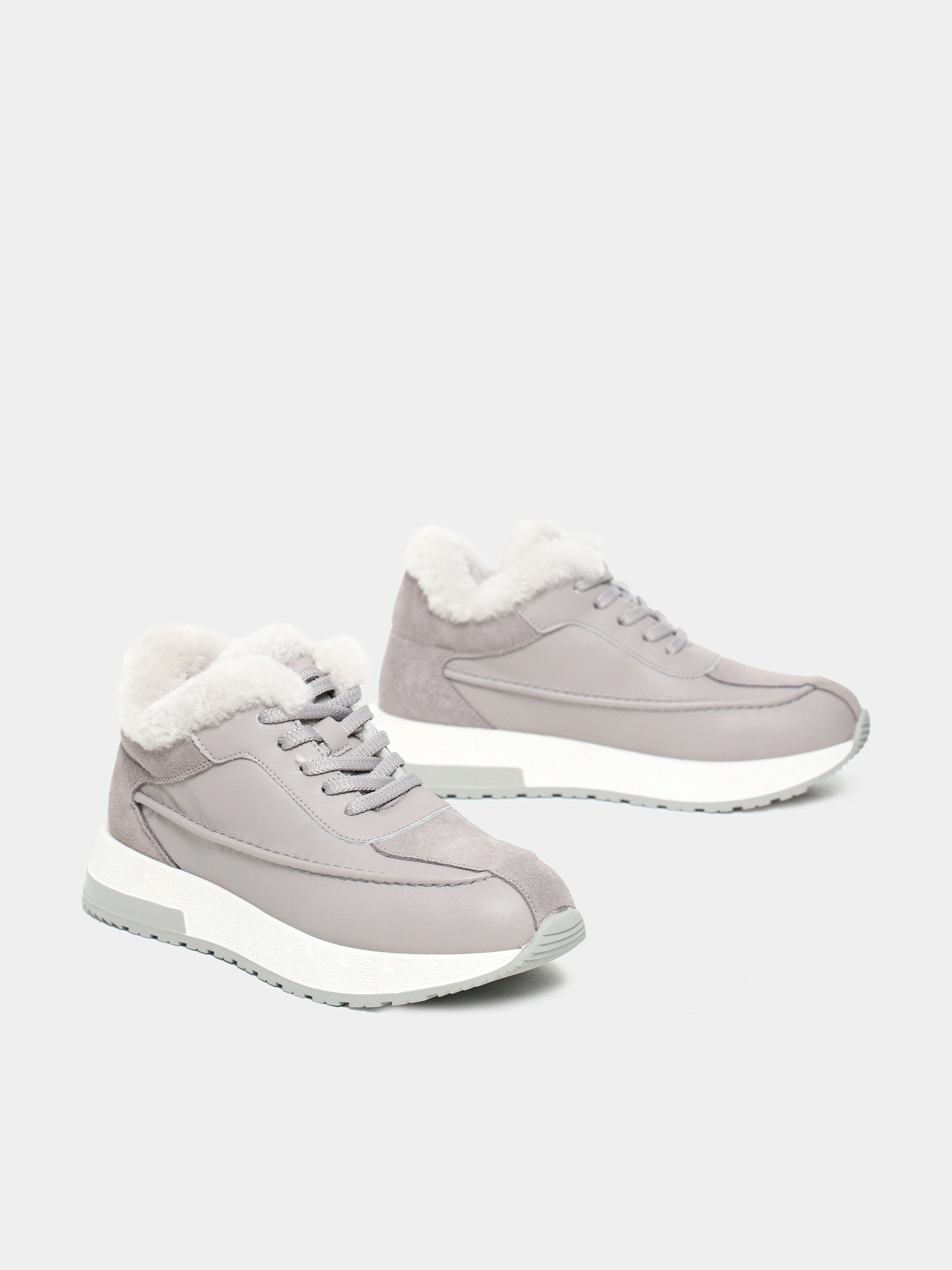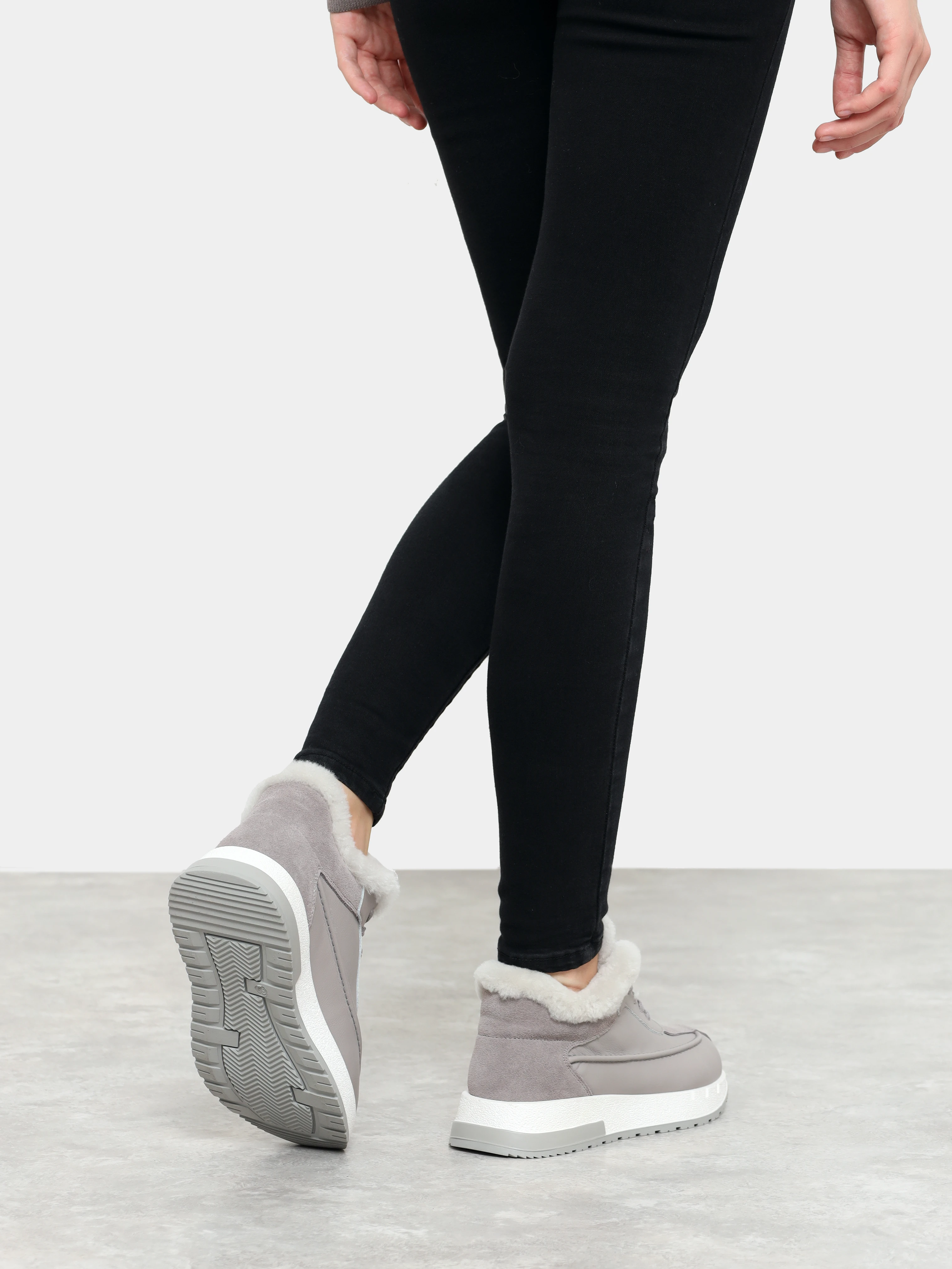 Кроссовки женские зимние, цвет серый, натуральная кожа и полимерные материалы/натуральный спилок