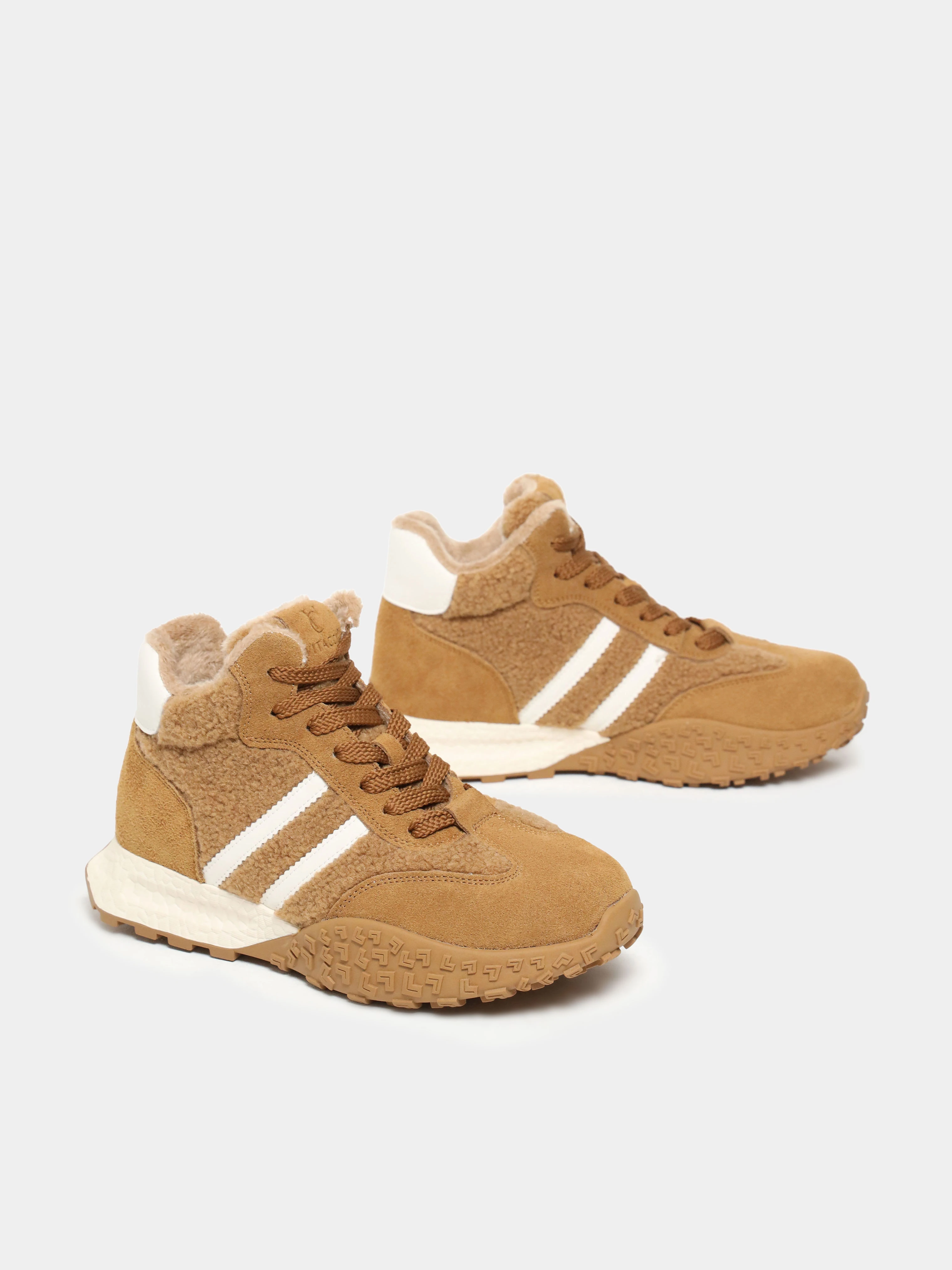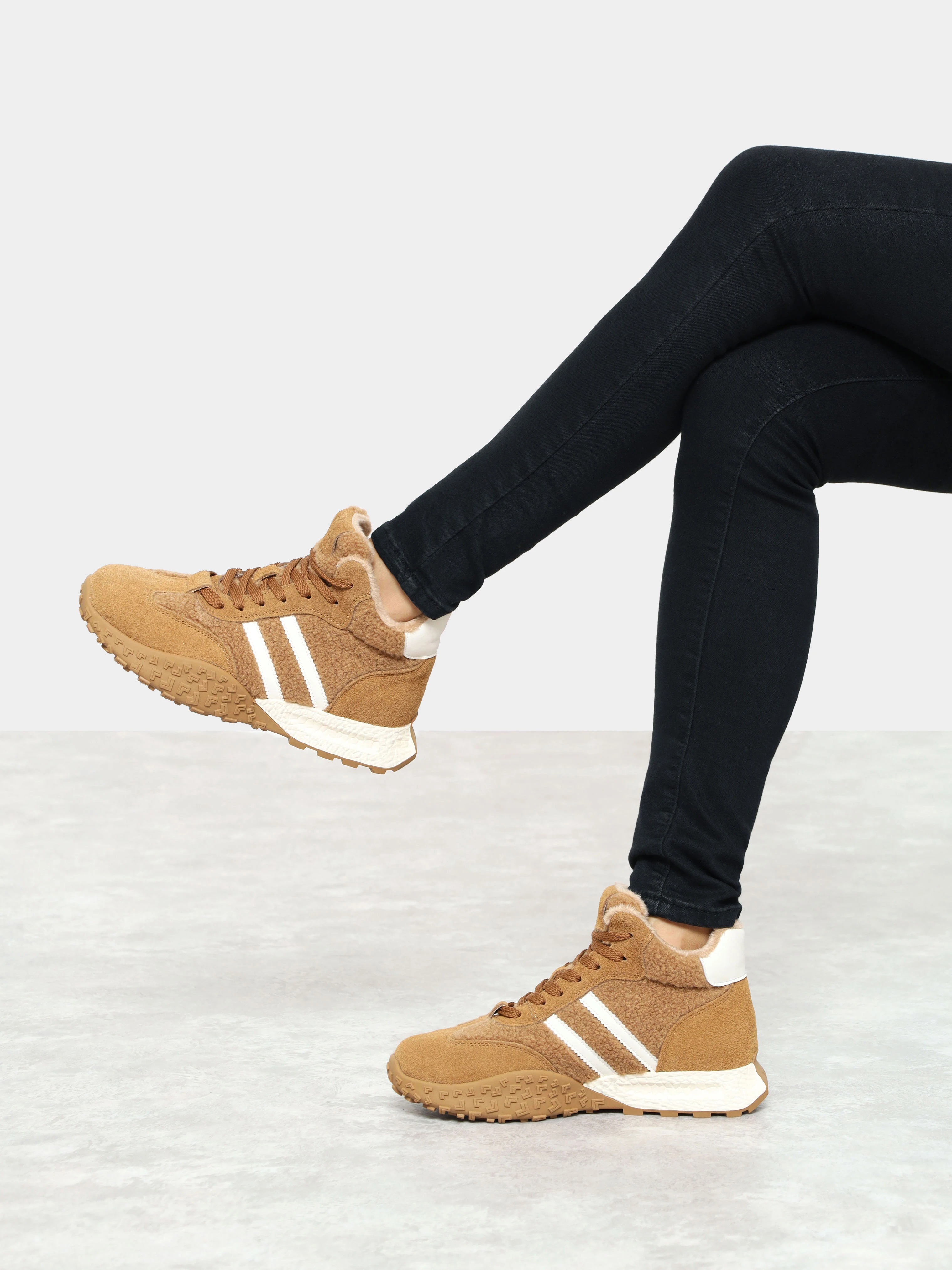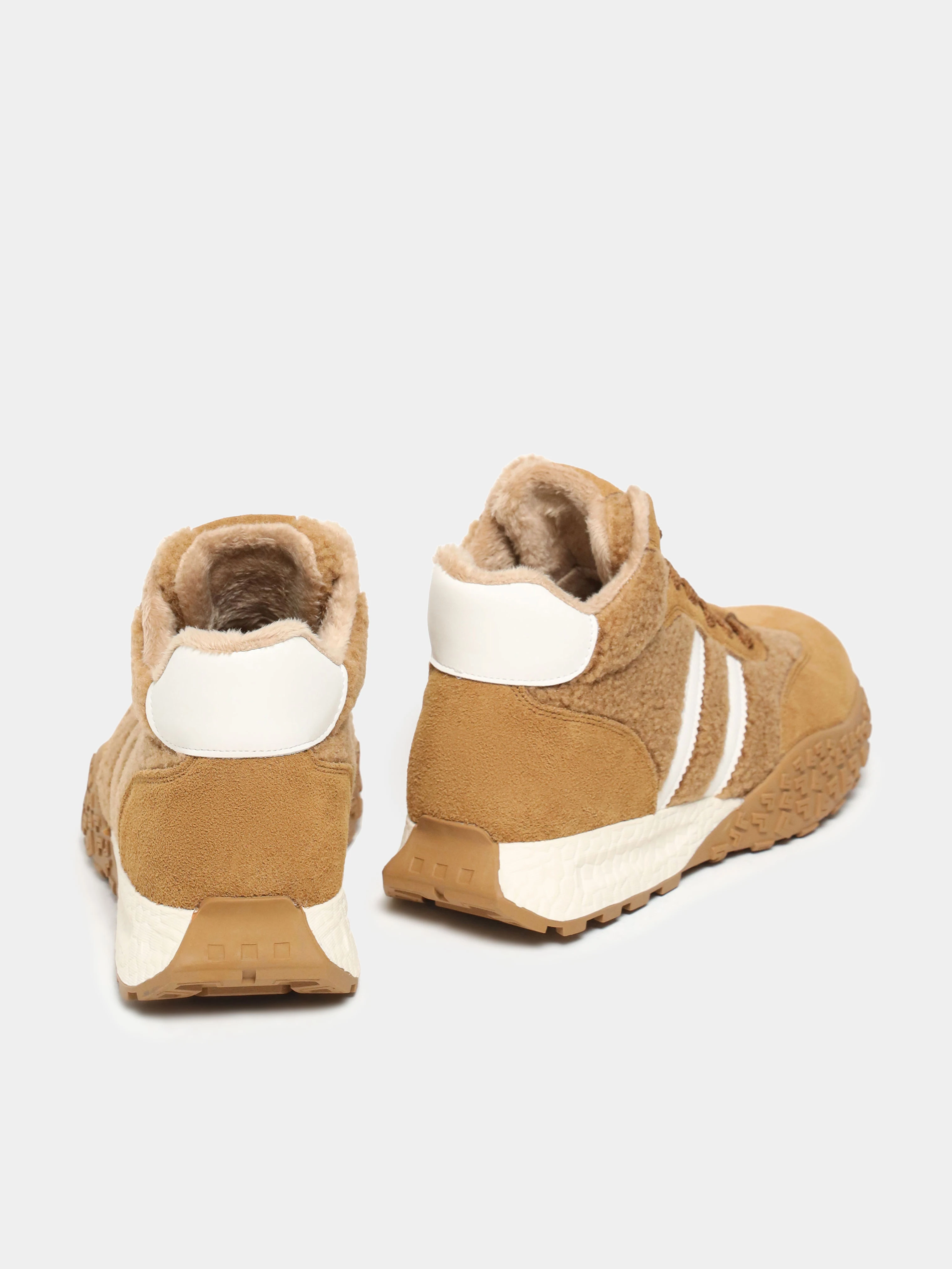 Кроссовки женские демисезонные, цвет рыжий, натуральный спилок/искусственный мех