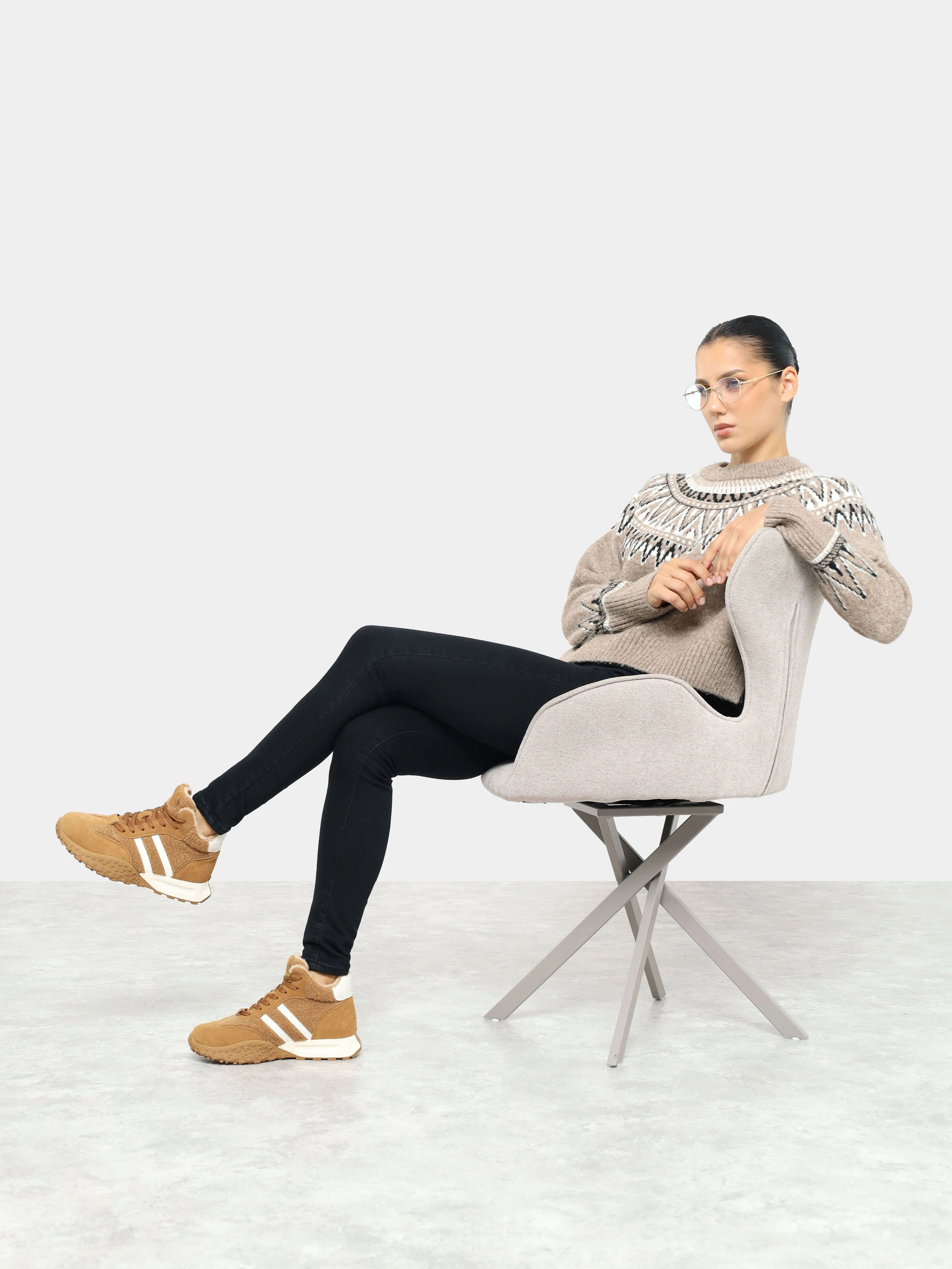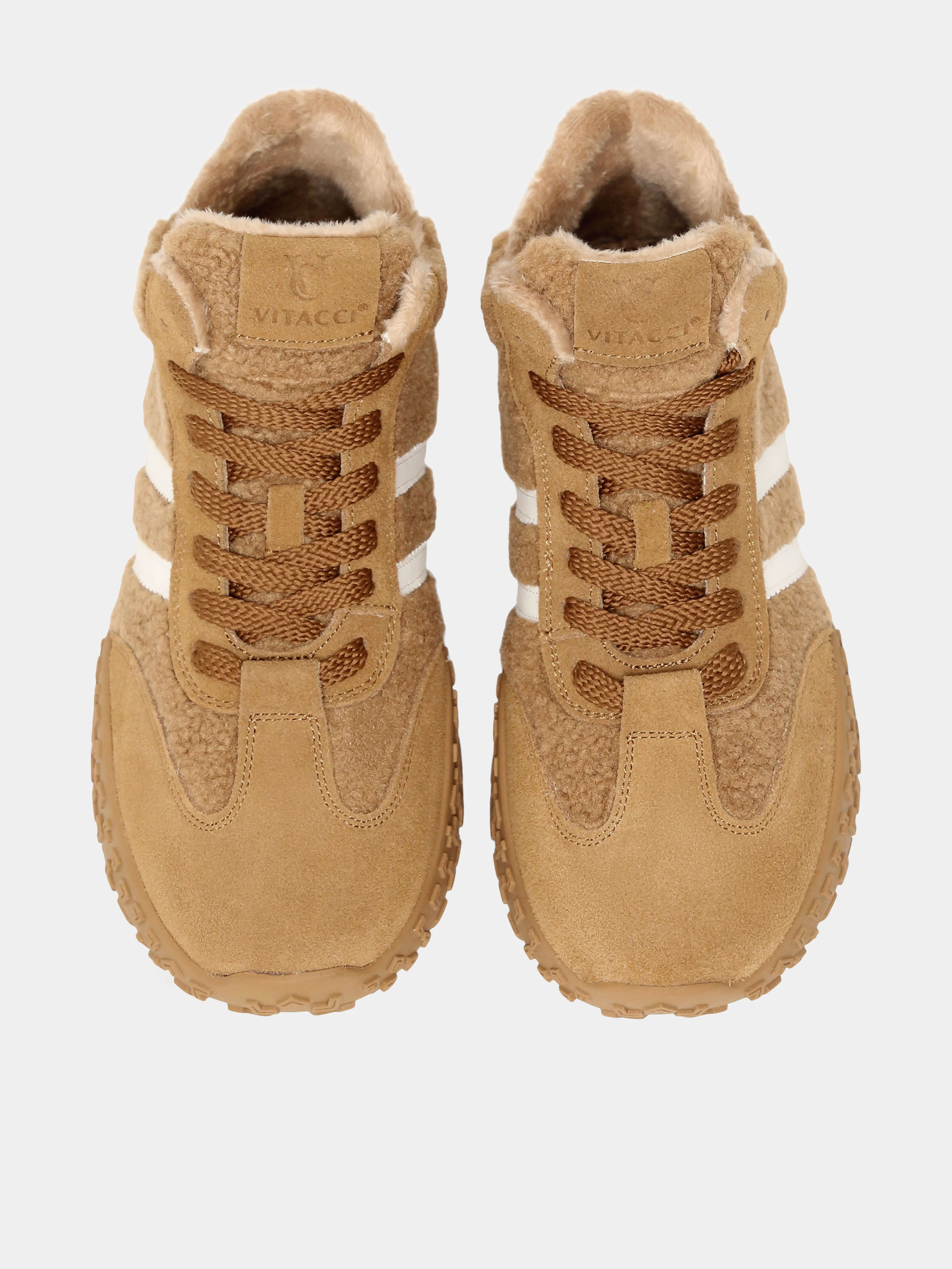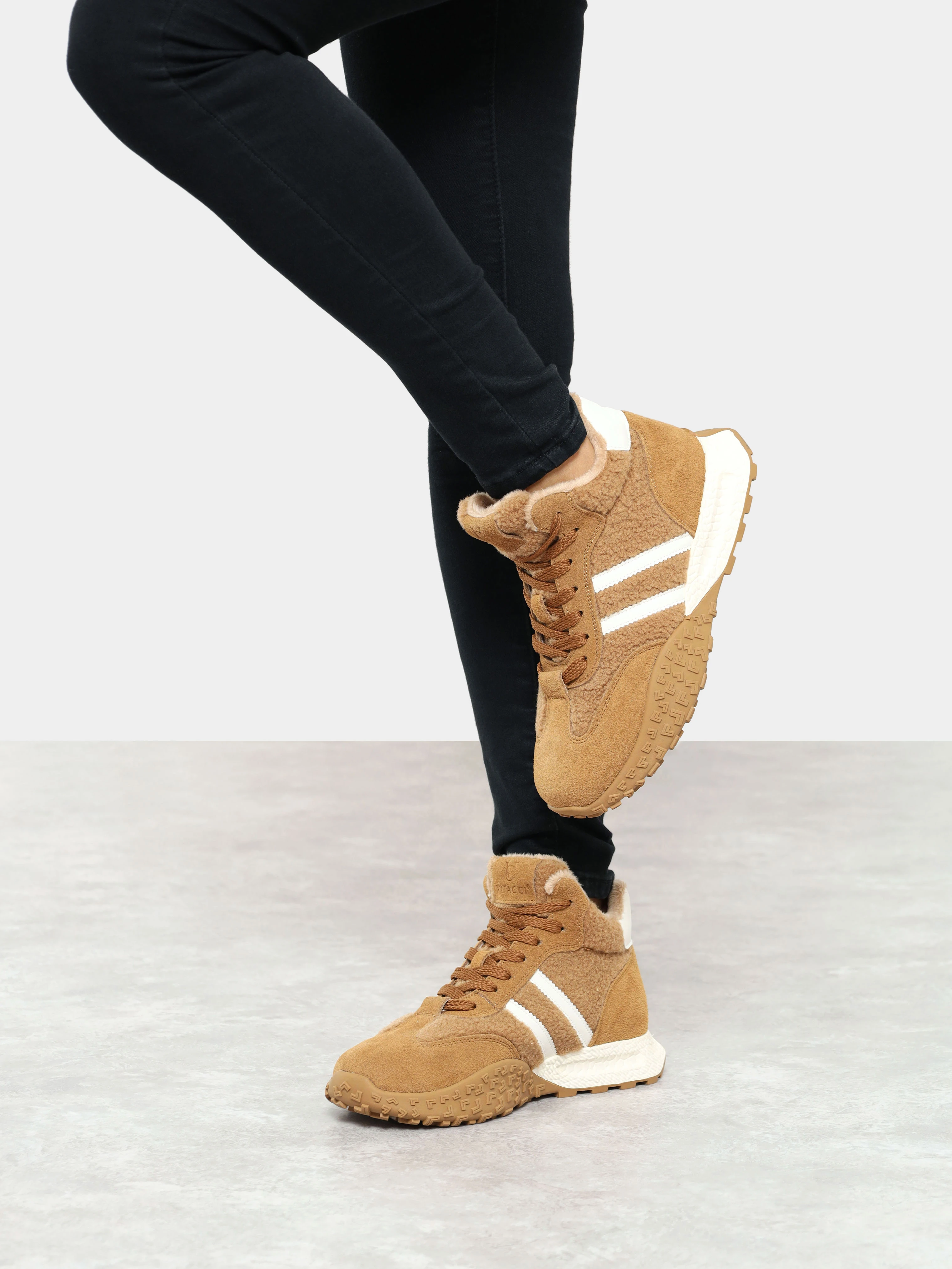 Кроссовки женские демисезонные, цвет рыжий, натуральный спилок/искусственный мех