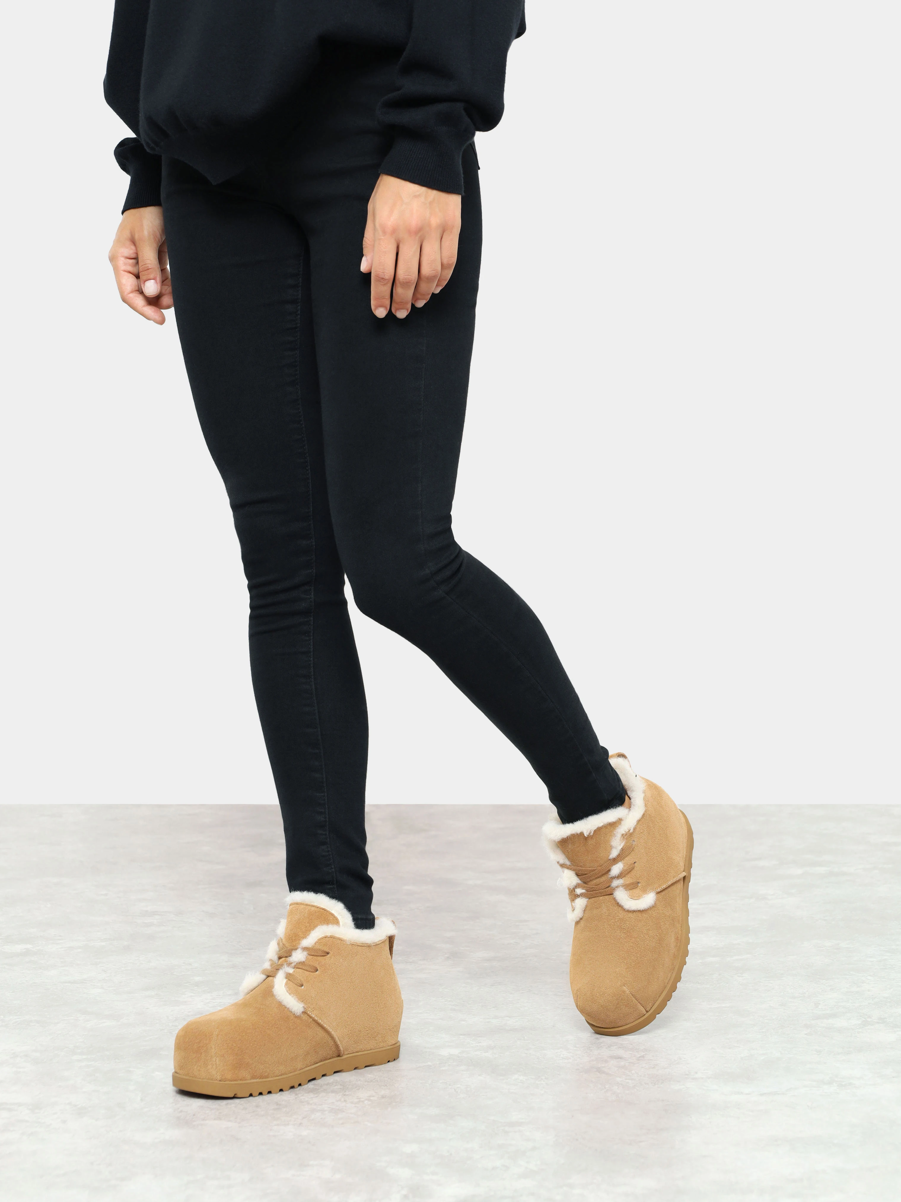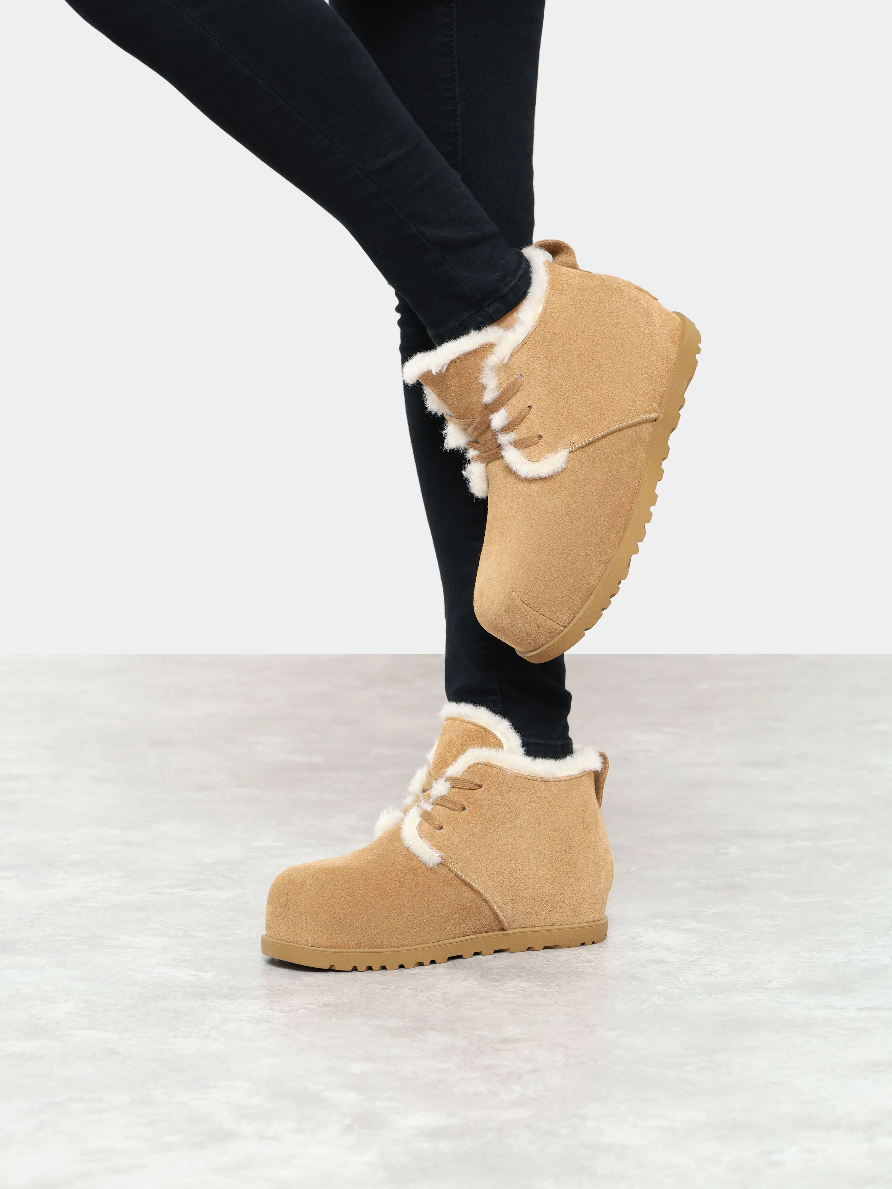 Ботинки женские зимние, цвет рыжий, натуральный спилок