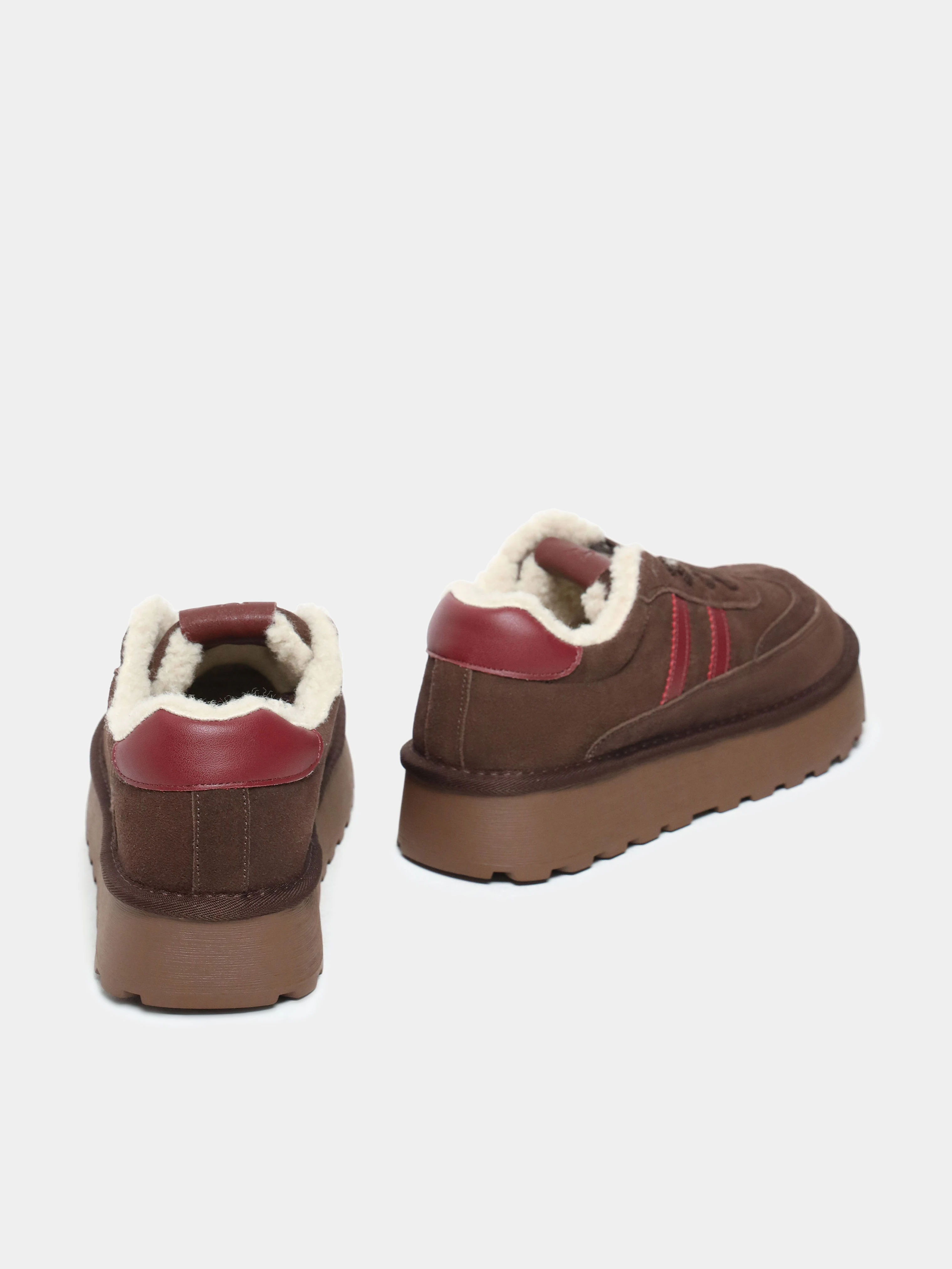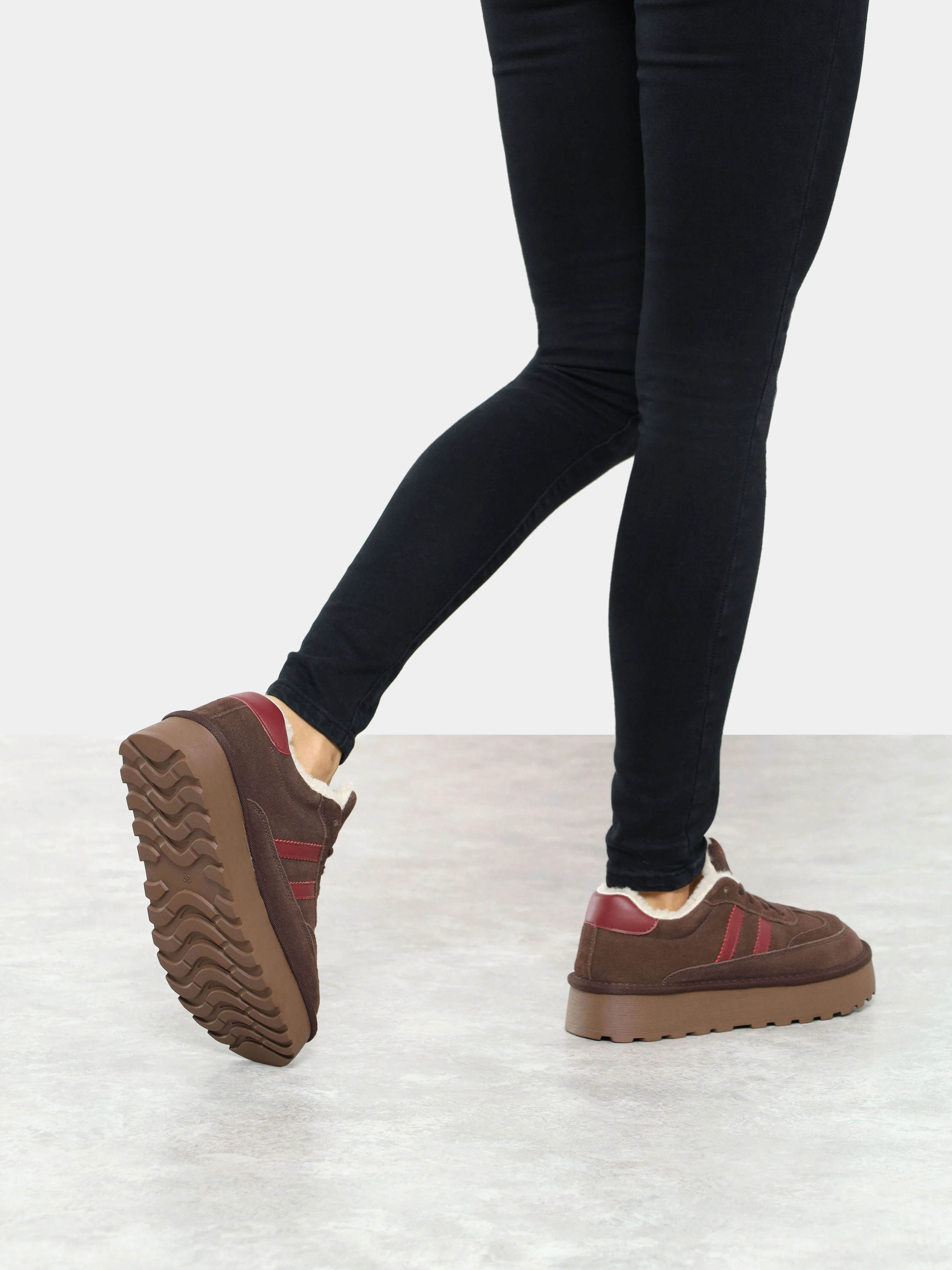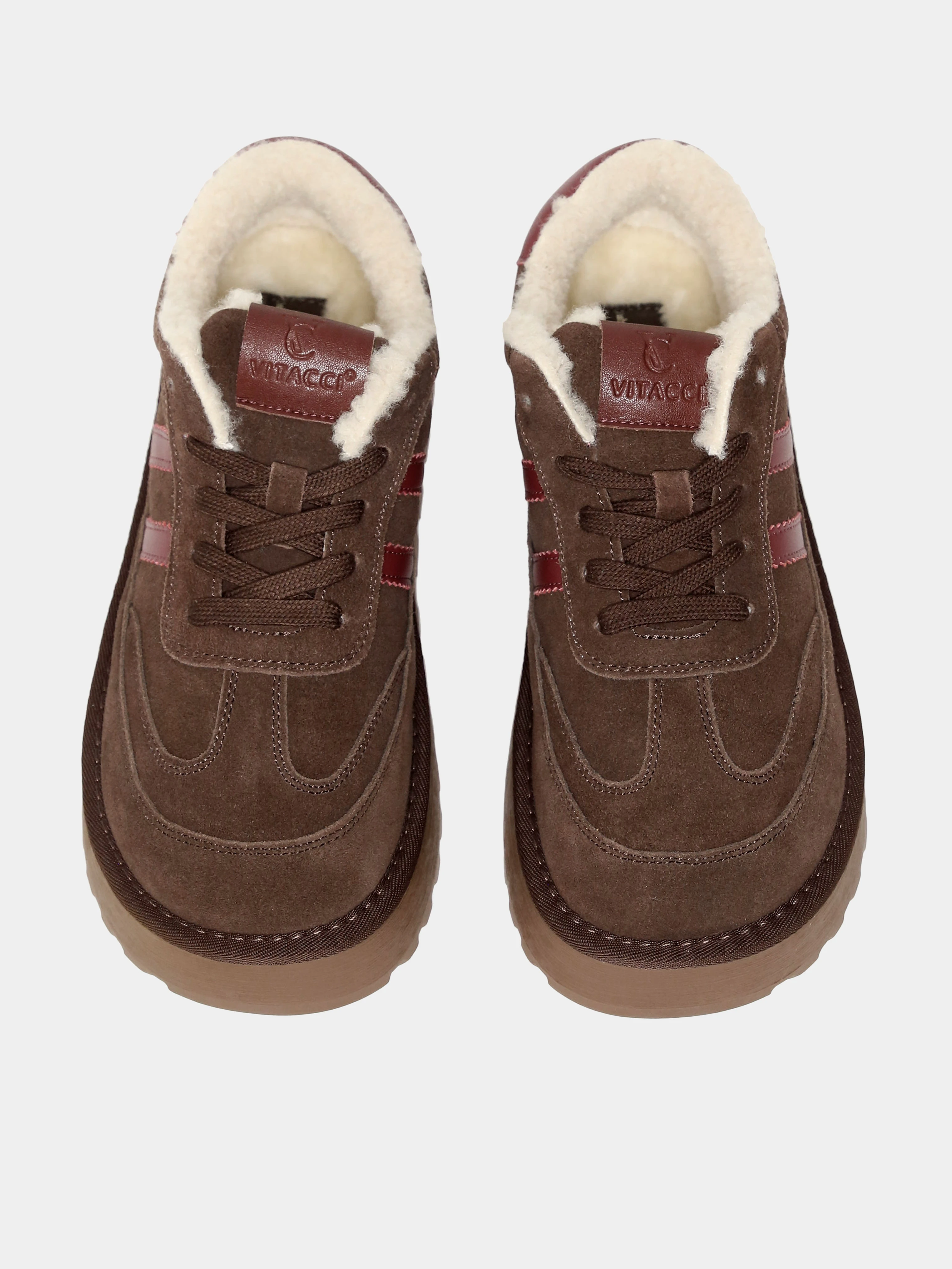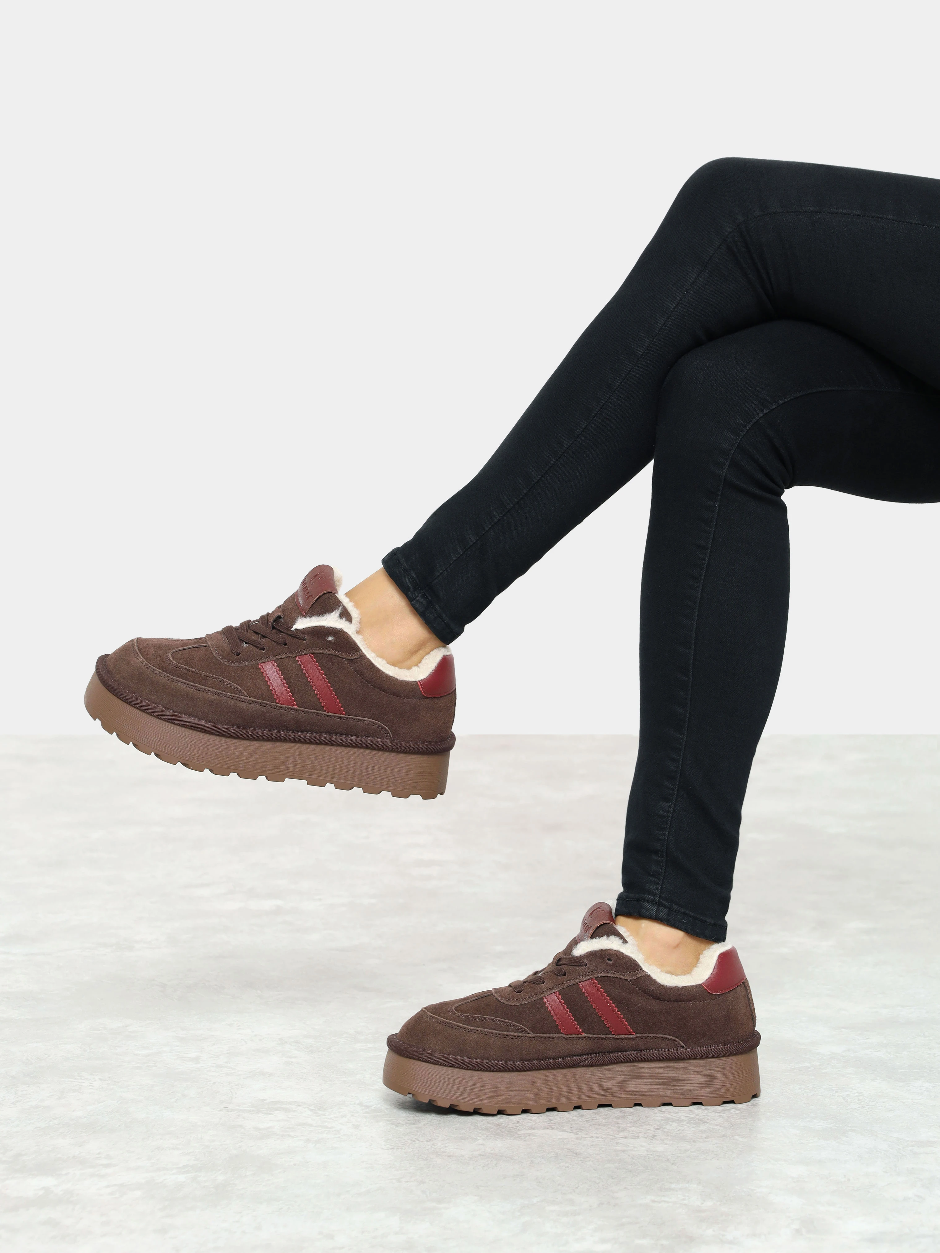Кроссовки женские зимние, цвет коричневый, натуральный спилок