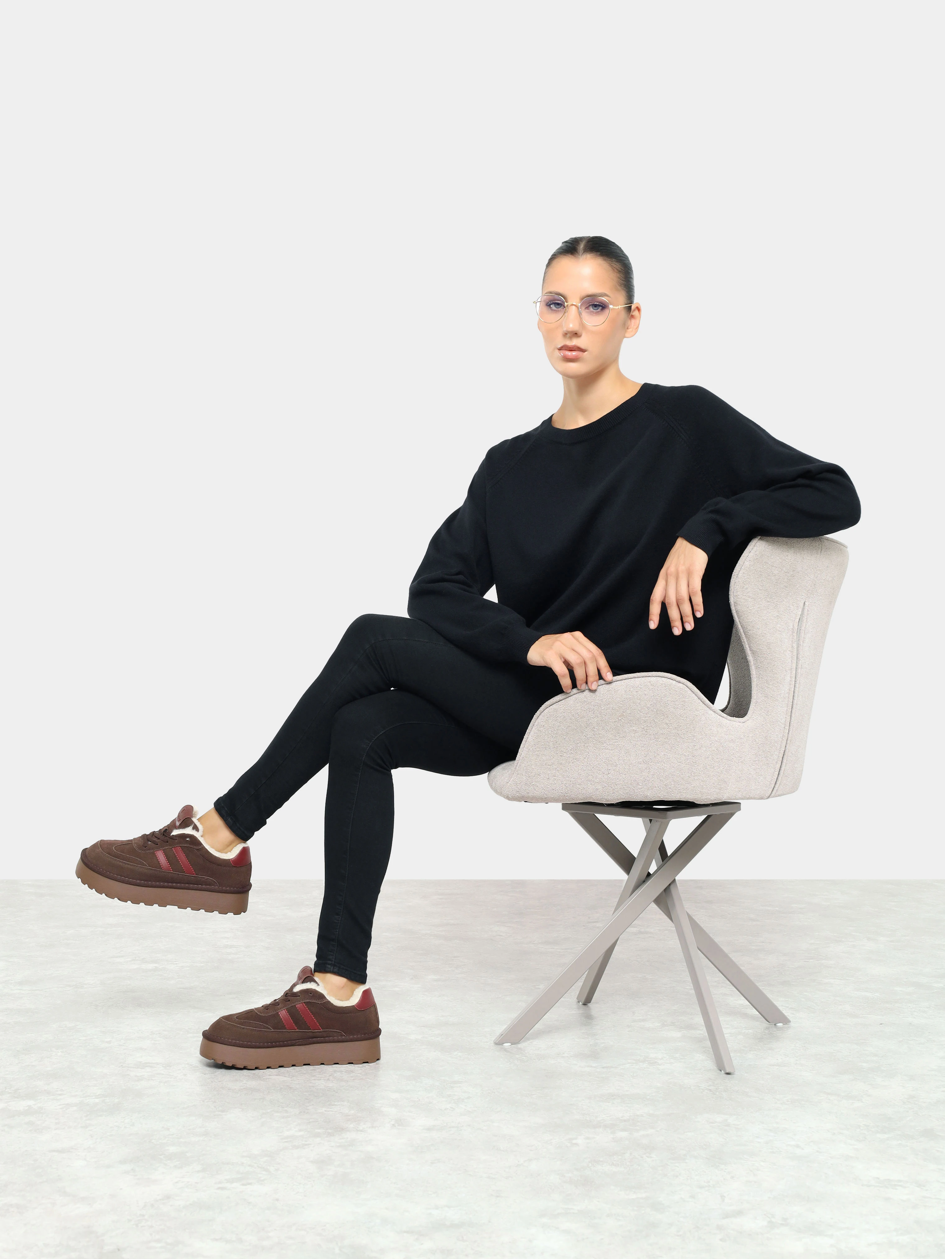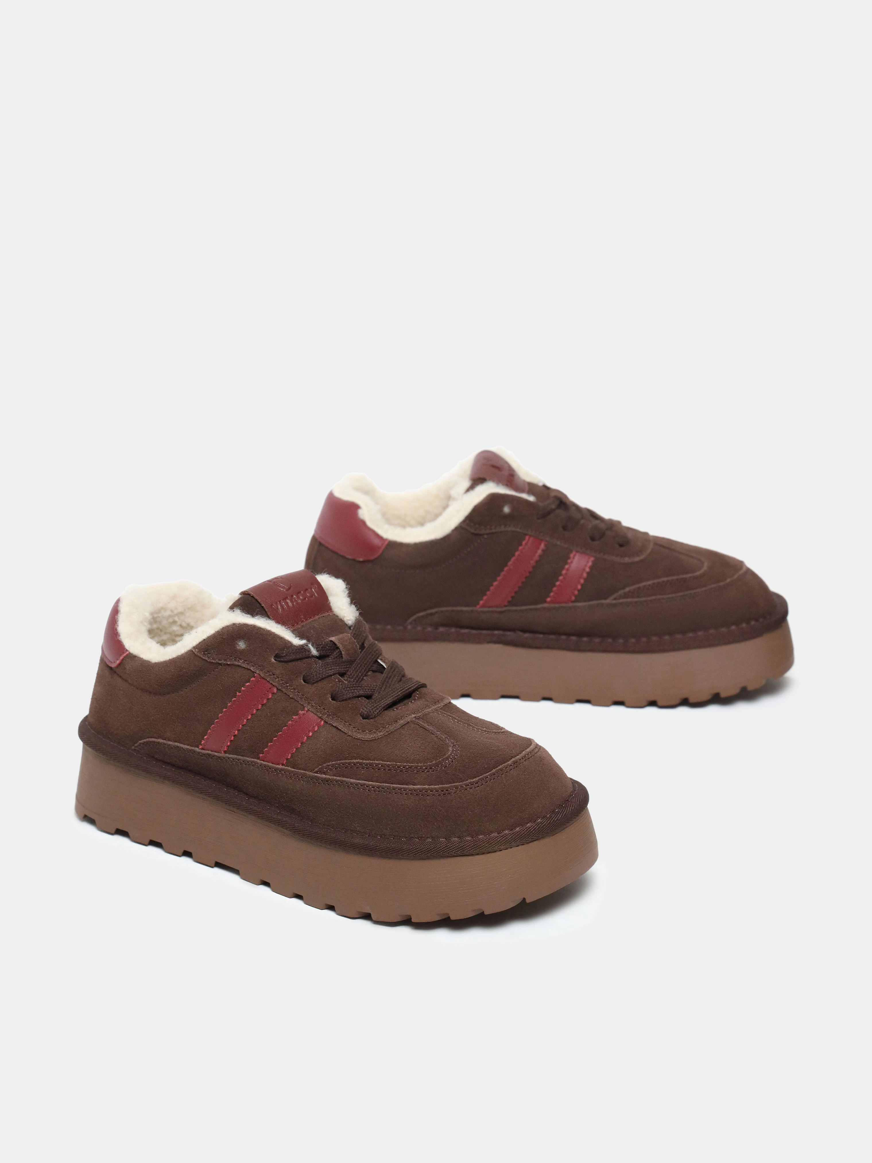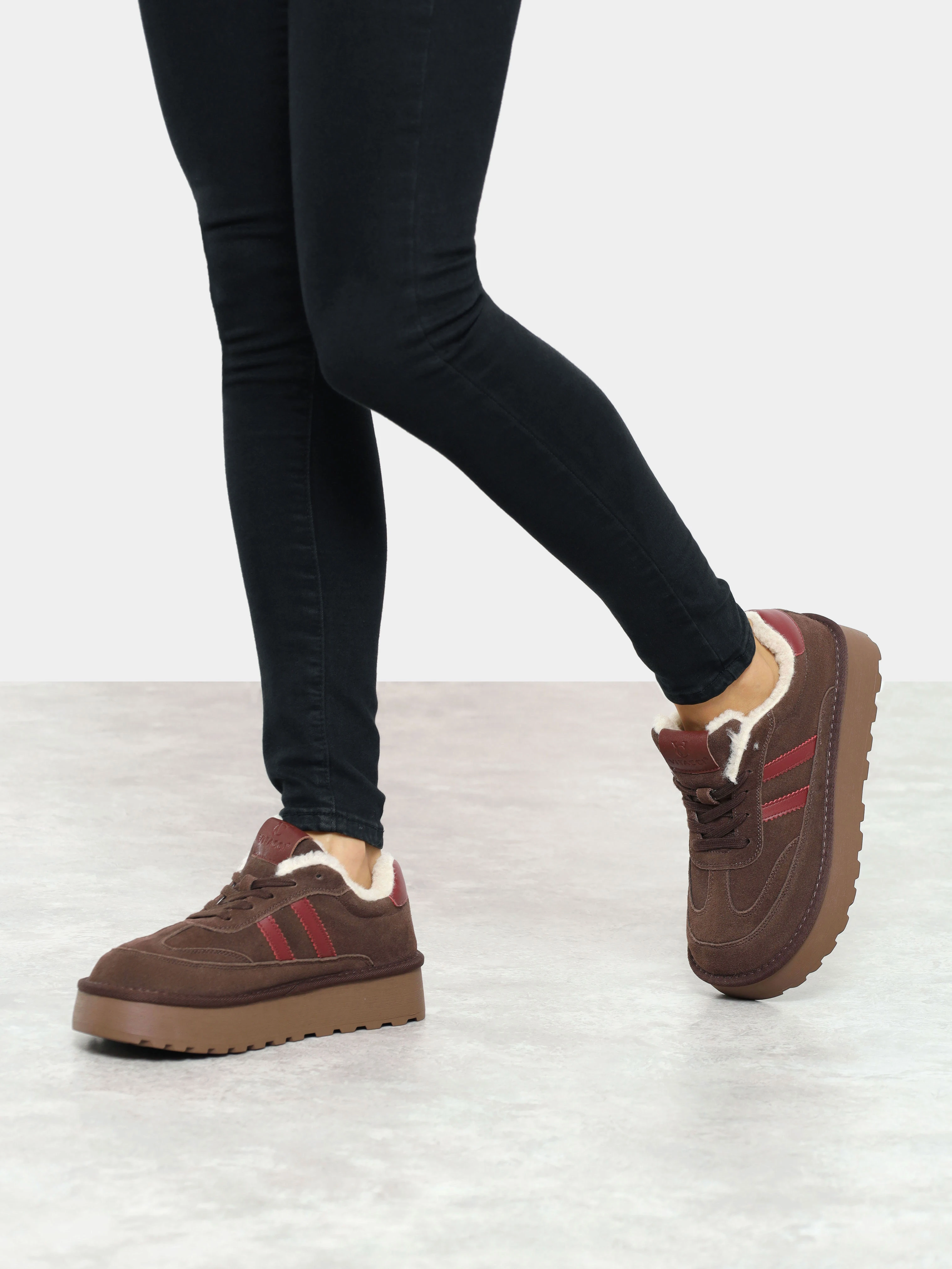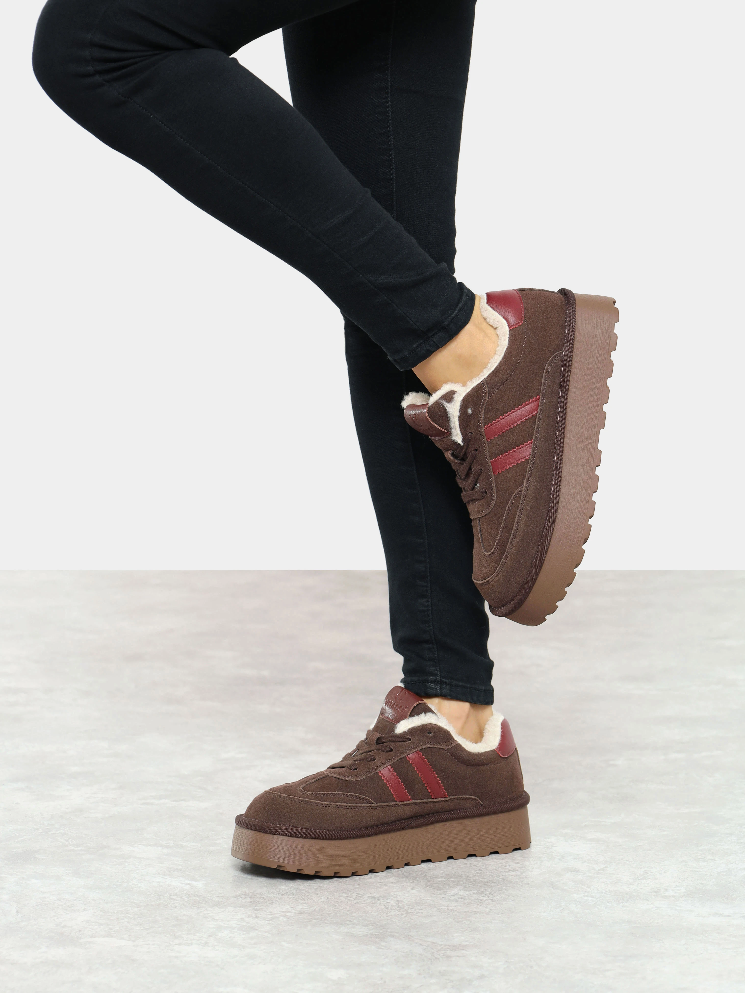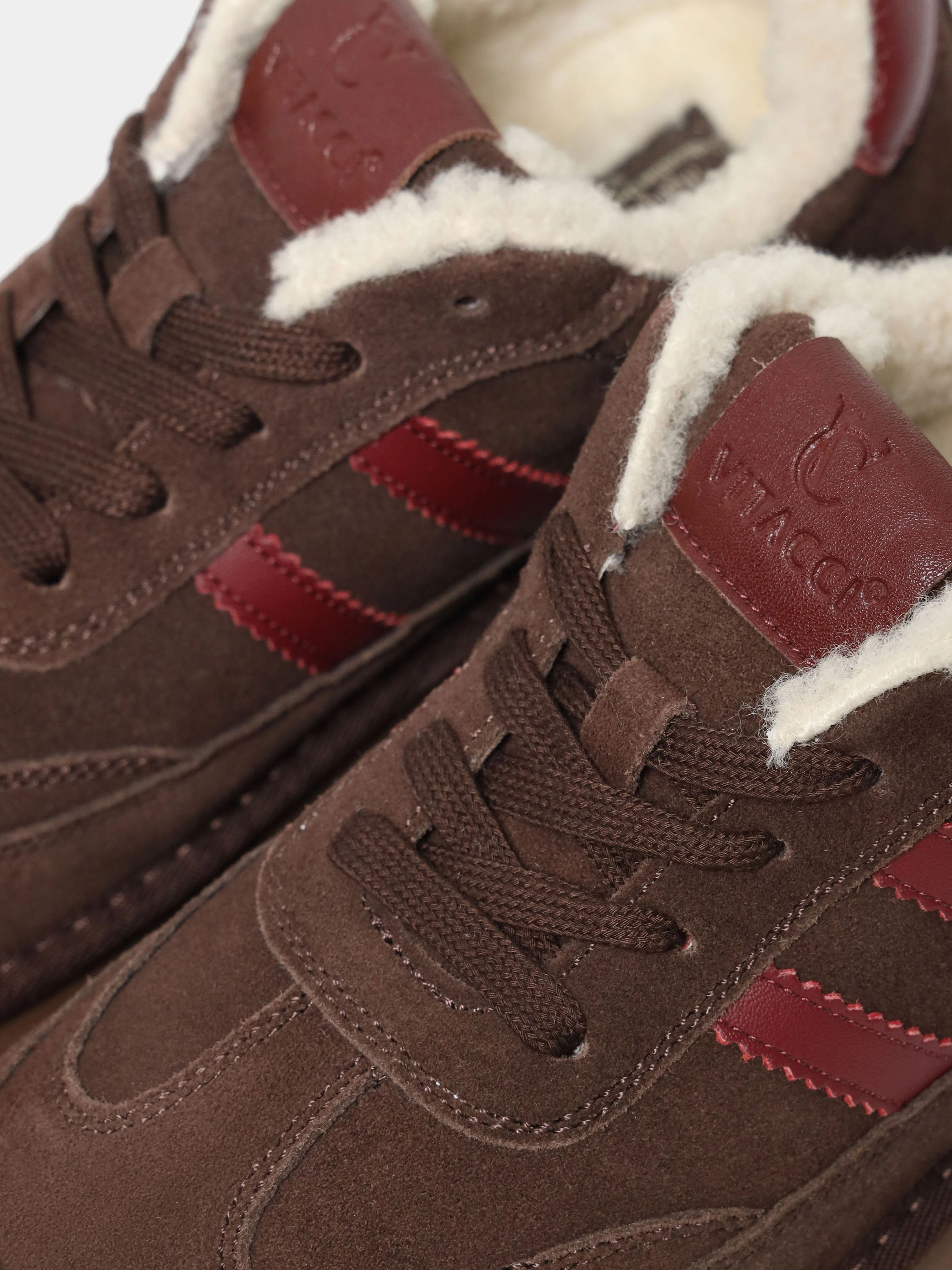 Кроссовки женские зимние, цвет коричневый, натуральный спилок