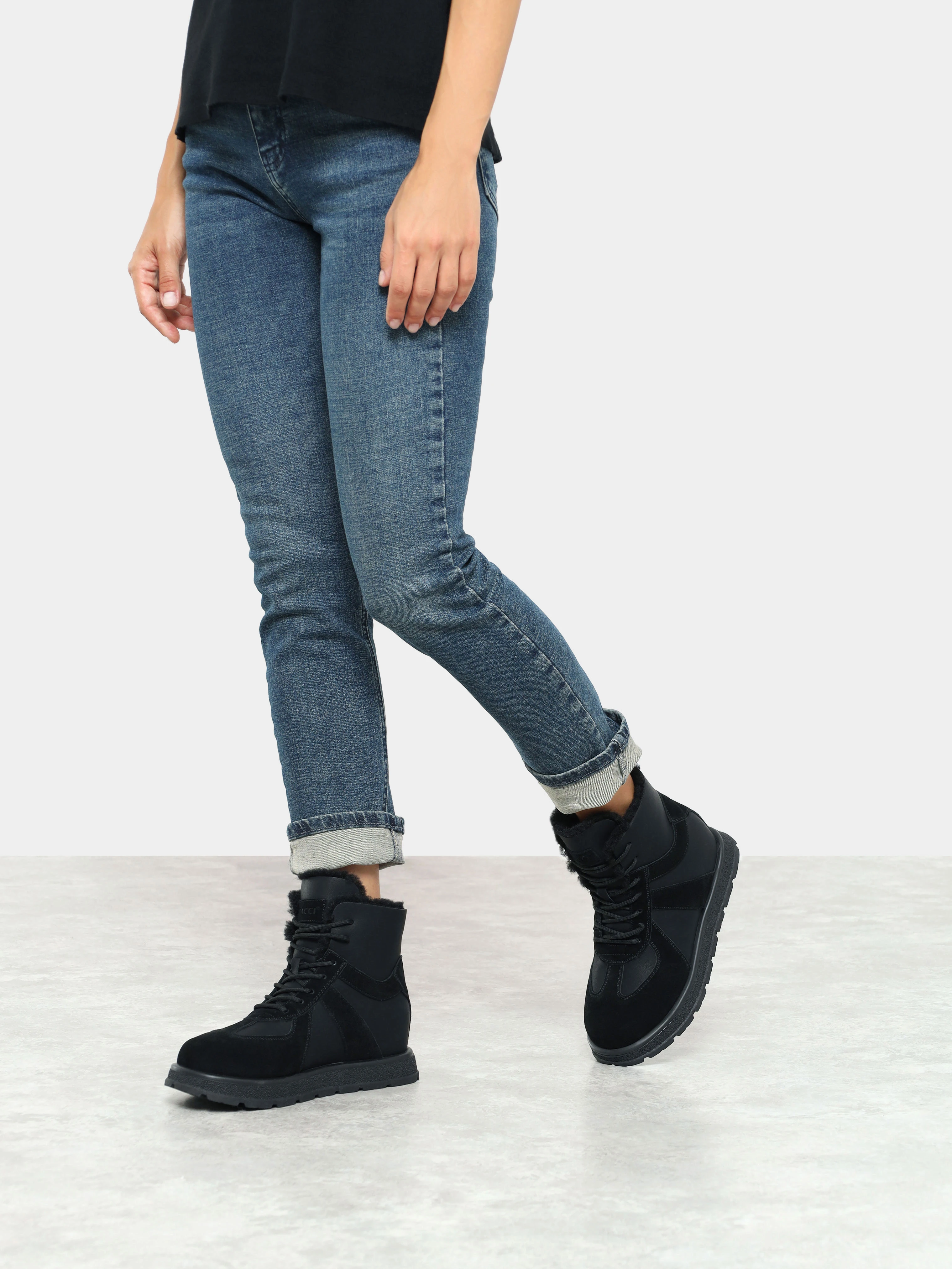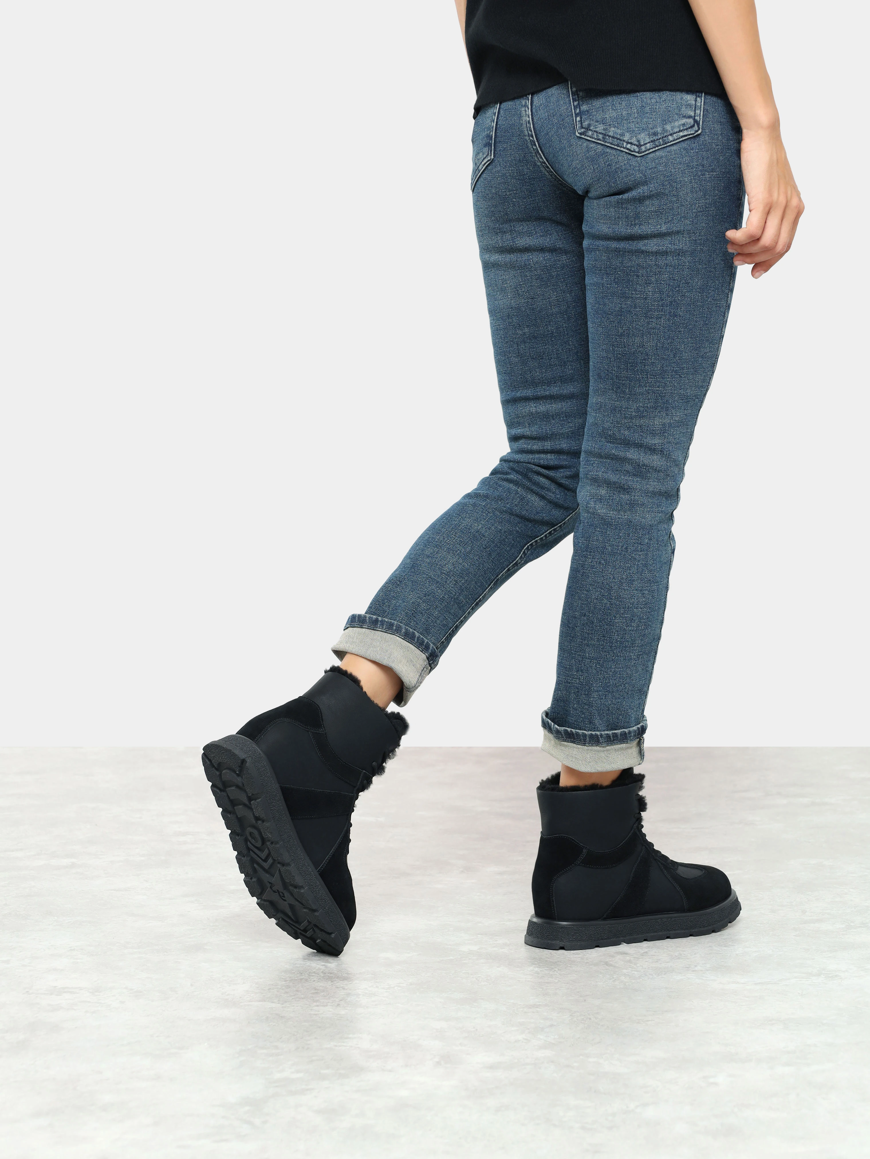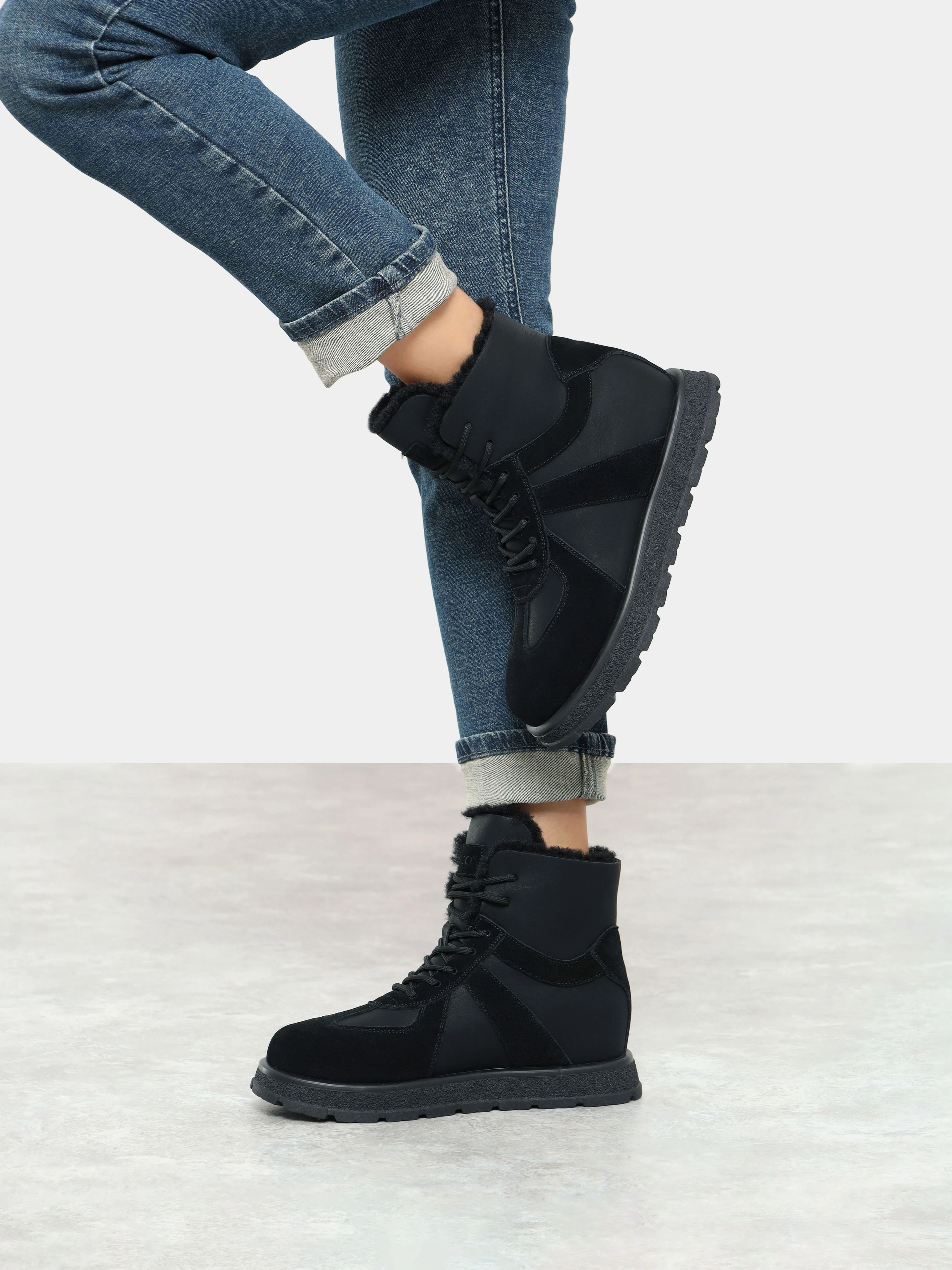 Ботинки женские зимние, цвет черный, натуральный спилок