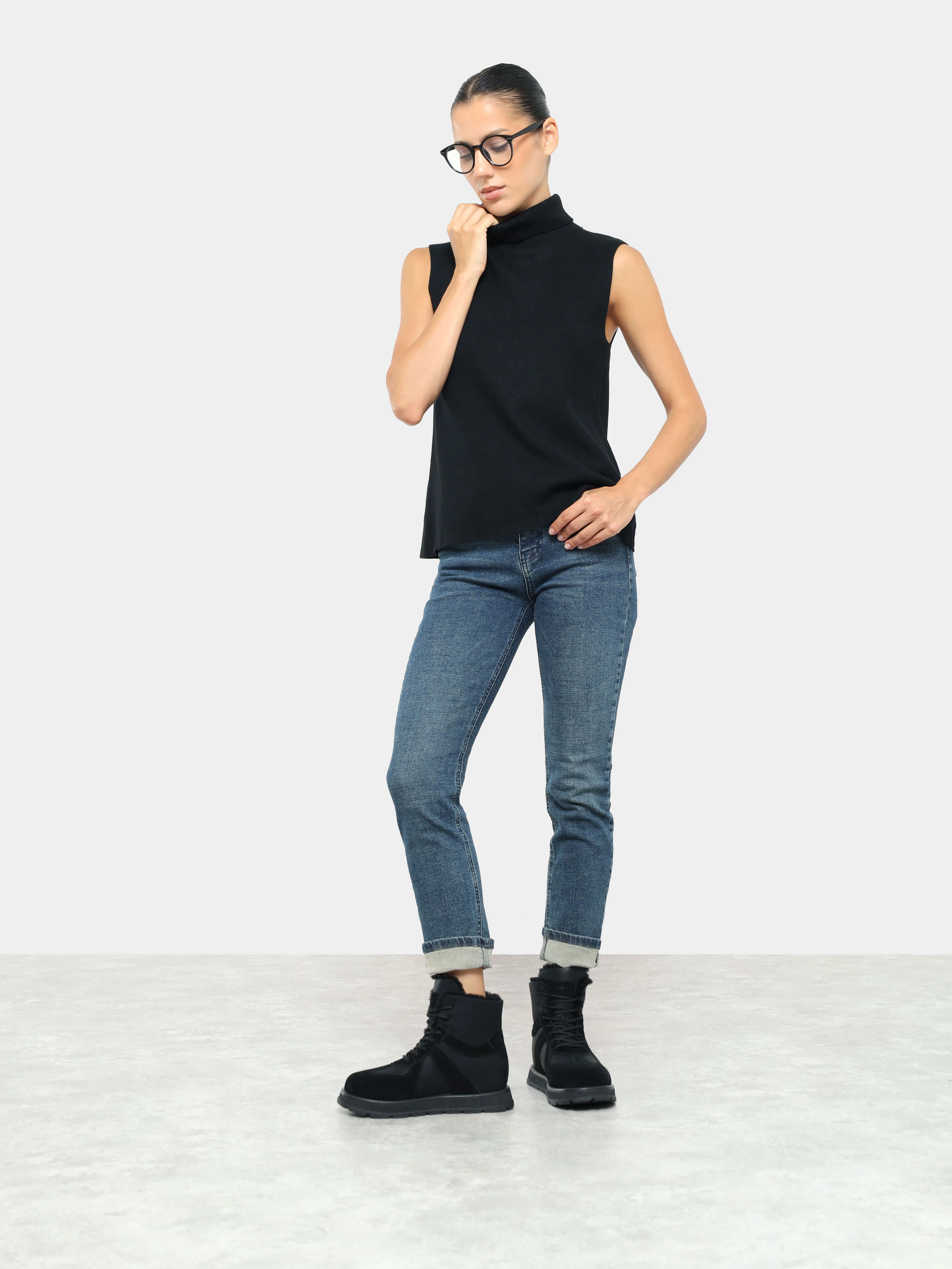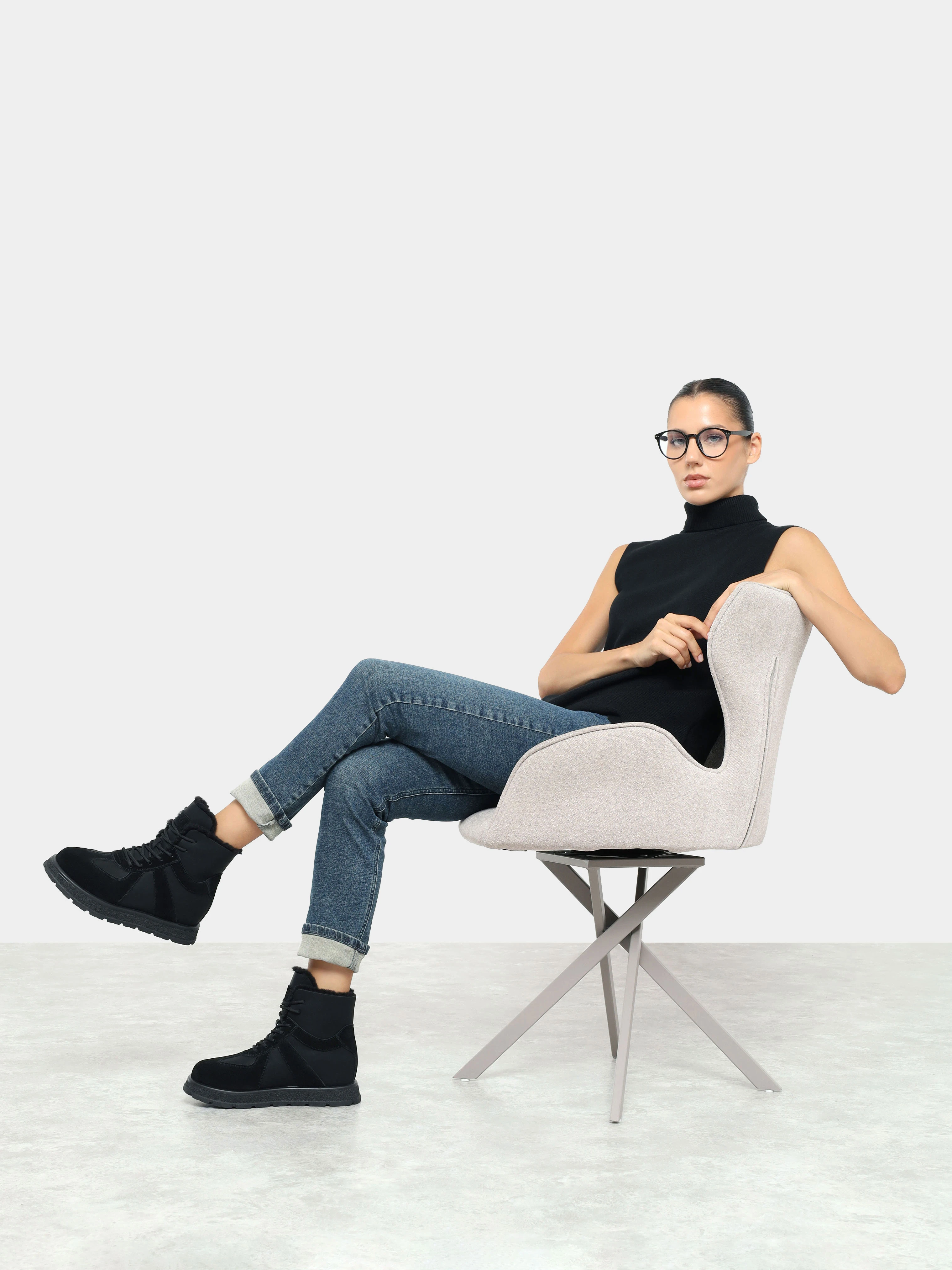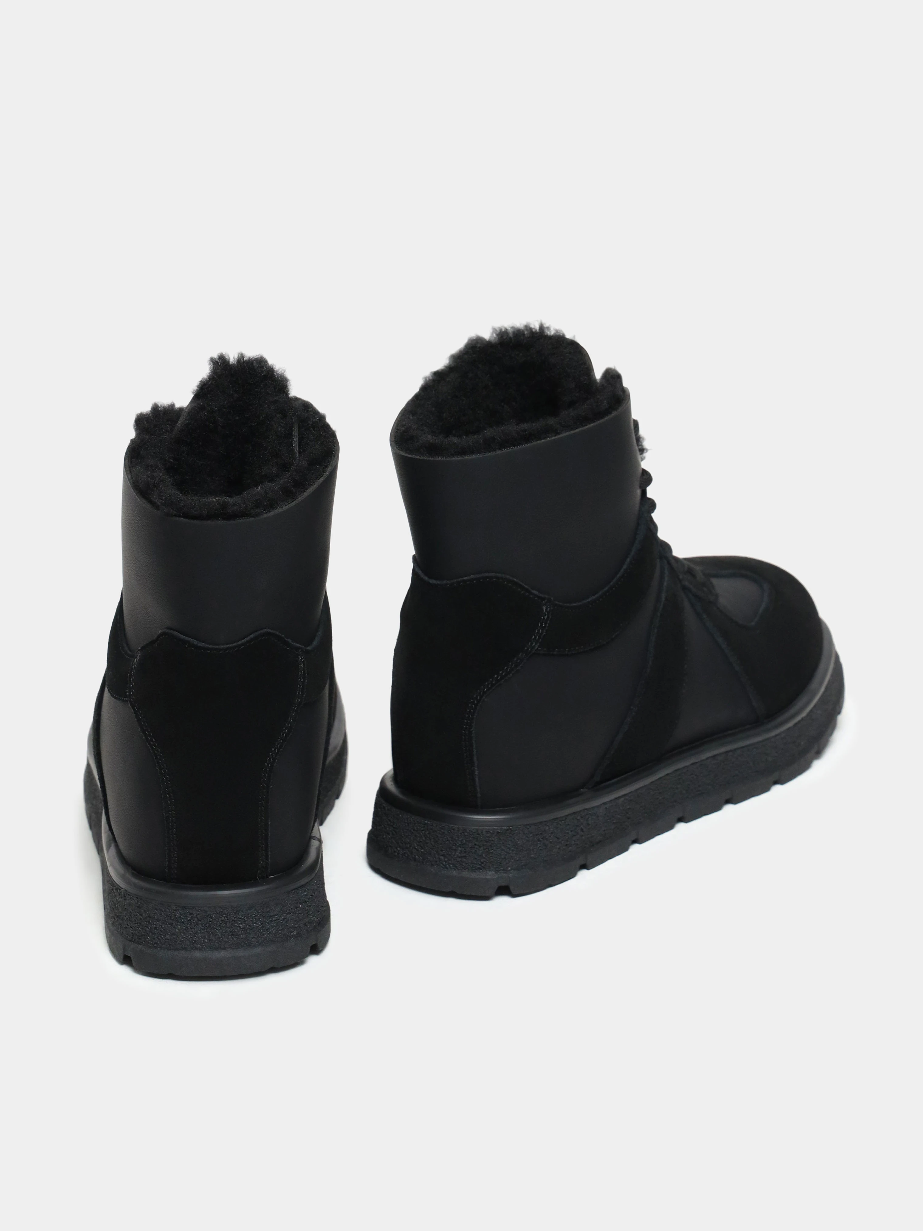 Ботинки женские зимние, цвет черный, натуральный спилок