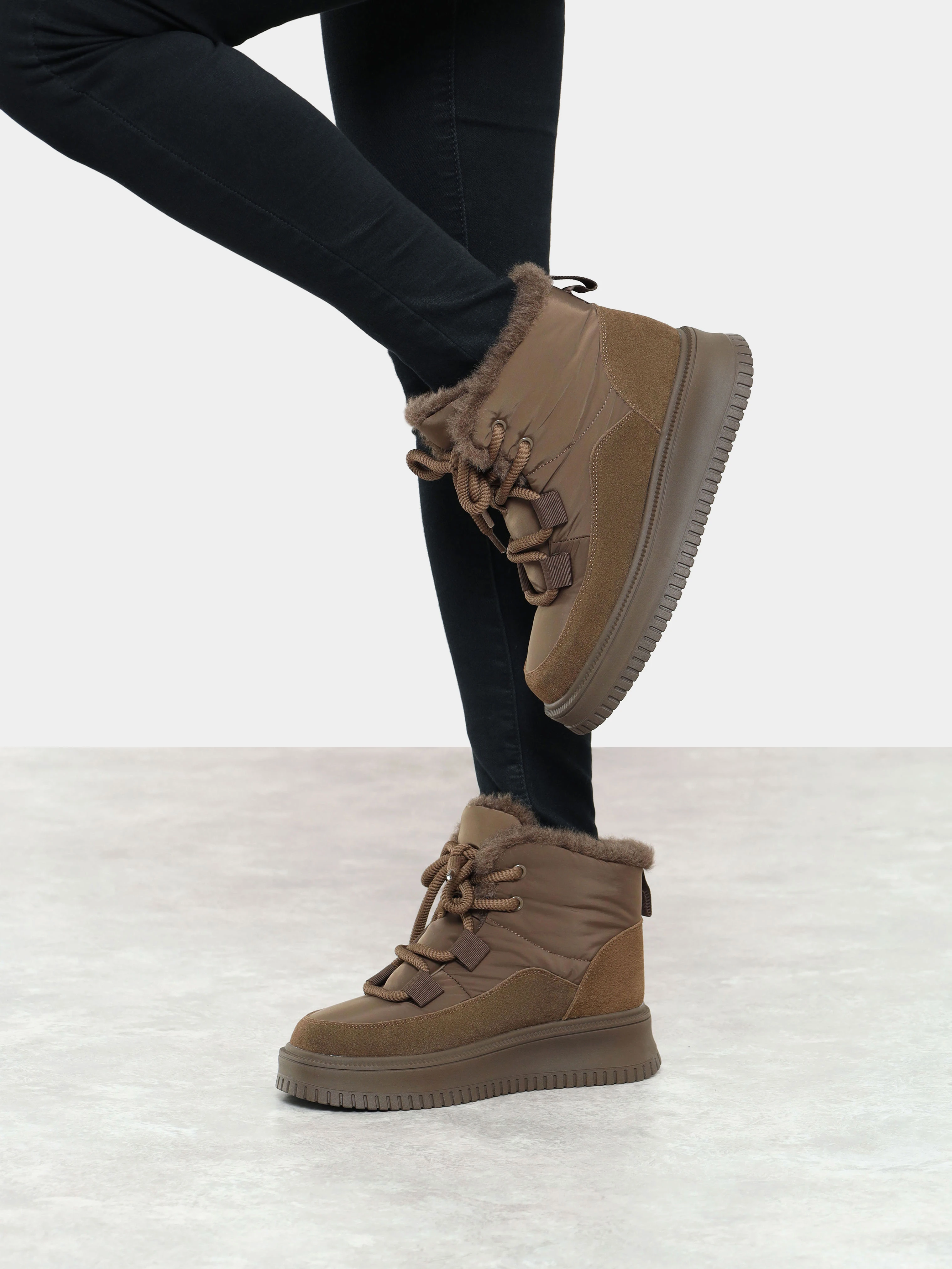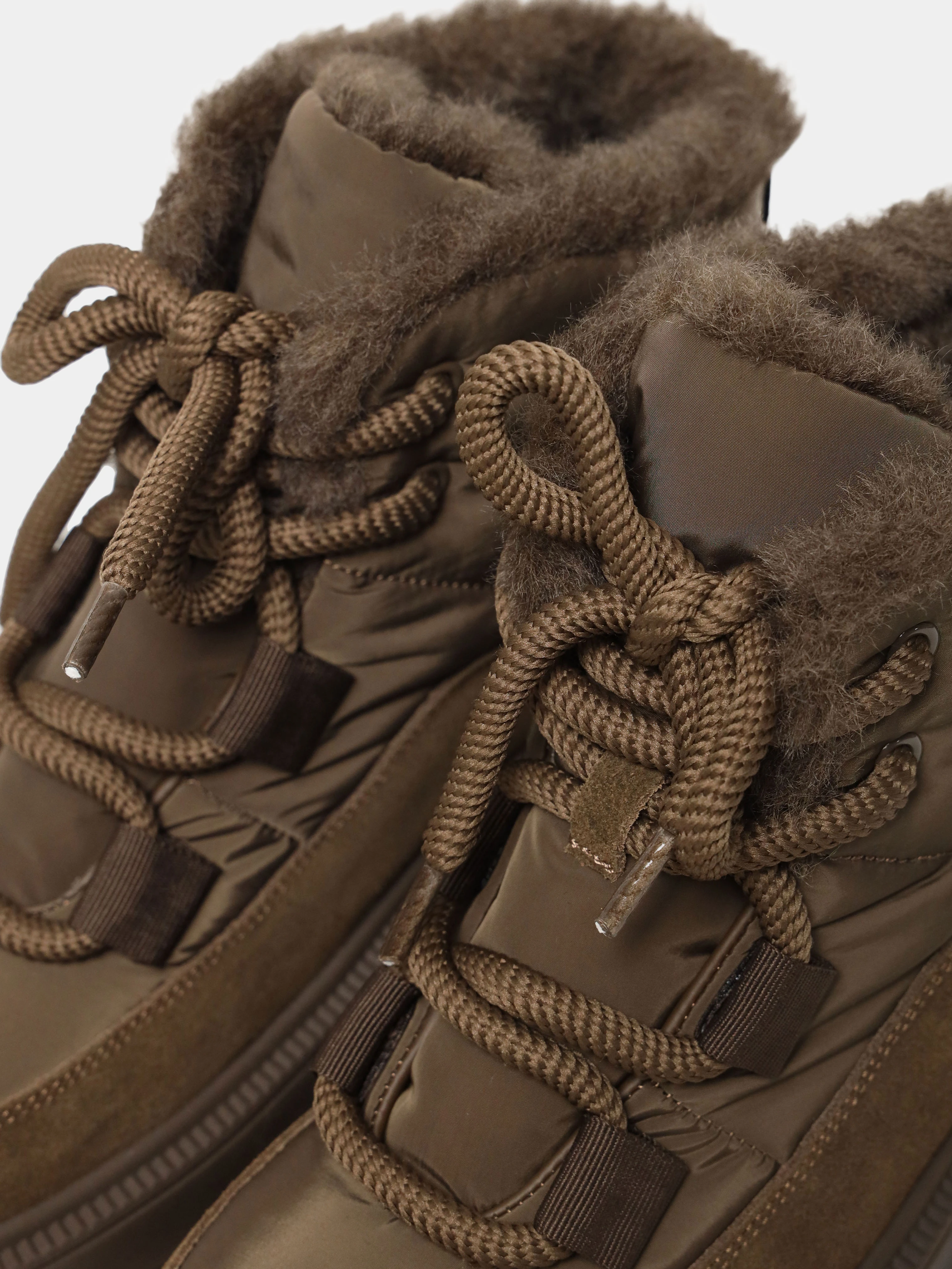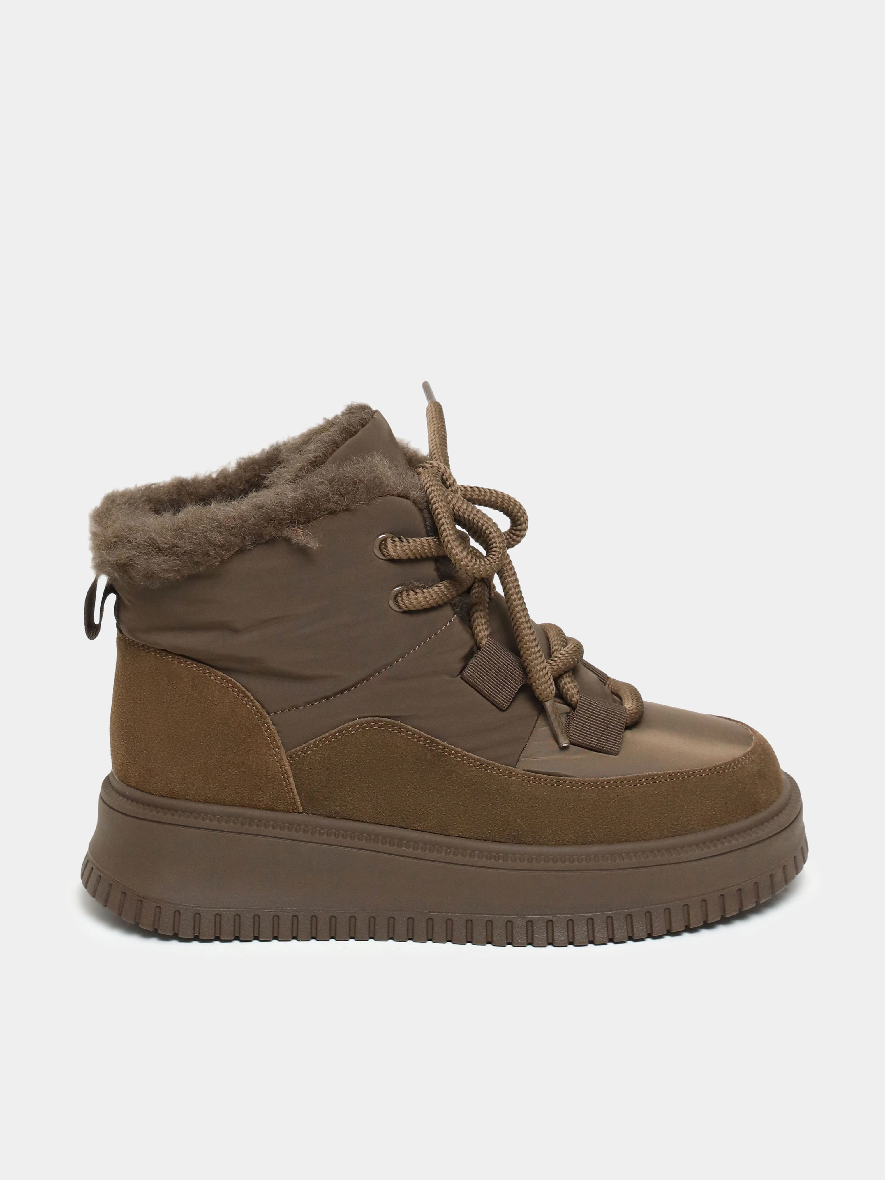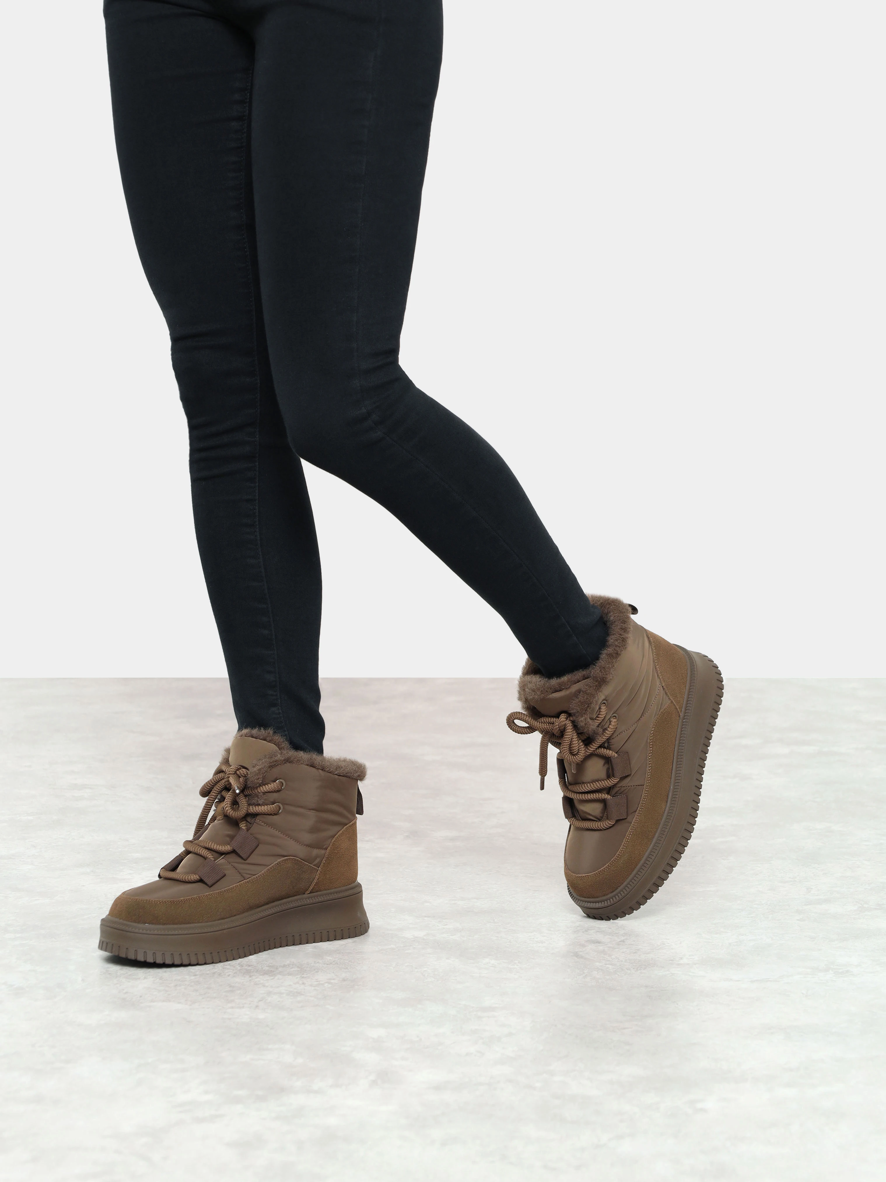 Ботинки женские зимние, цвет хаки, текстиль/натуральный спилок