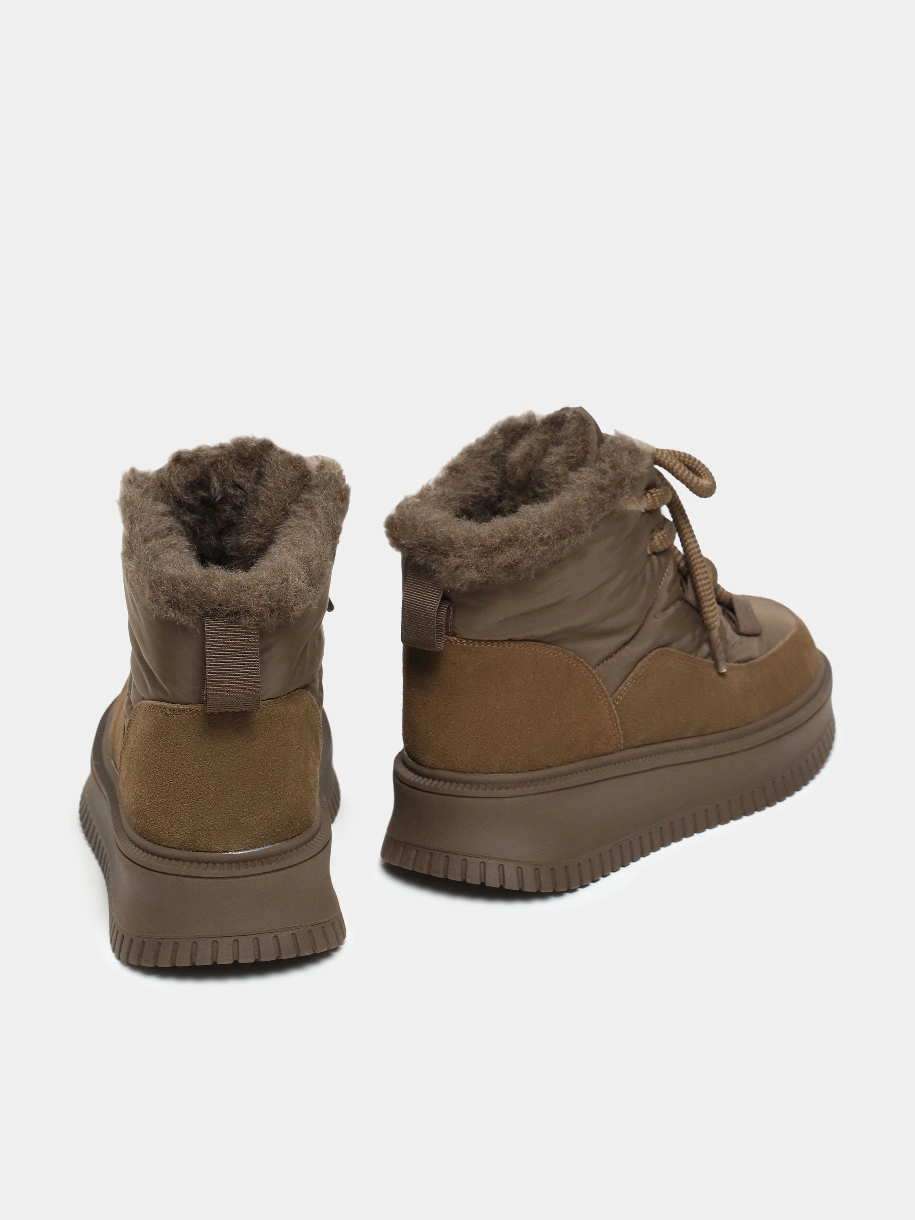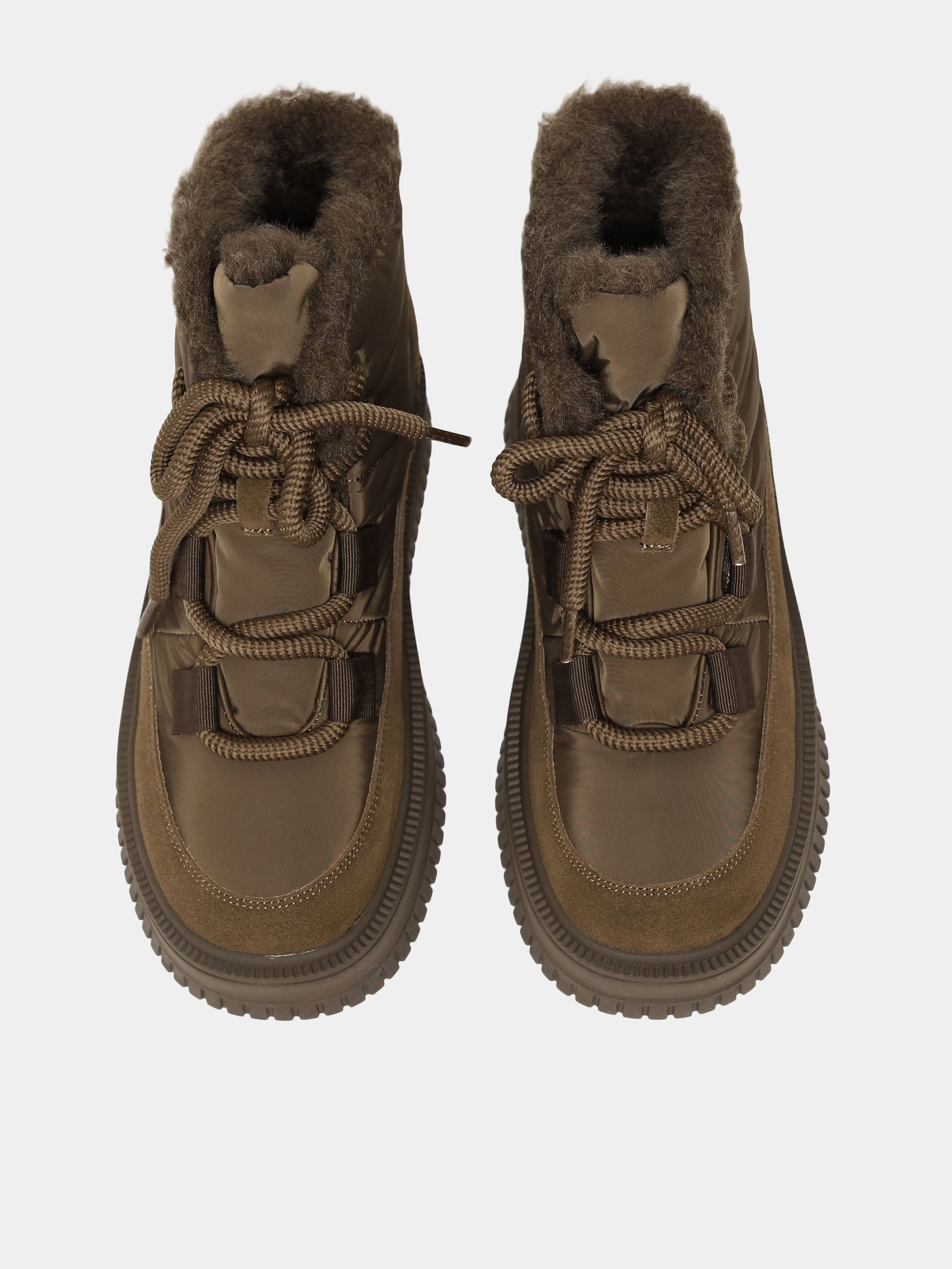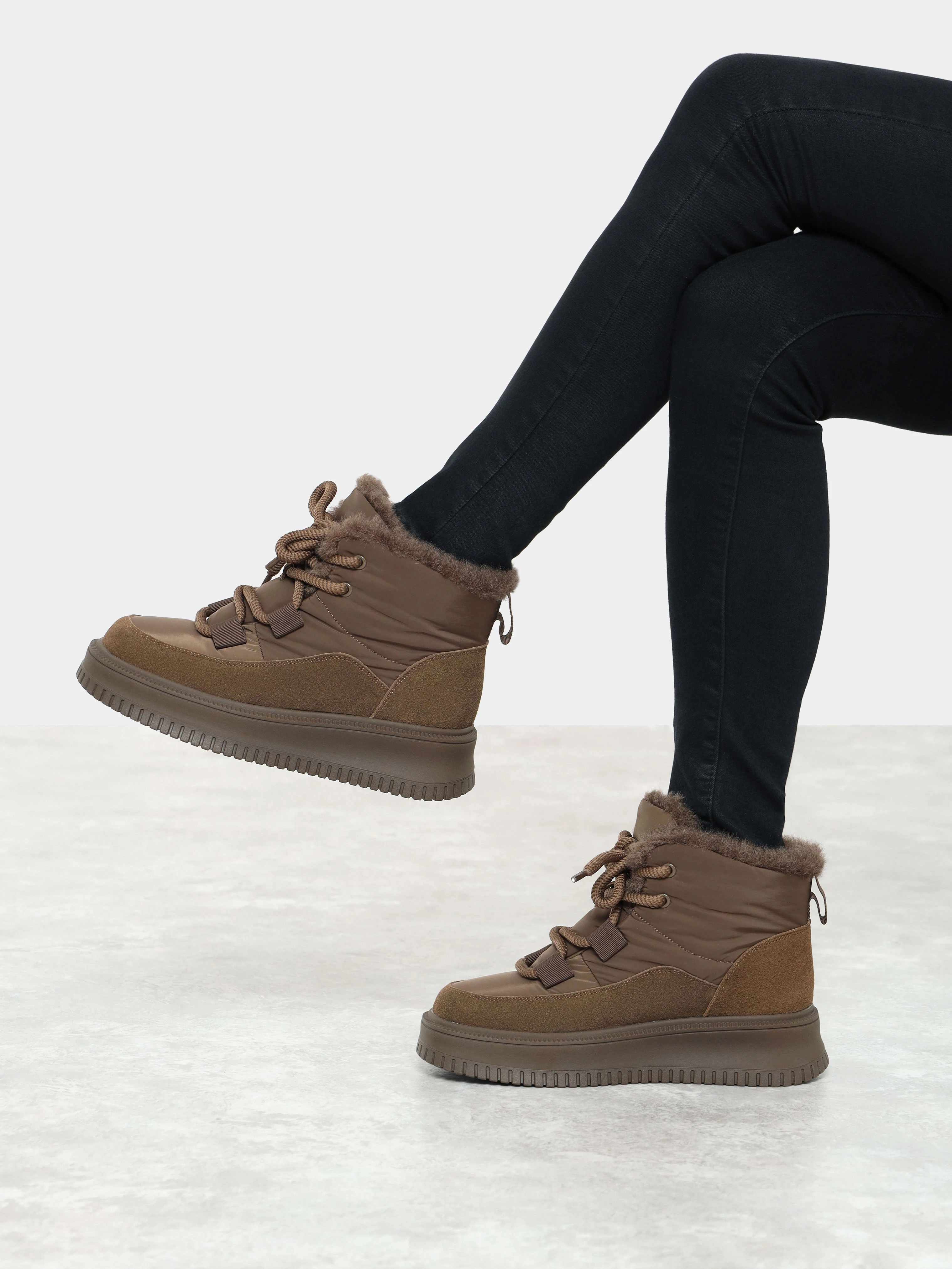 Ботинки женские зимние, цвет хаки, текстиль/натуральный спилок