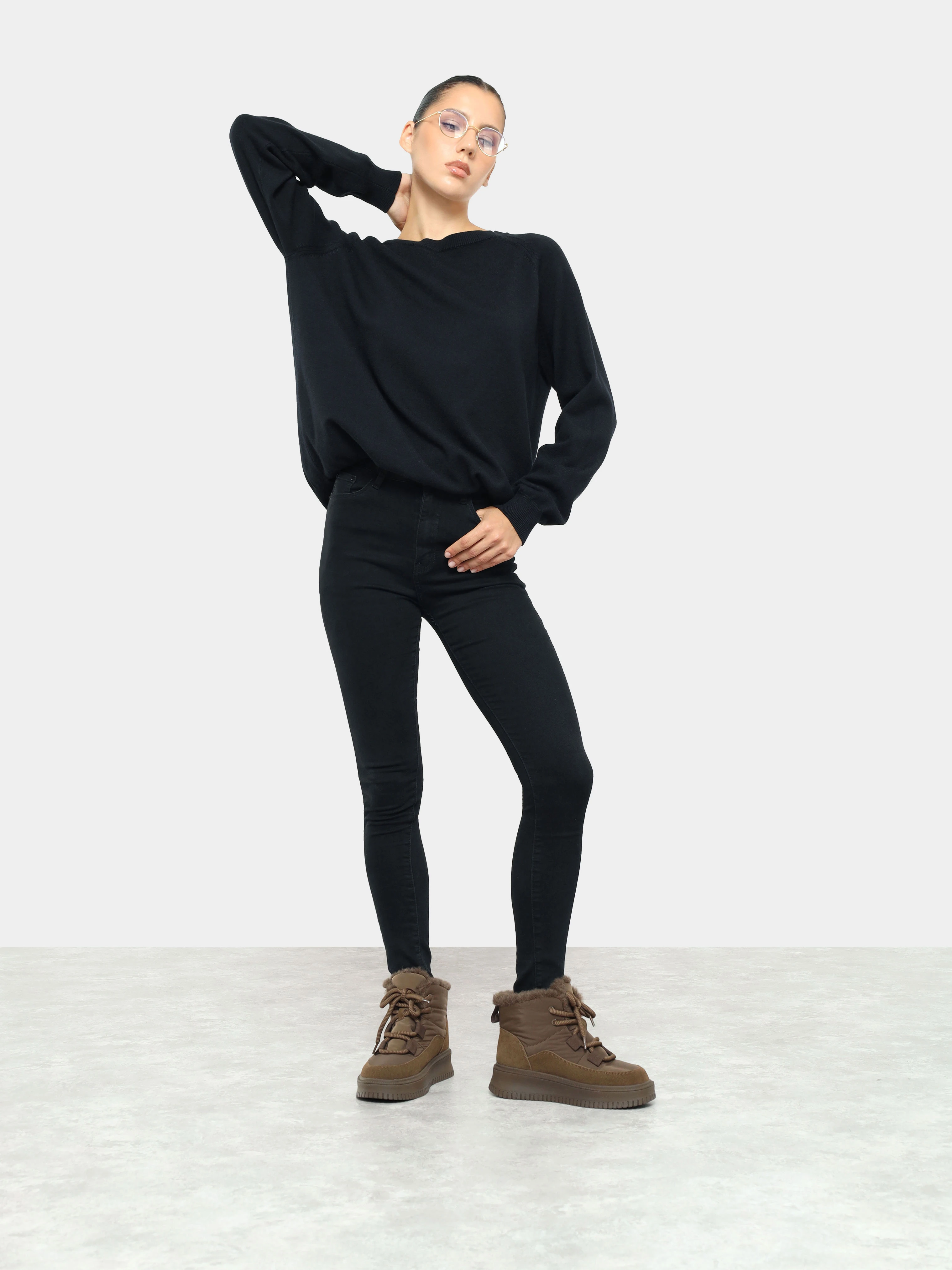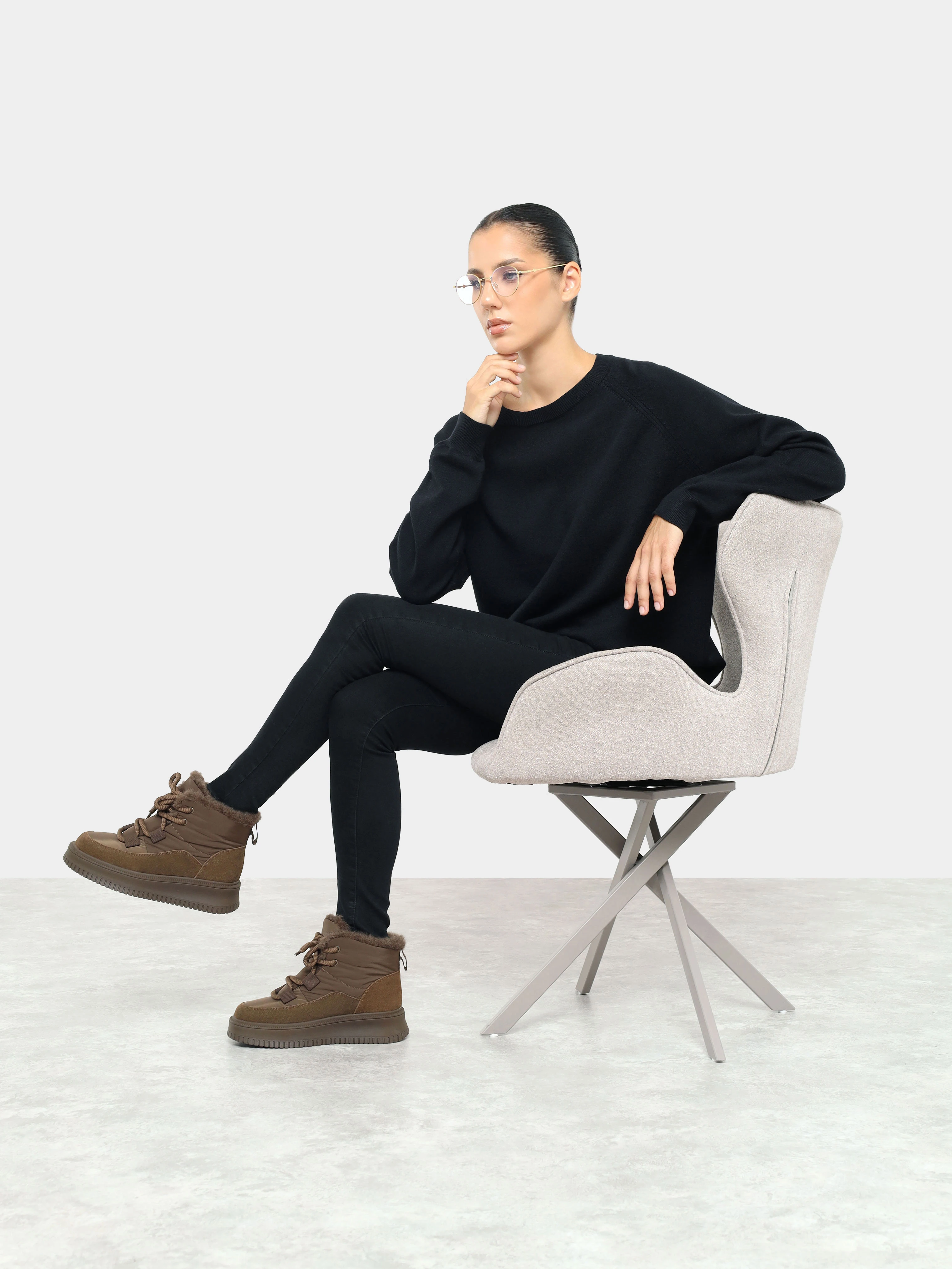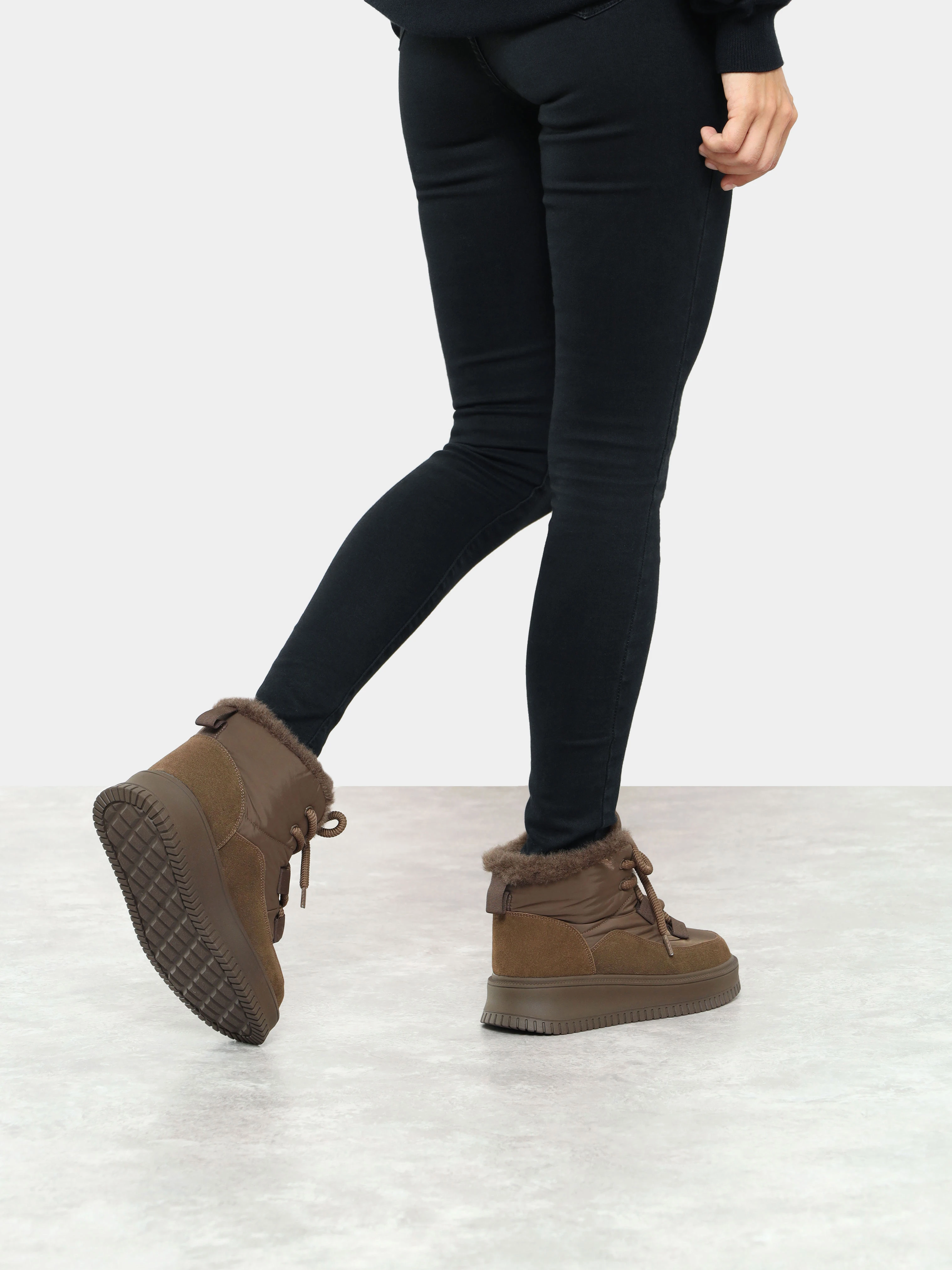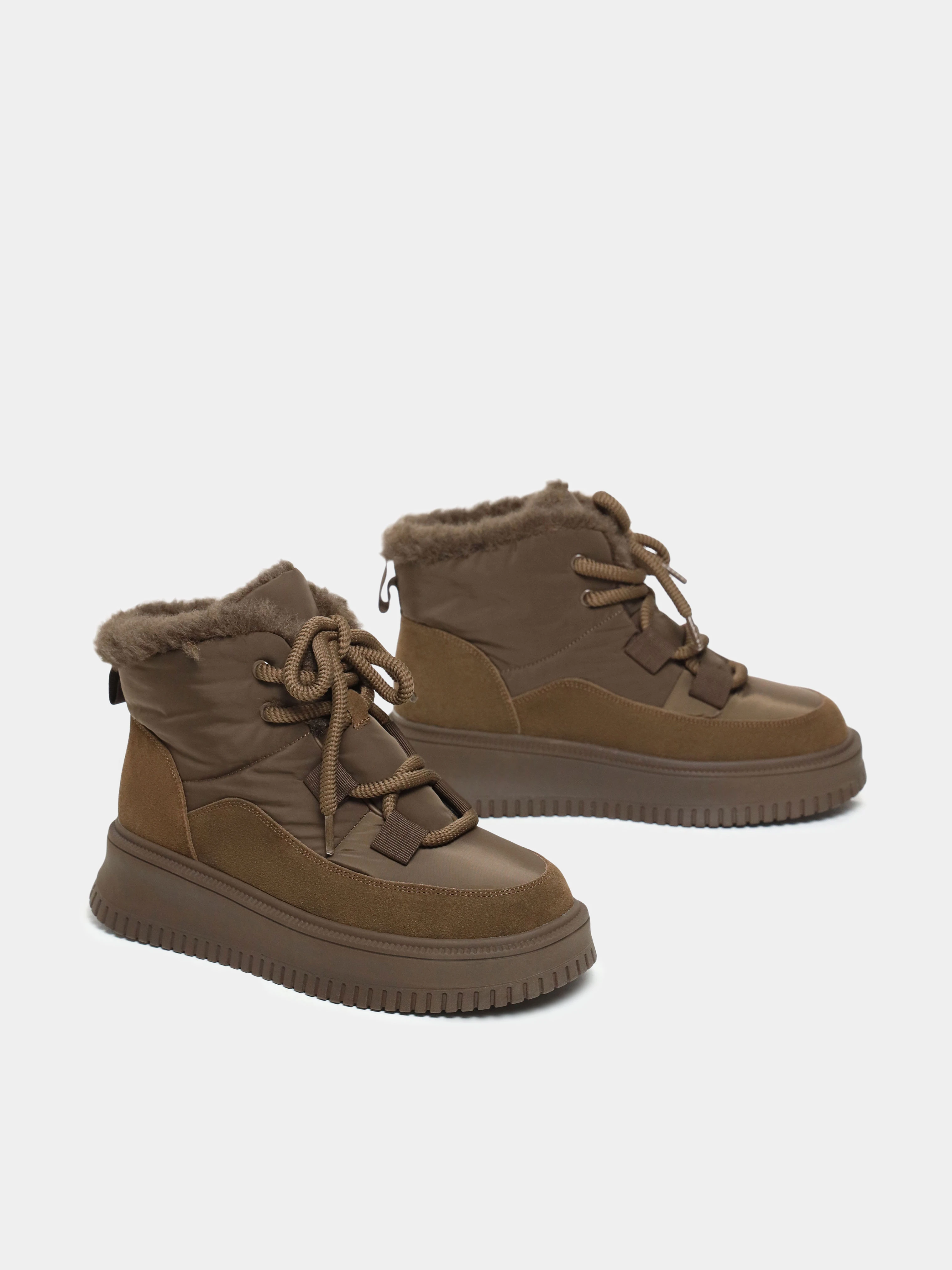 Ботинки женские зимние, цвет хаки, текстиль/натуральный спилок