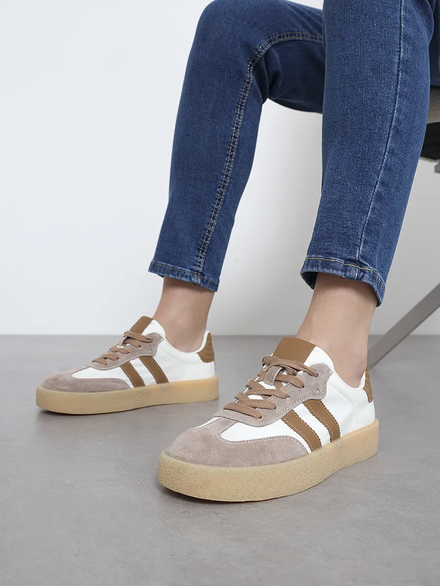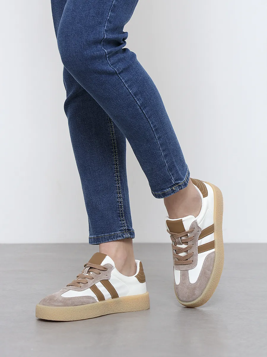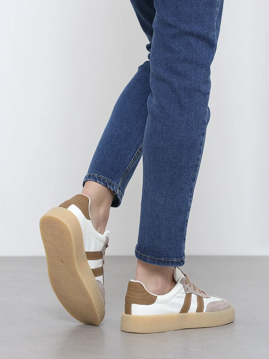 Кеды женские демисезонные, цвет мокко, текстиль/натуральный спилок
