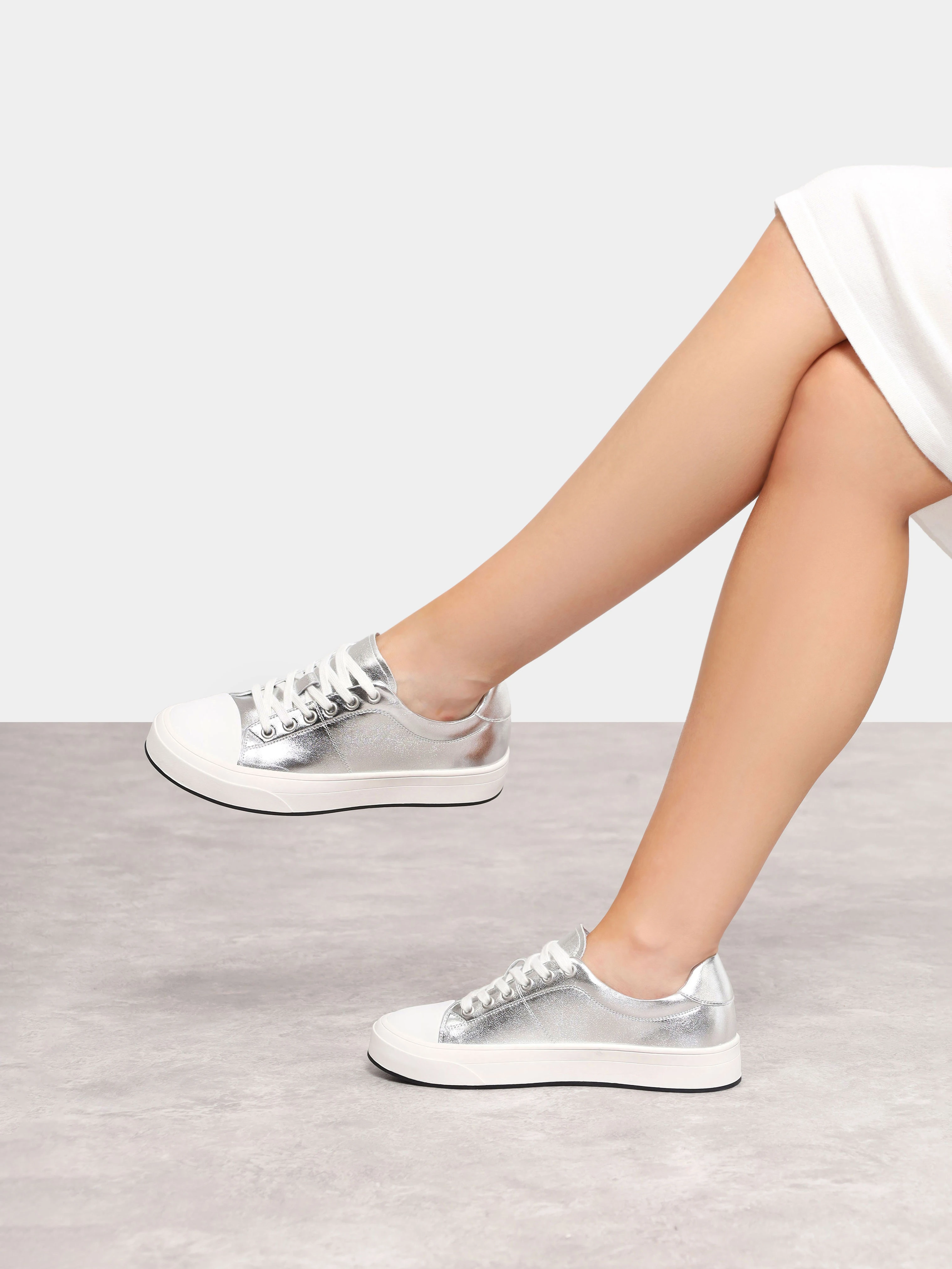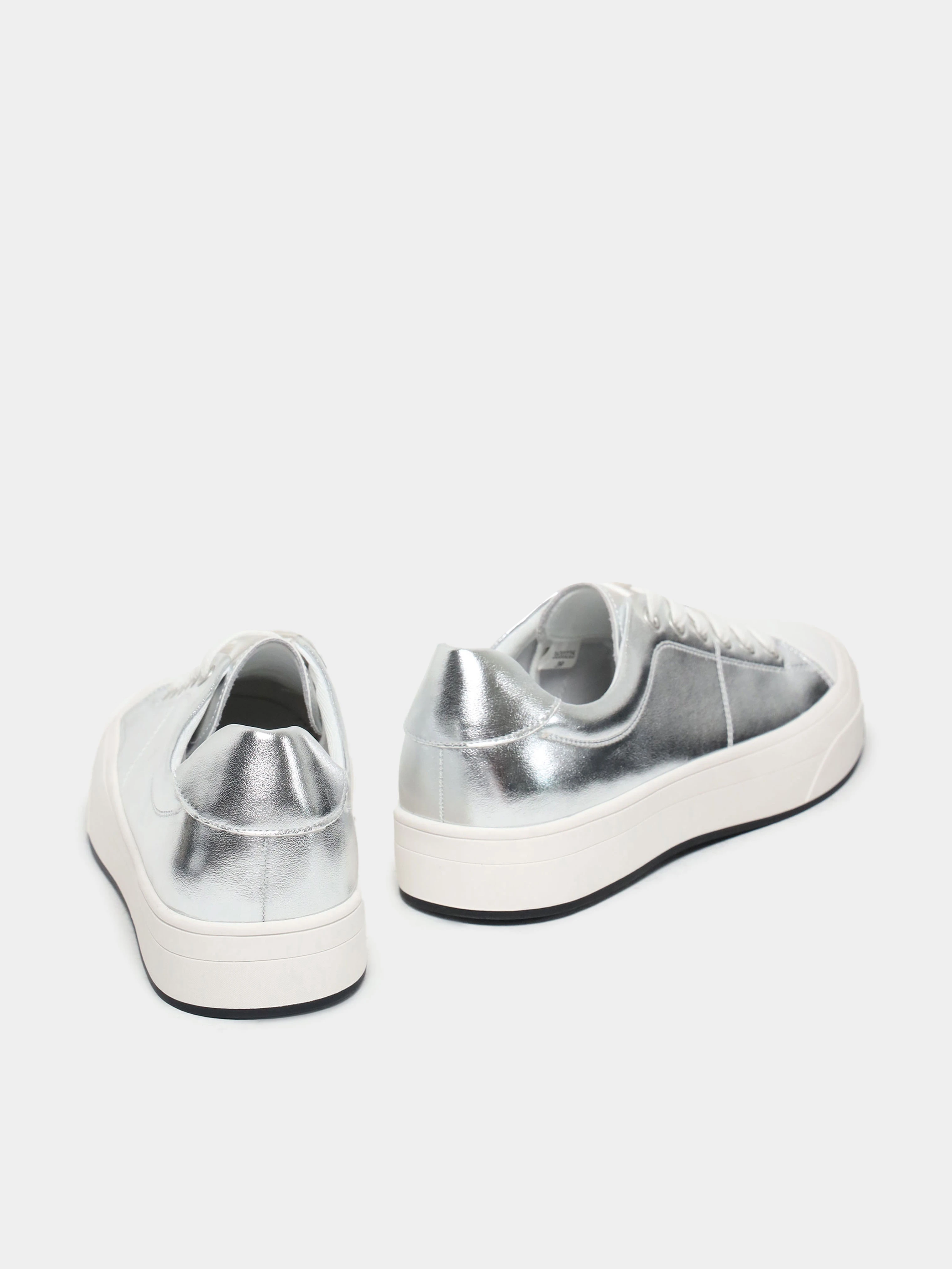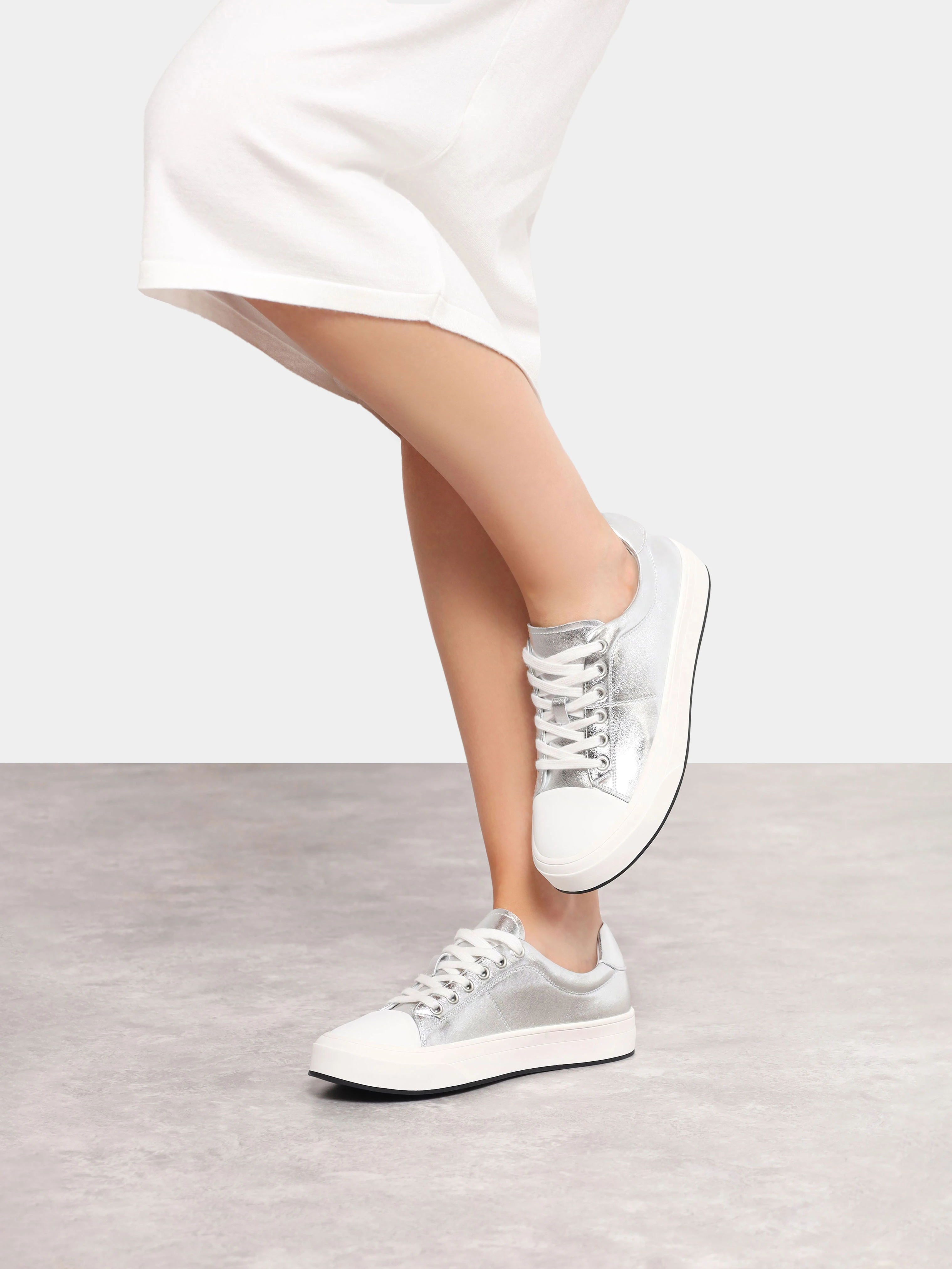 Кеды женские демисезонные, цвет серебряный, искусственная кожа