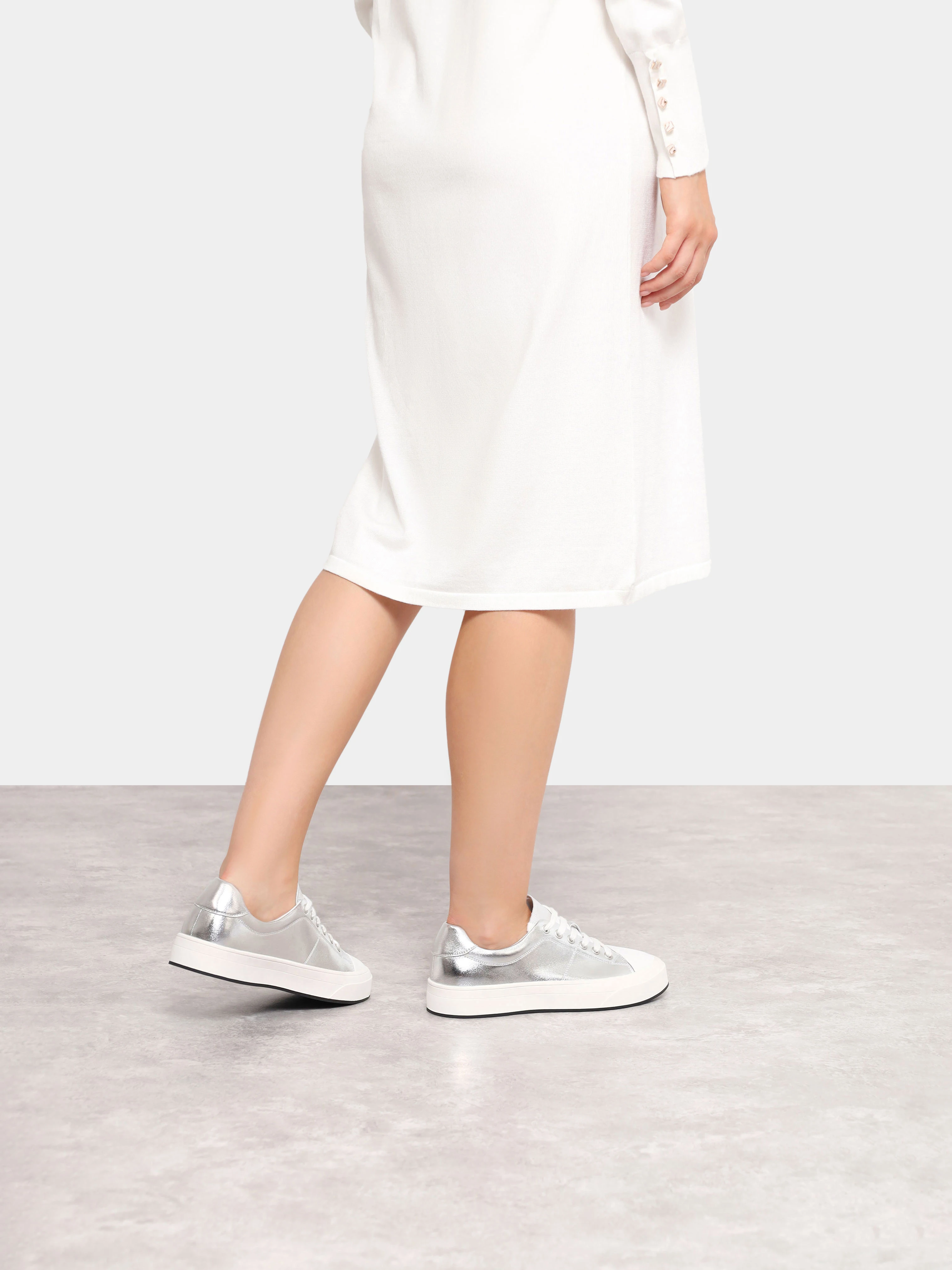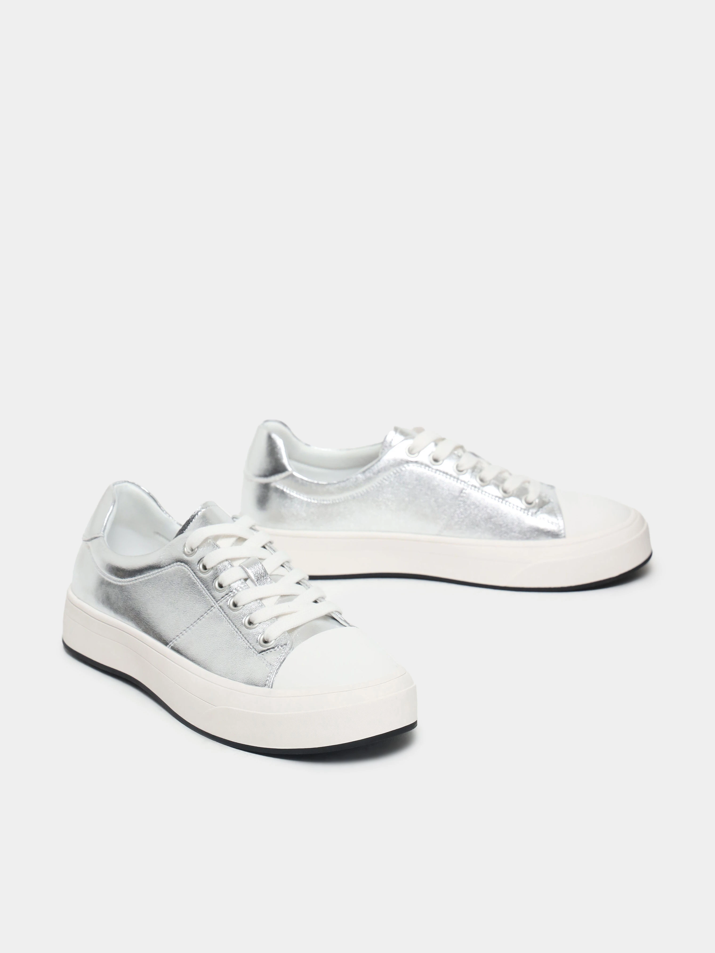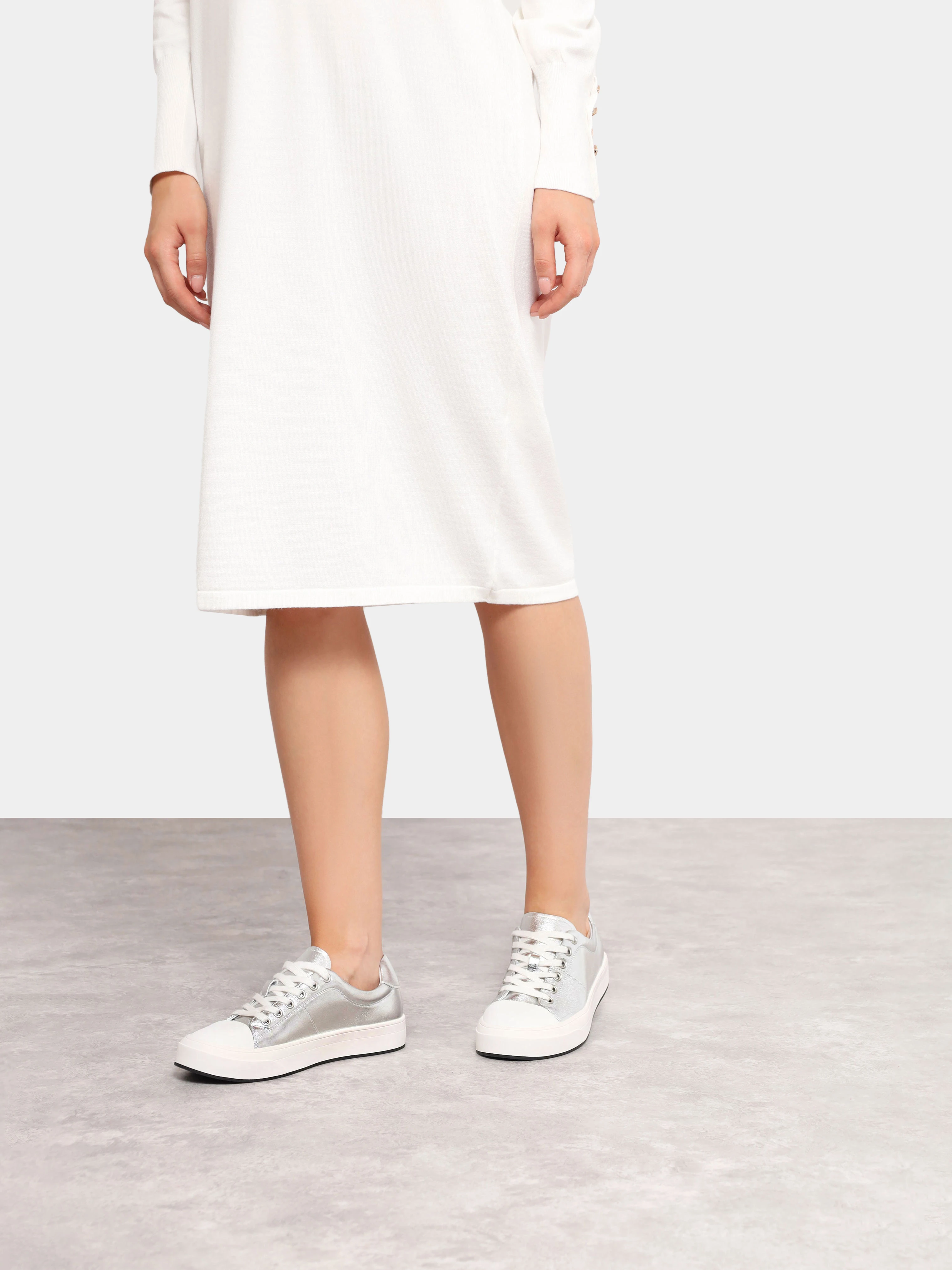 Кеды женские демисезонные, цвет серебряный, искусственная кожа