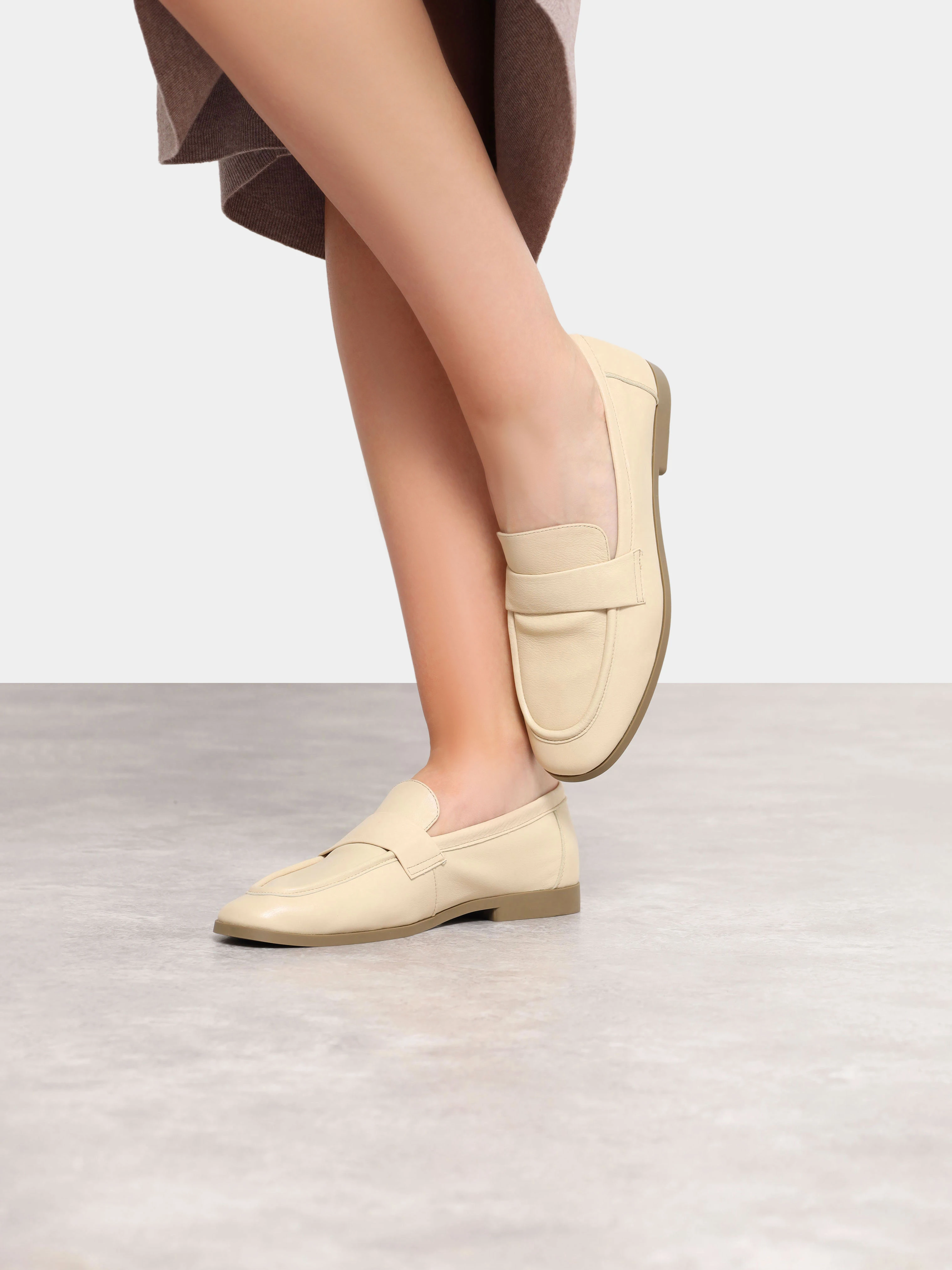 Лоферы женские всесезонные, цвет молочный, натуральная кожа