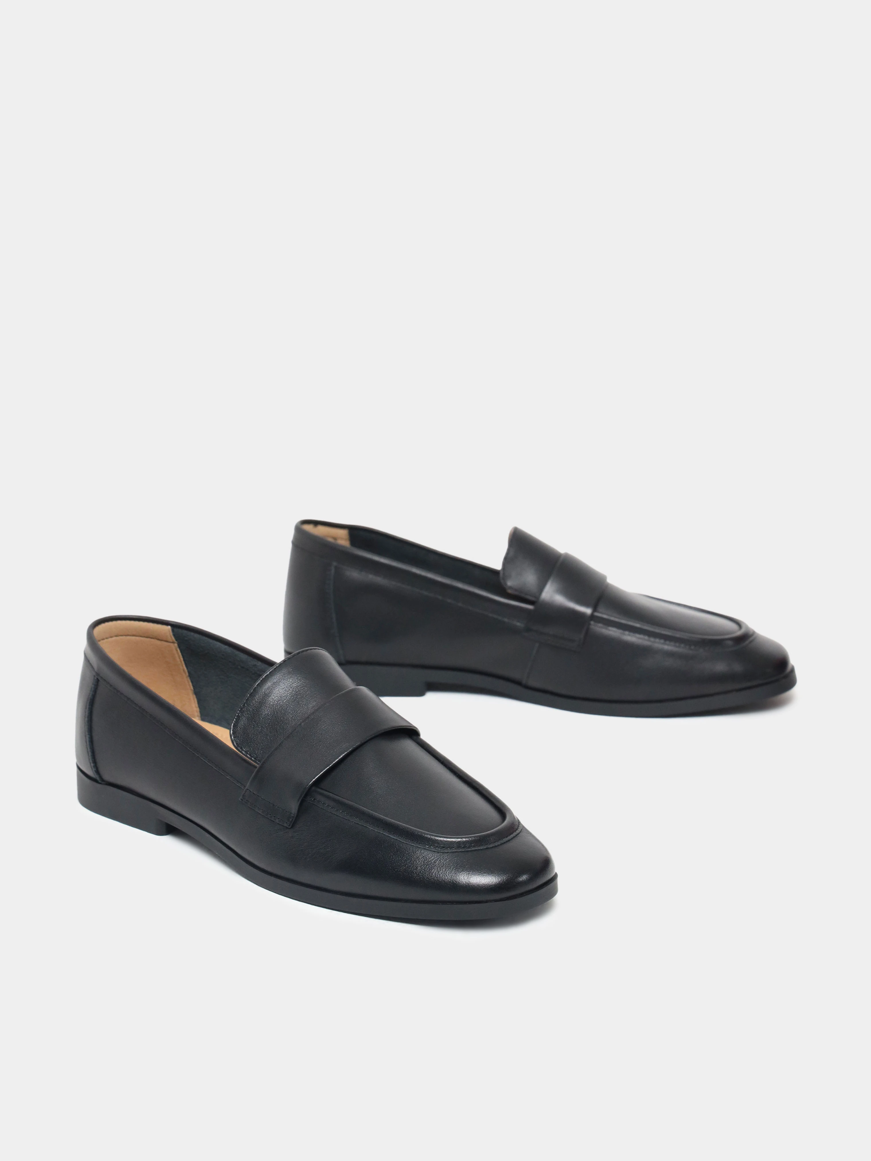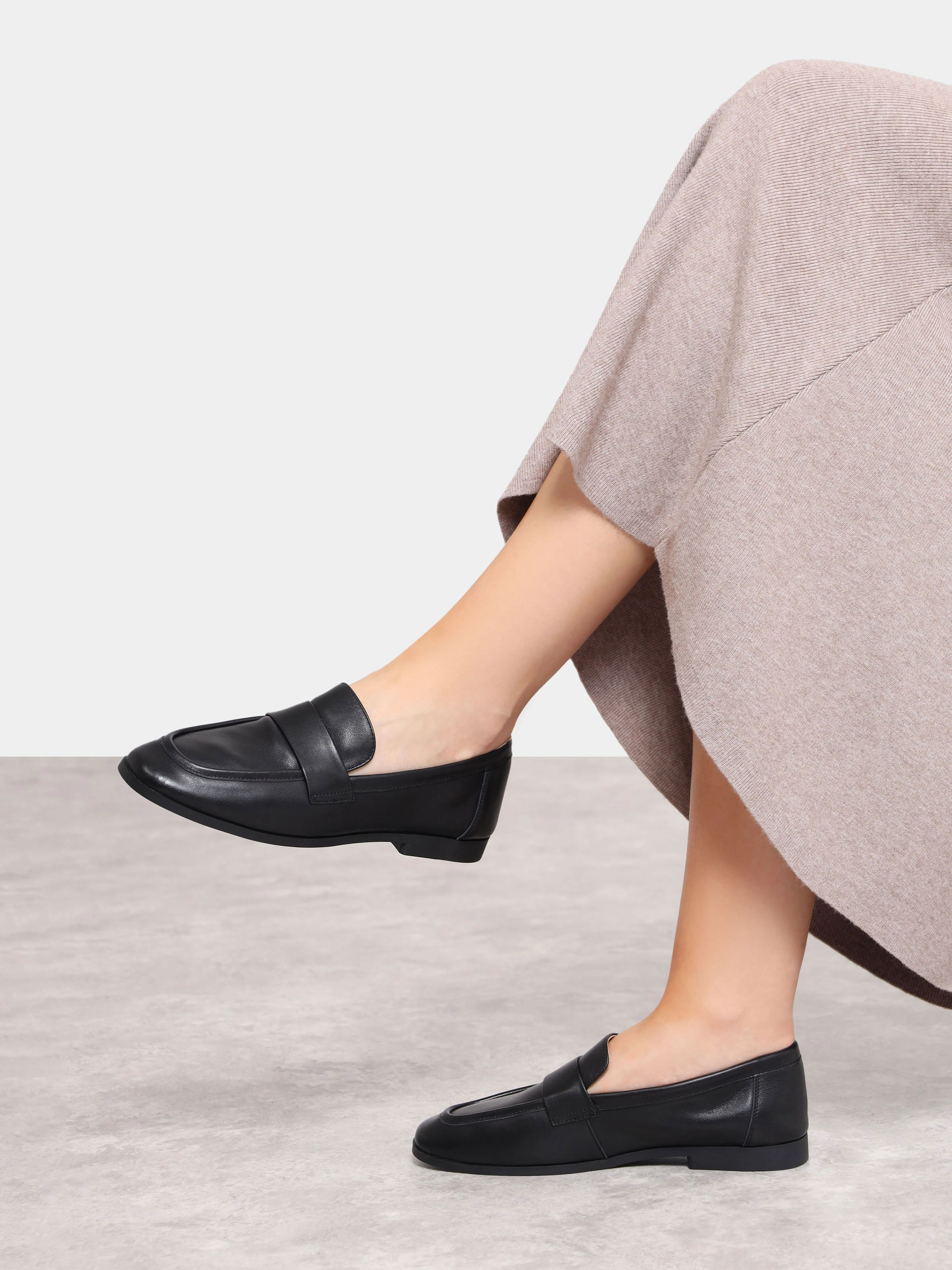 Лоферы женские всесезонные, цвет черный, натуральная кожа
