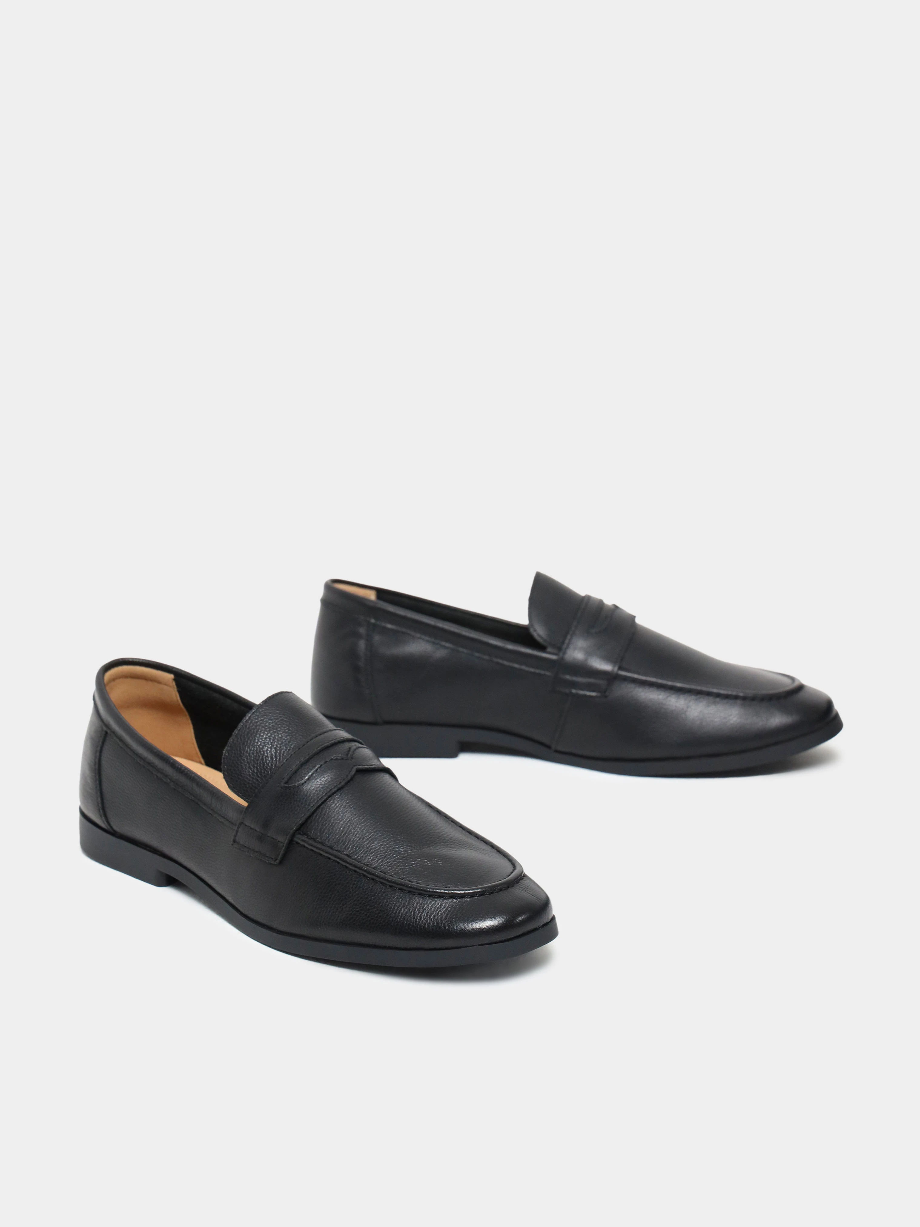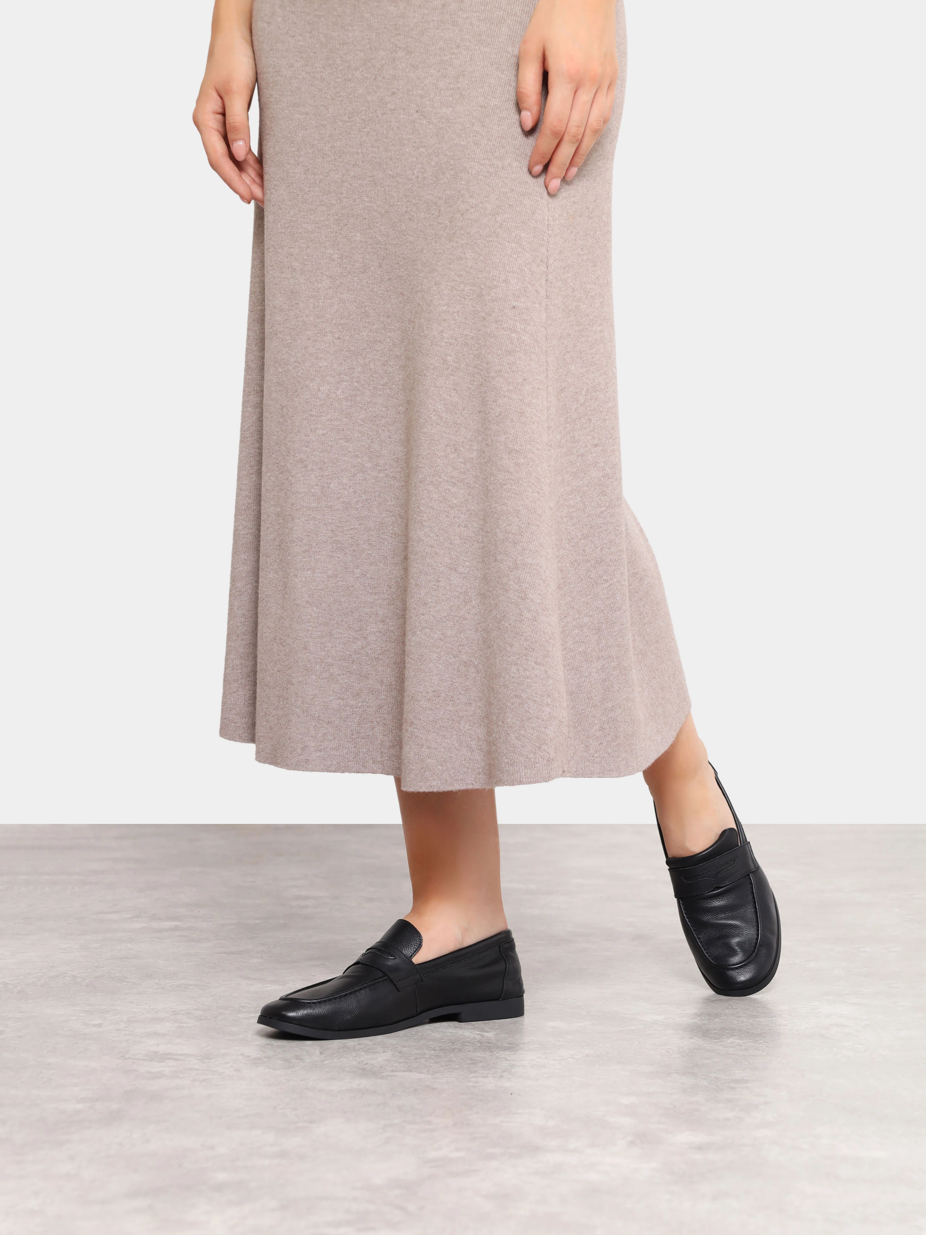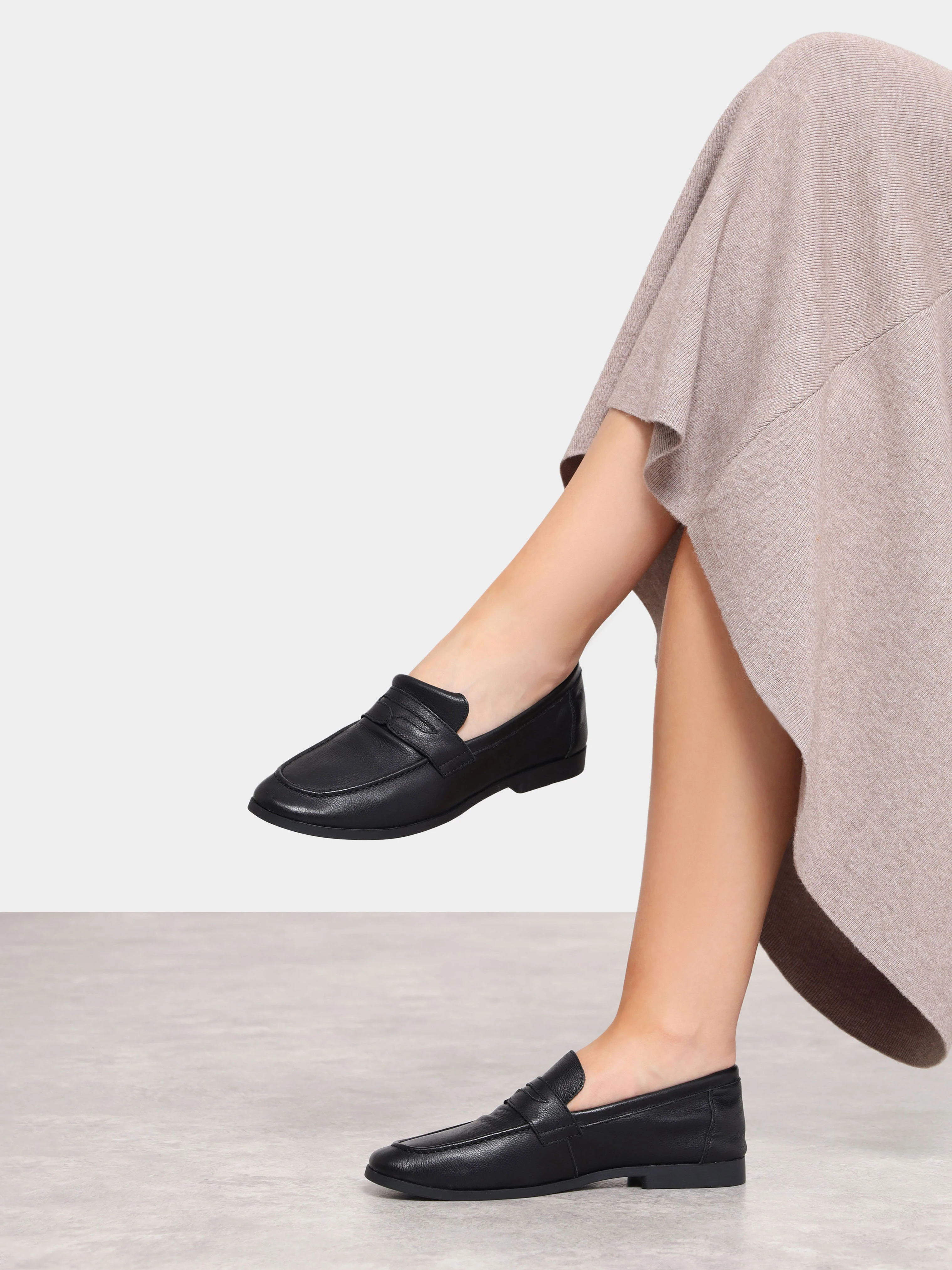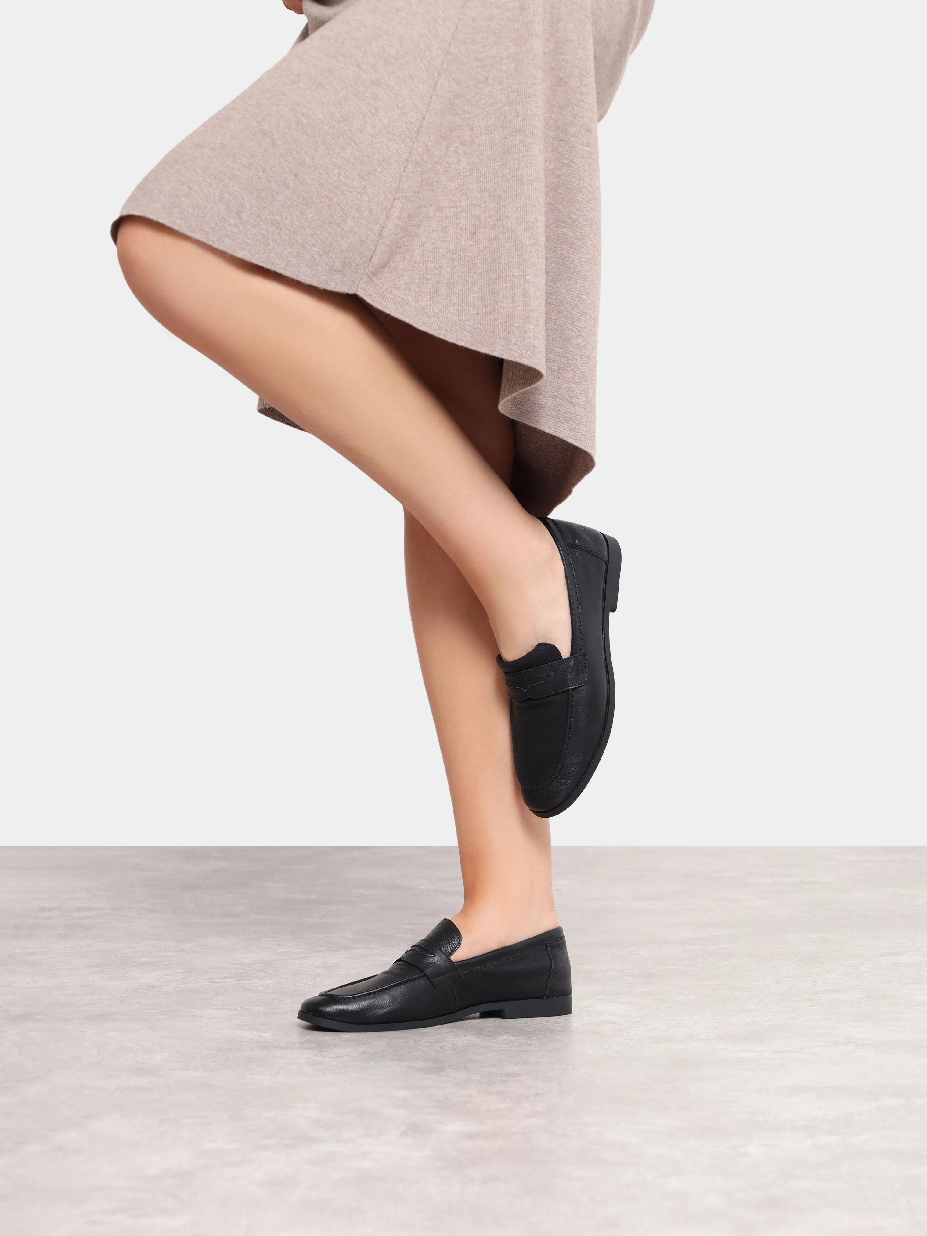 Лоферы женские всесезонные, цвет черный, натуральная кожа
