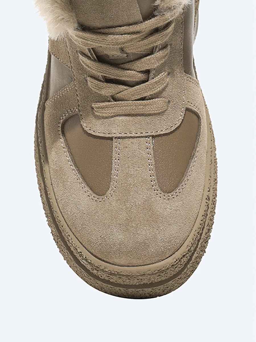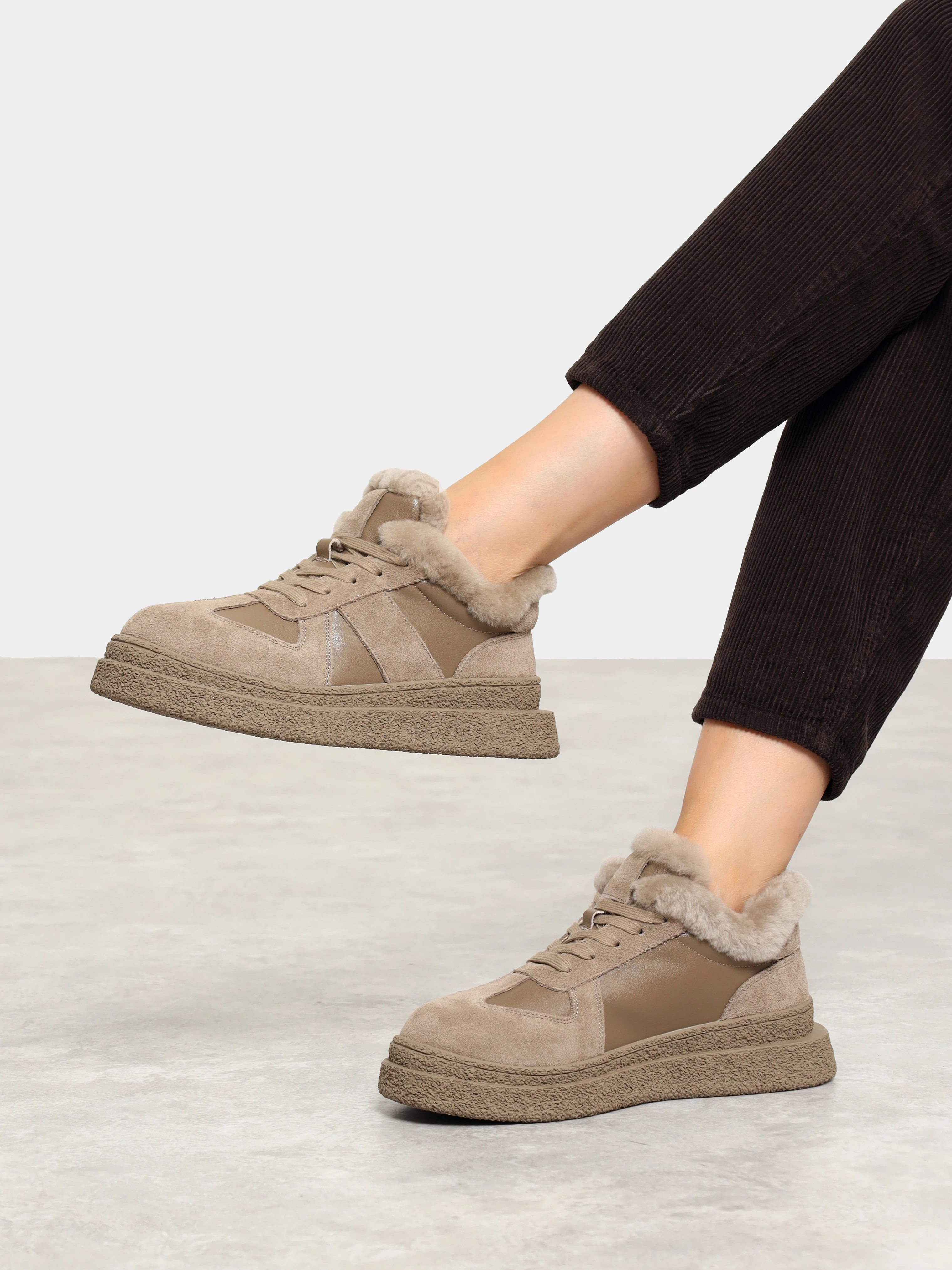 Кеды женские зимние, цвет мокко, натуральный спилок/искусственная кожа