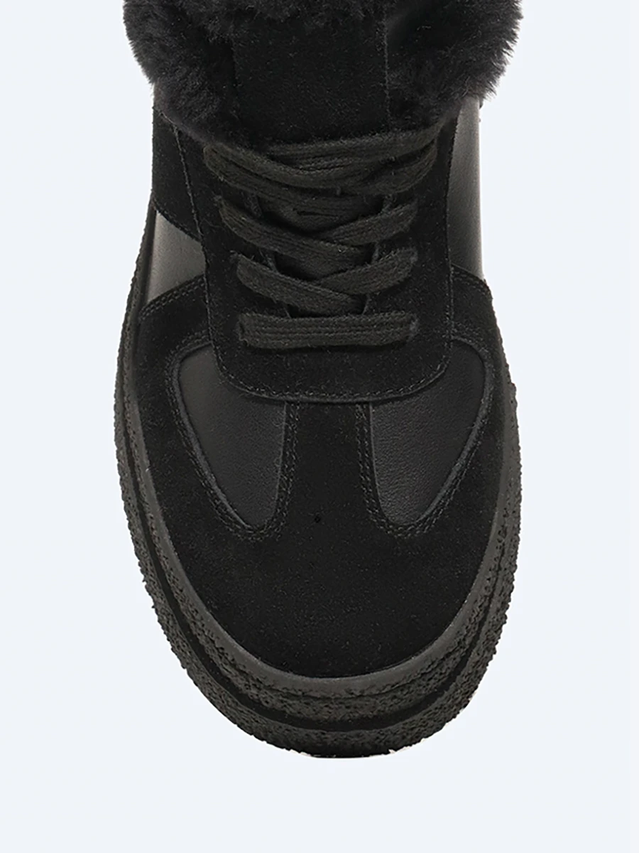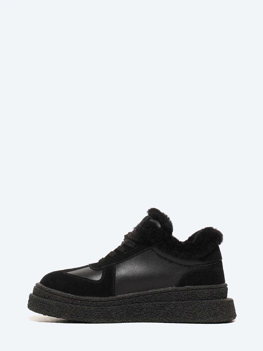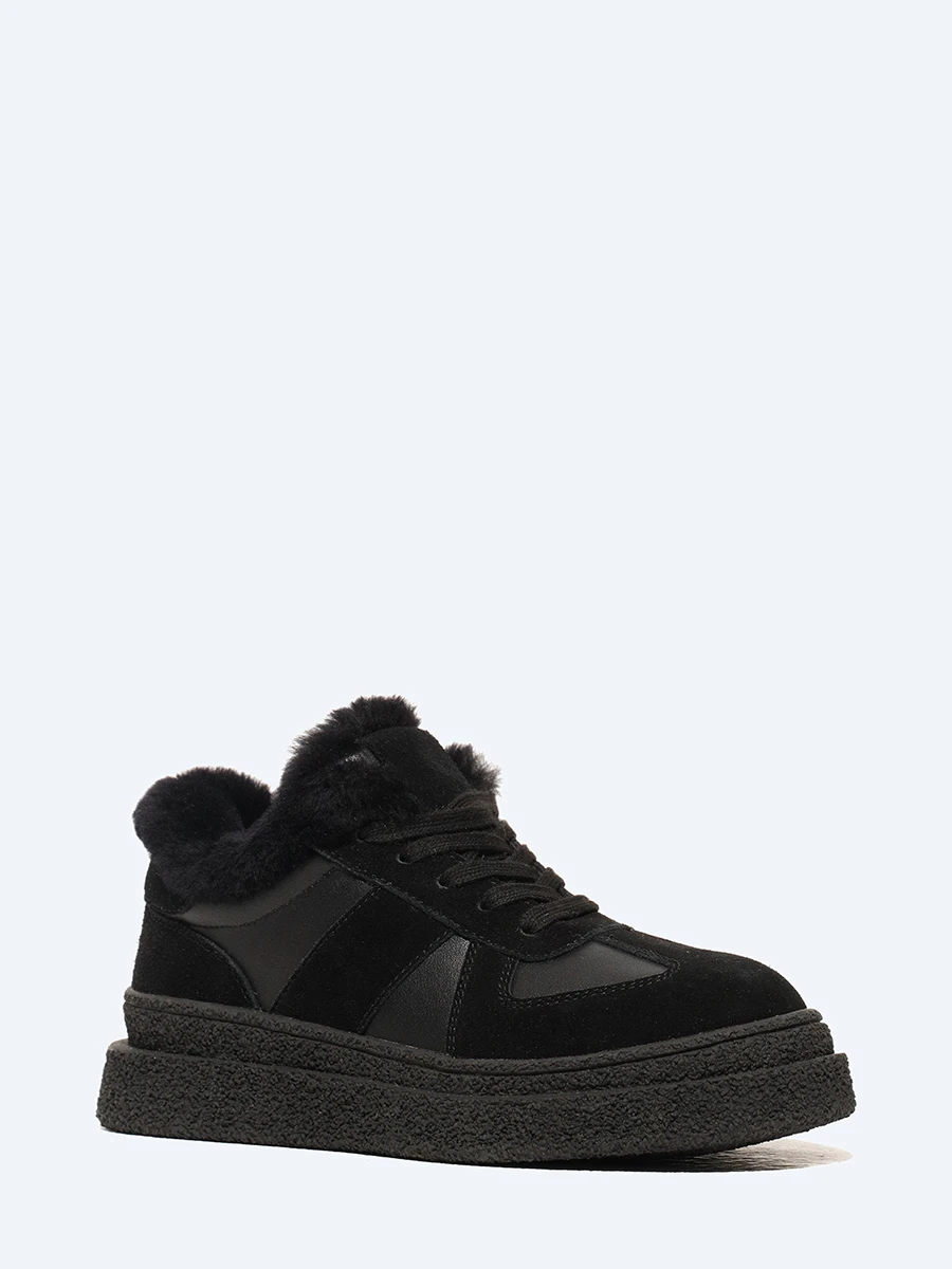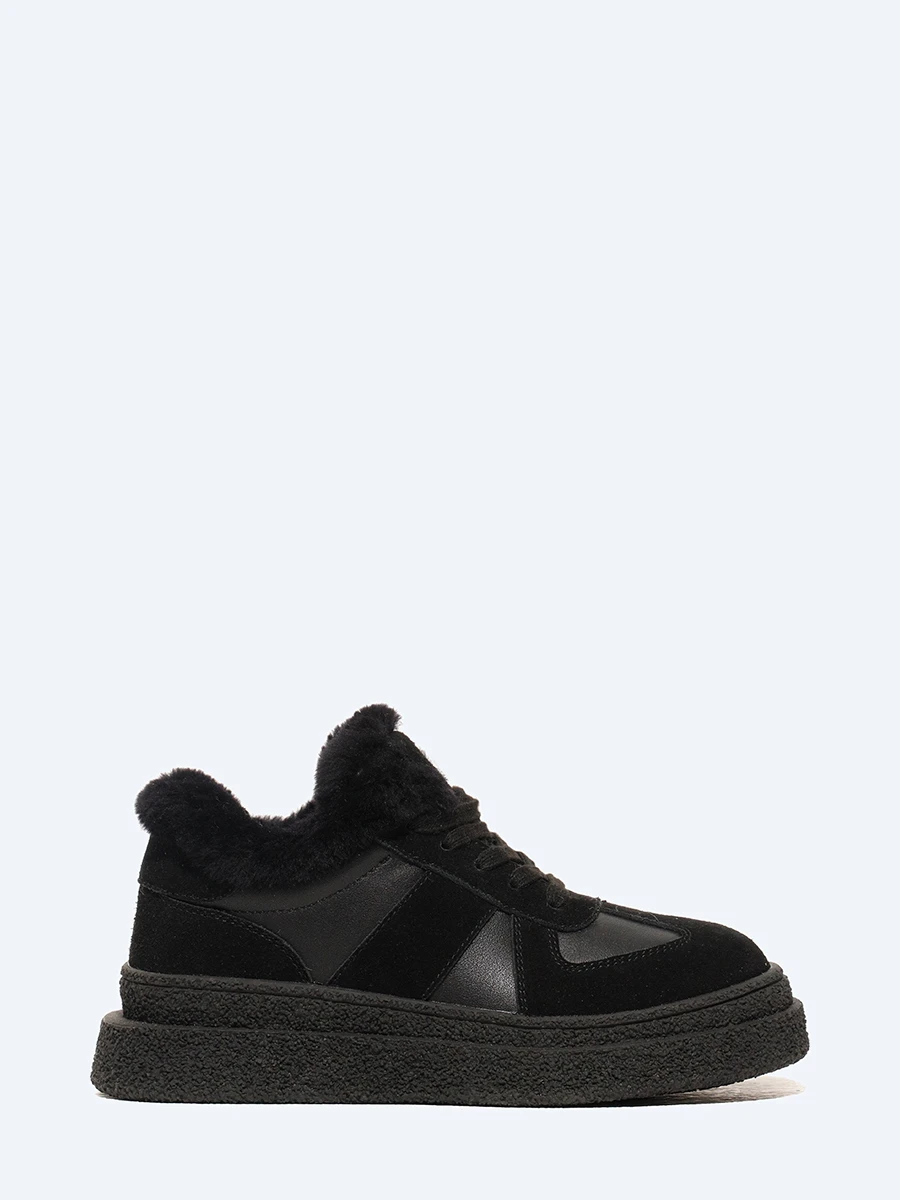Кеды женские зимние, цвет черный, натуральный спилок/искусственная кожа