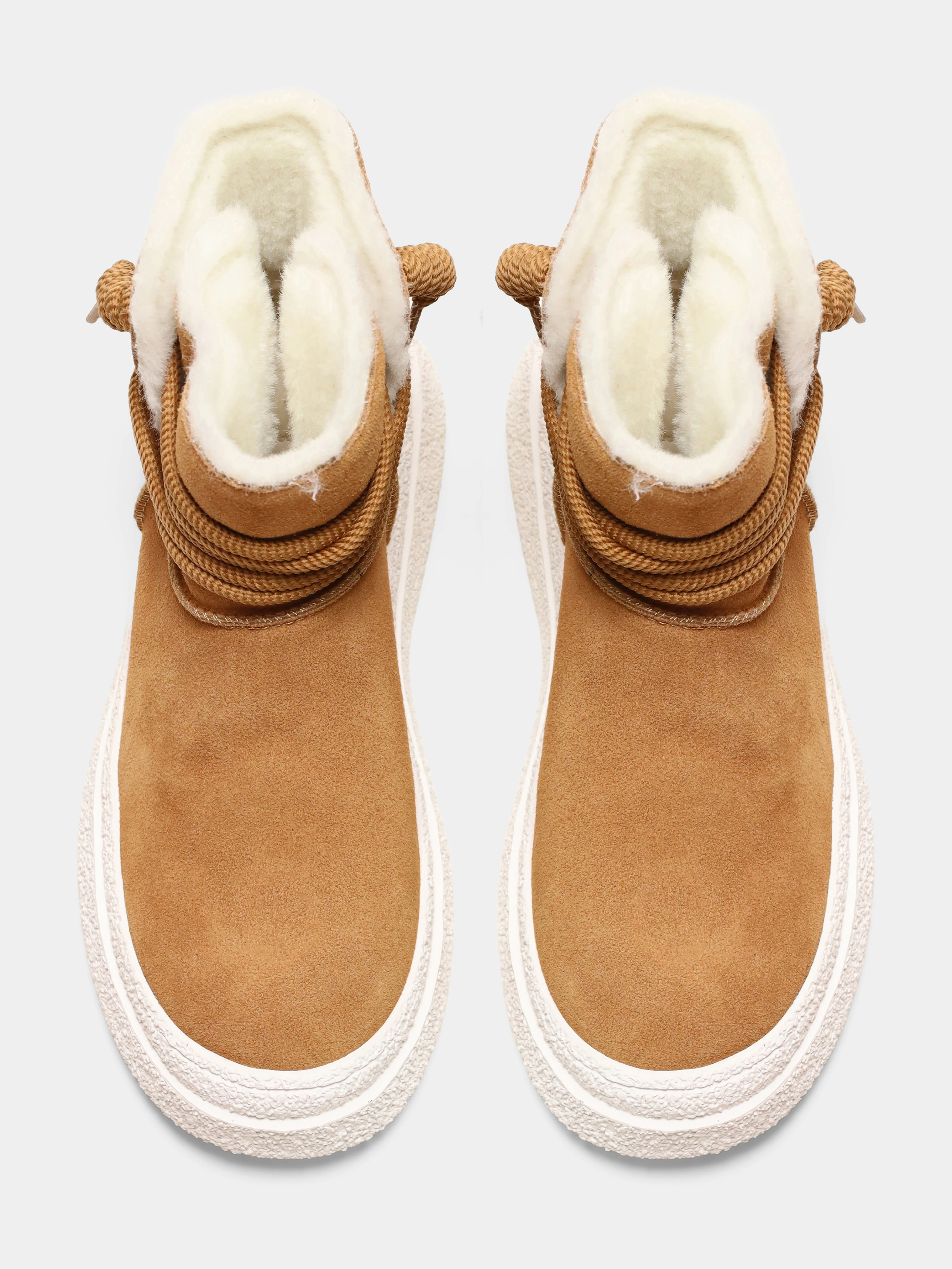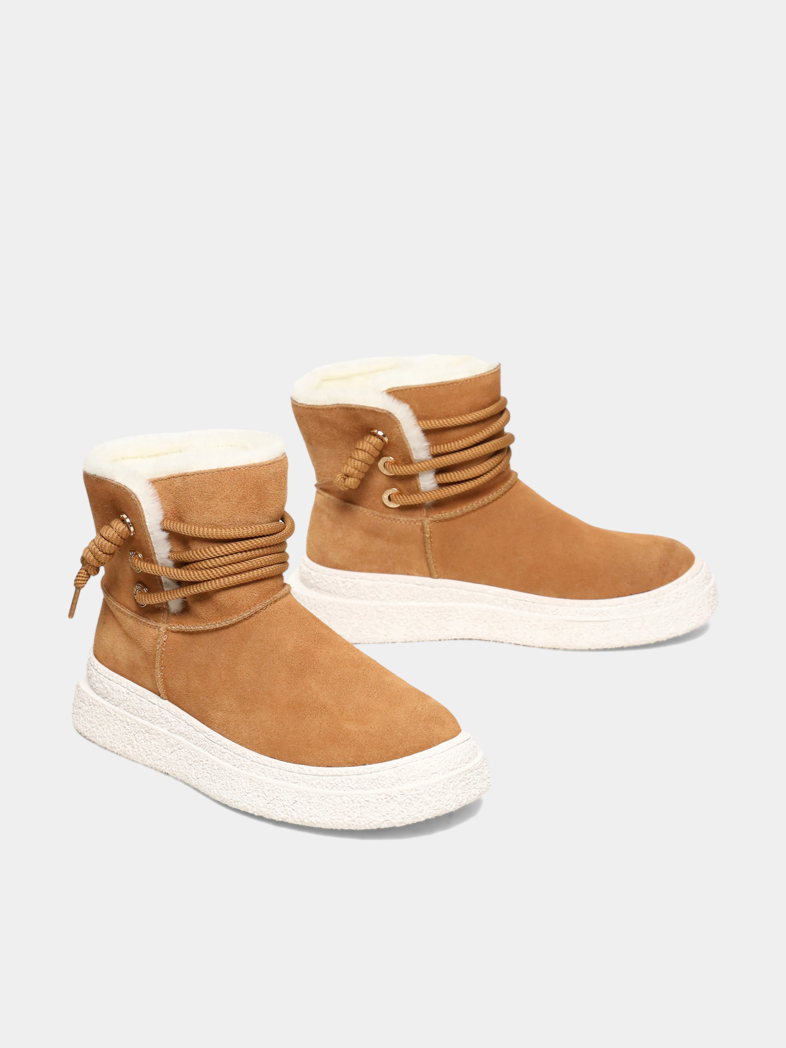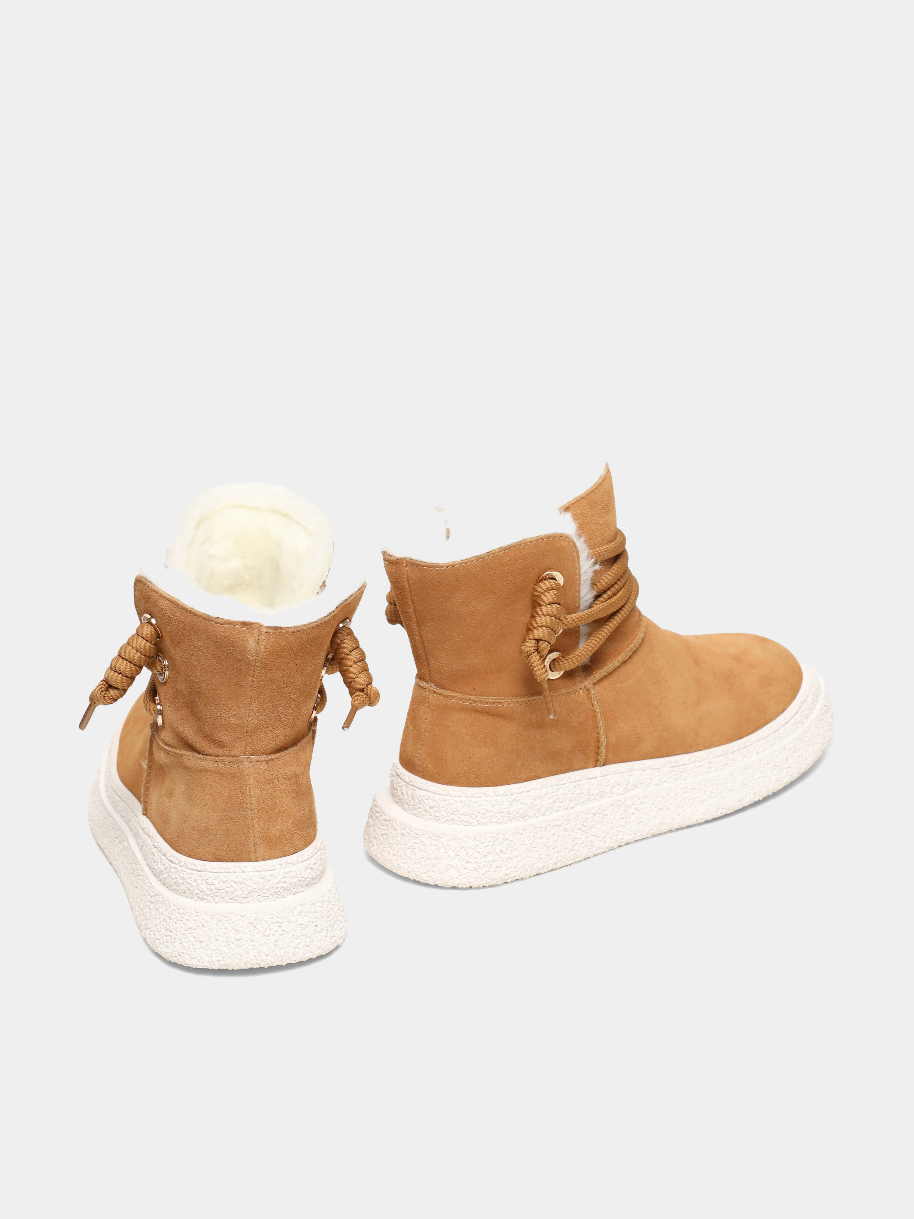 Полусапоги женские зимние, цвет рыжий, натуральный спилок