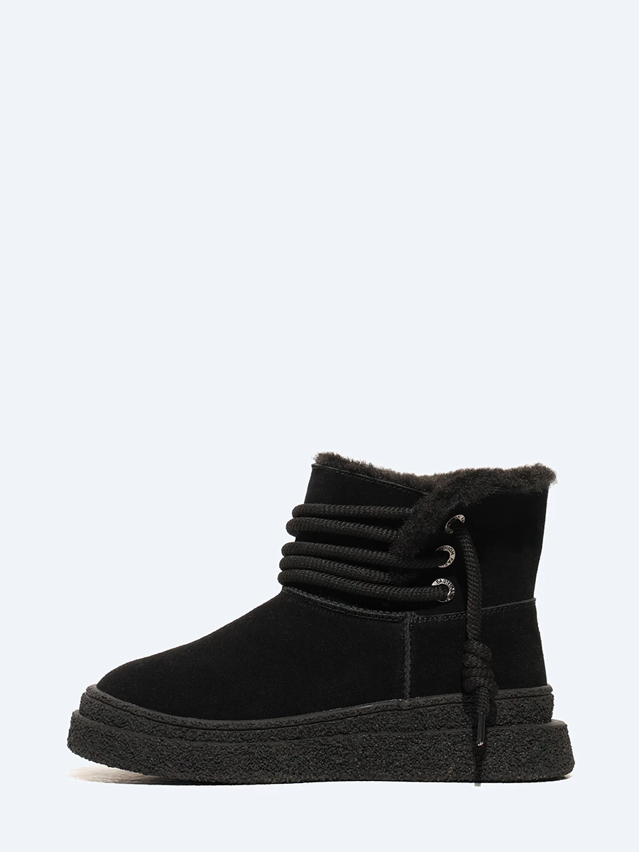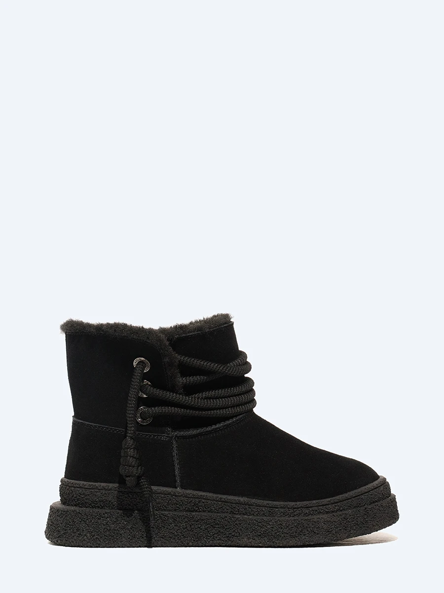 Полусапоги женские зимние, цвет черный, натуральный спилок