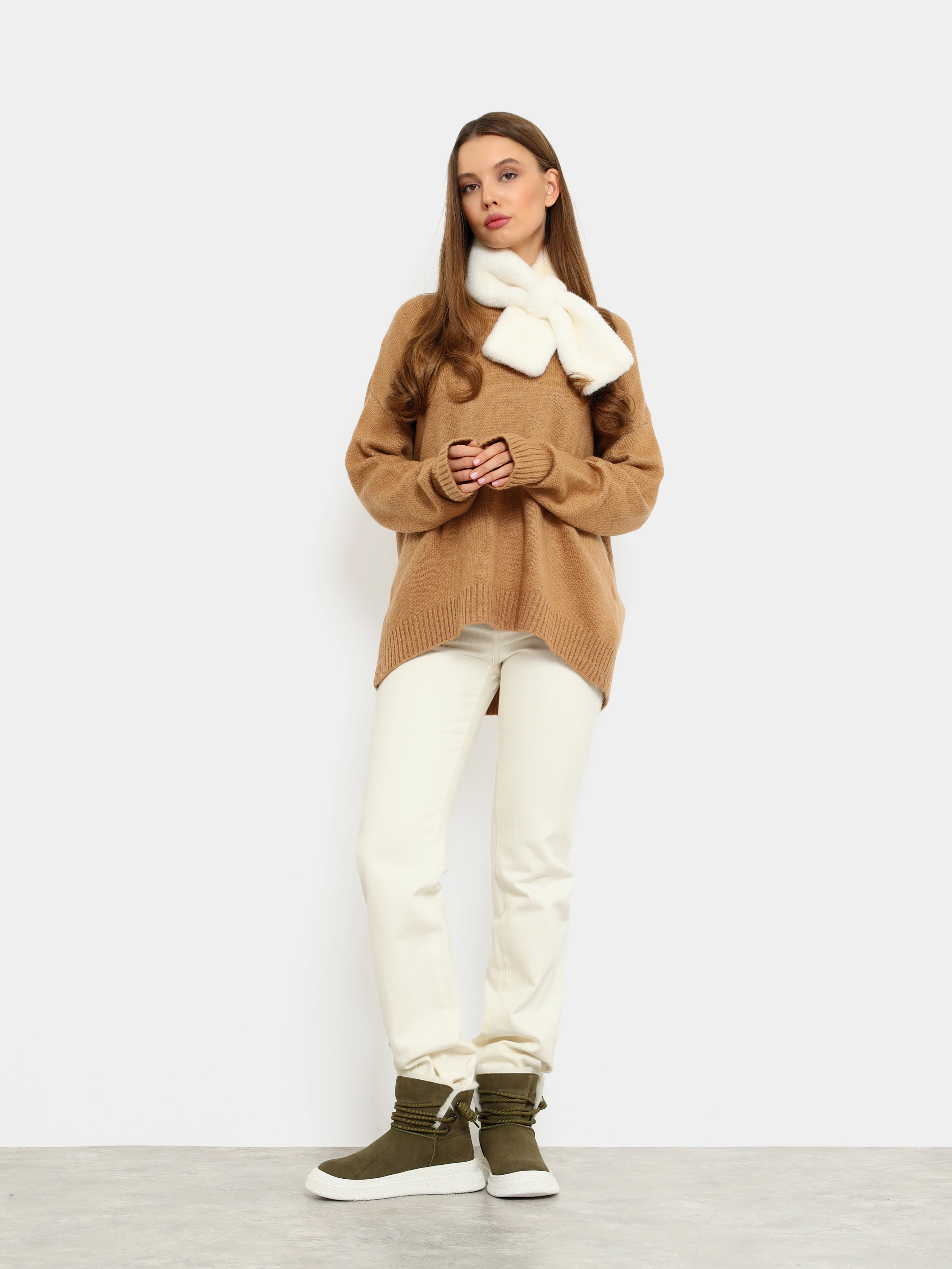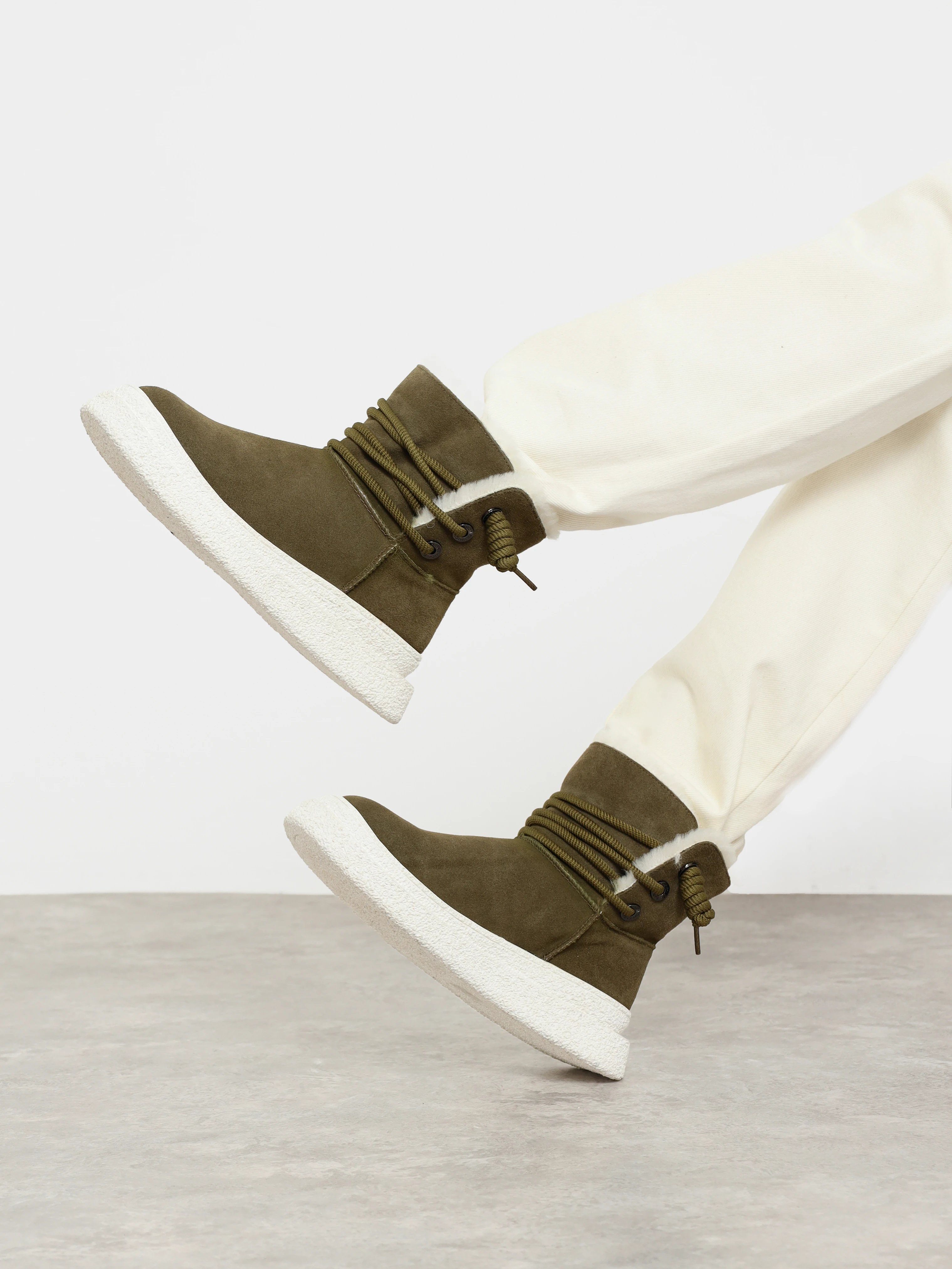 Полусапоги женские зимние, цвет хаки, натуральный спилок