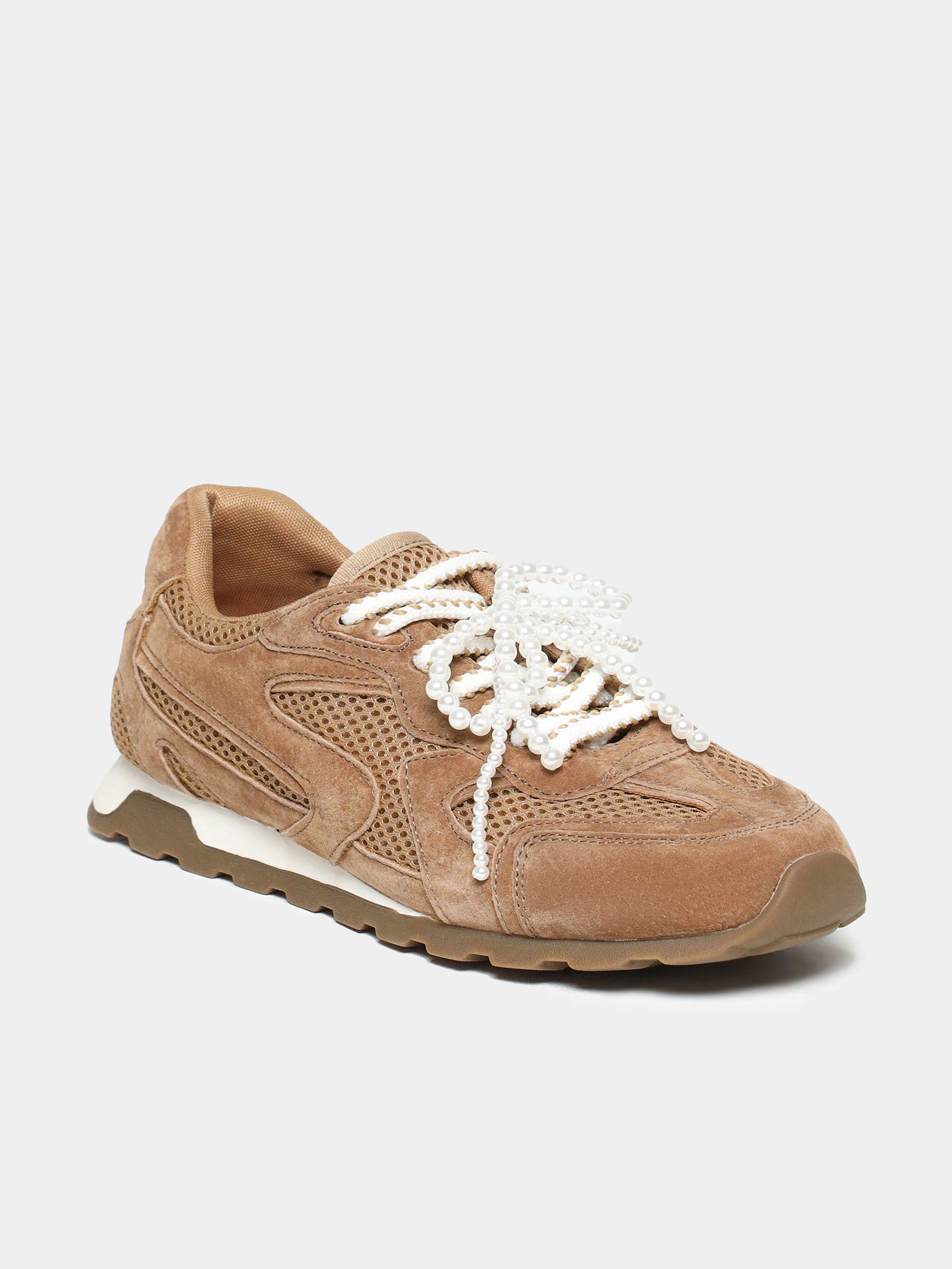 Кроссовки женские летние, цвет коричневый, натуральный нубук/текстиль
