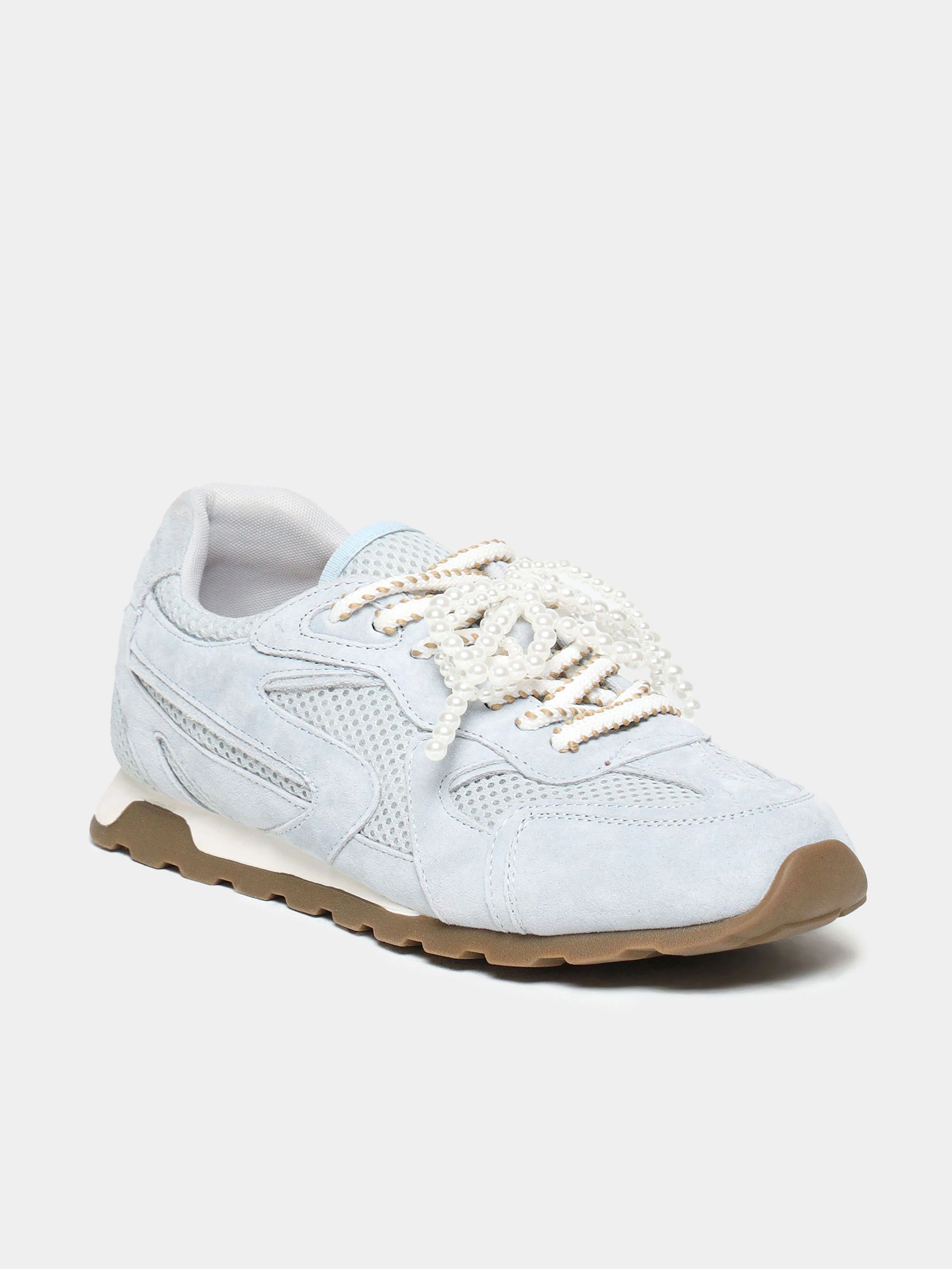 Кроссовки женские летние, цвет голубой, натуральный нубук/текстиль